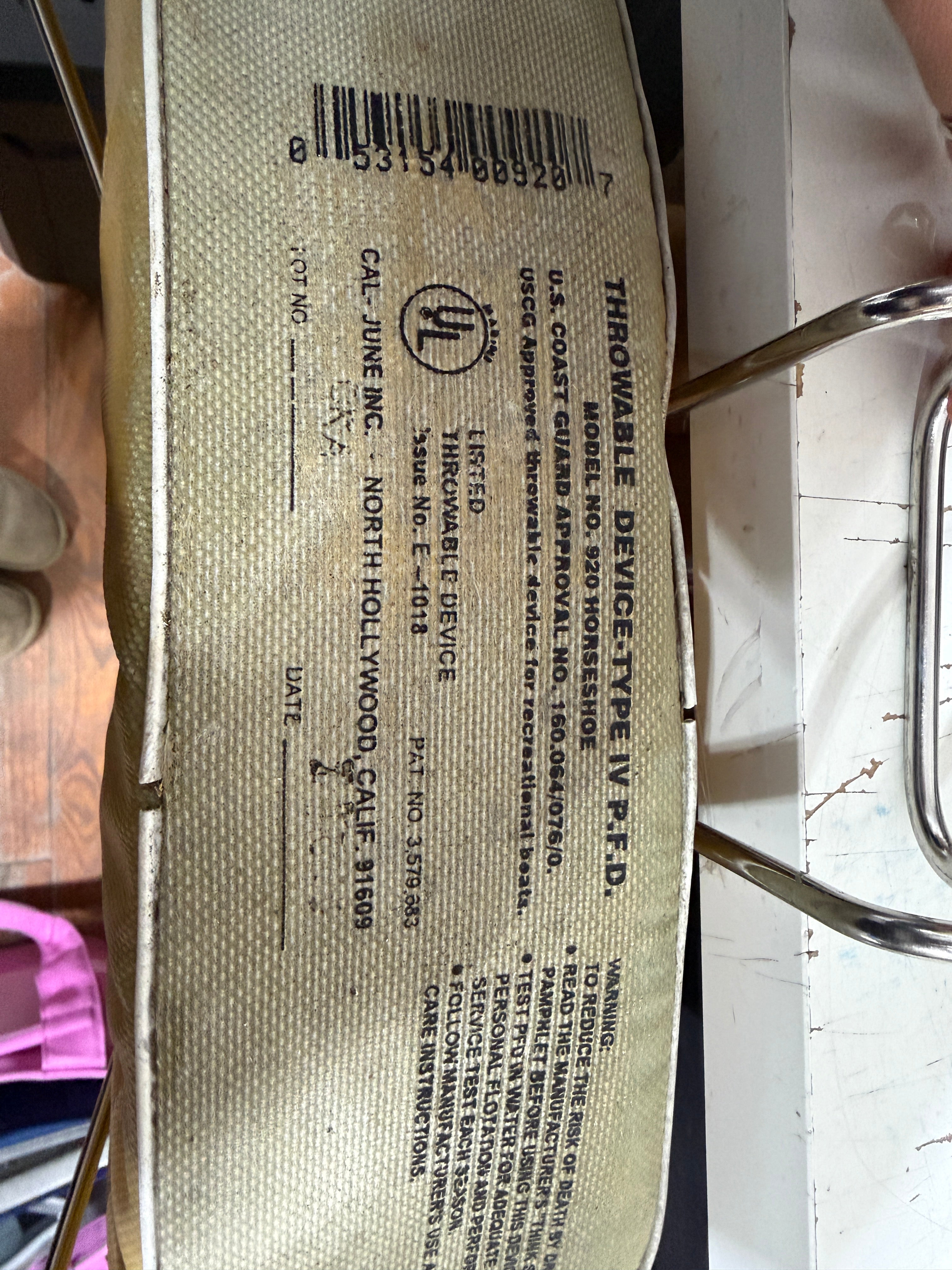 Jim Buoy Horseshoe Ring With Holder - Pearson 27. Jim buoy model 920. No rips or tears but does have some sunfading. to the top. Very nice stainless steel holder.