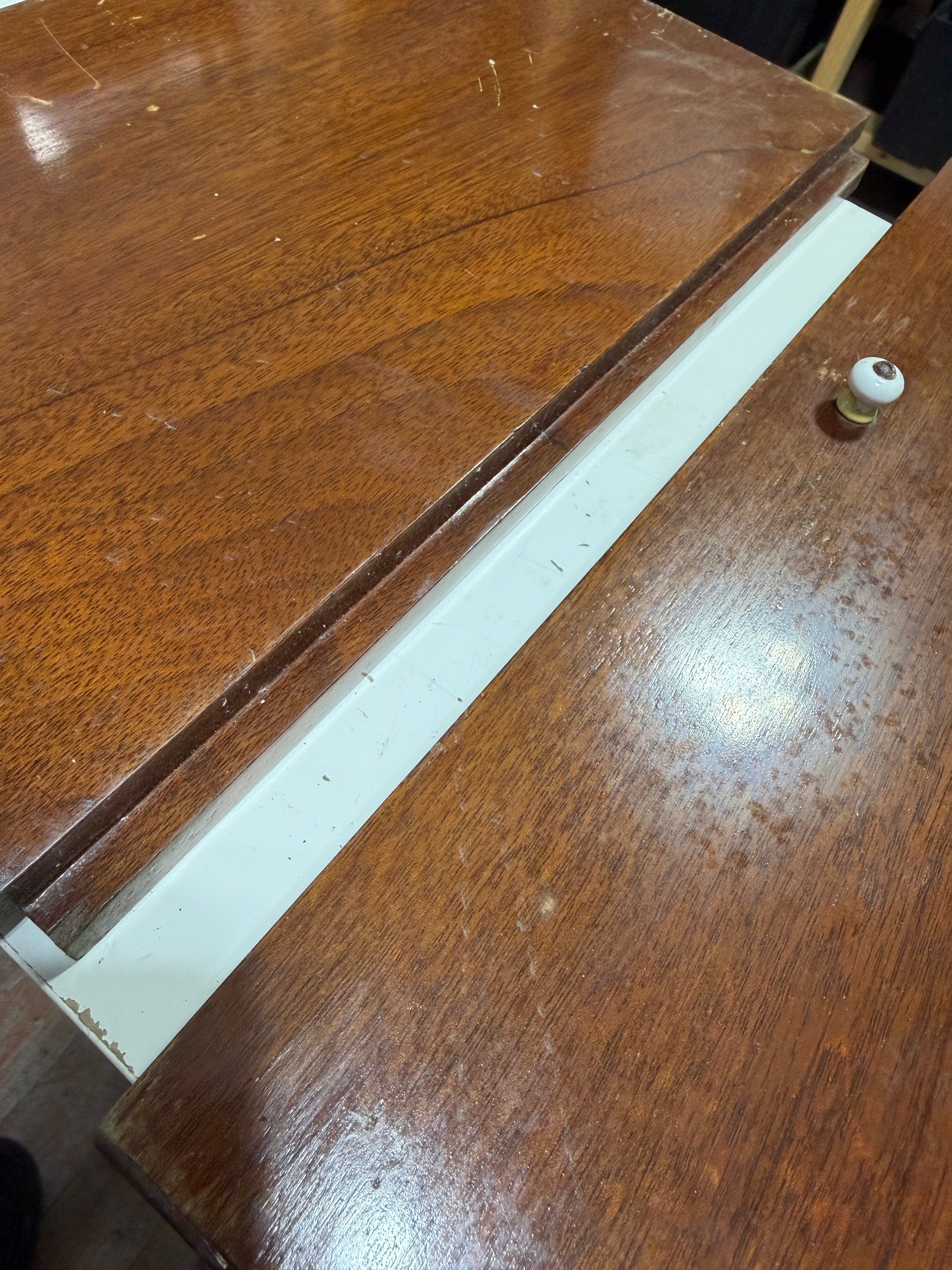 PAIR Interior Cabinet Doors. These doors are a set. When installed the left door sits underside the right door so will only open if they right door is opened first. Inside diameter is 15 5/8" tall x 9 5/8" wide. Outside diameter is 16 1/4" tall x 10" wide each. Usual surface scratches but otherwise good condition. - Alden Priscilla 1971