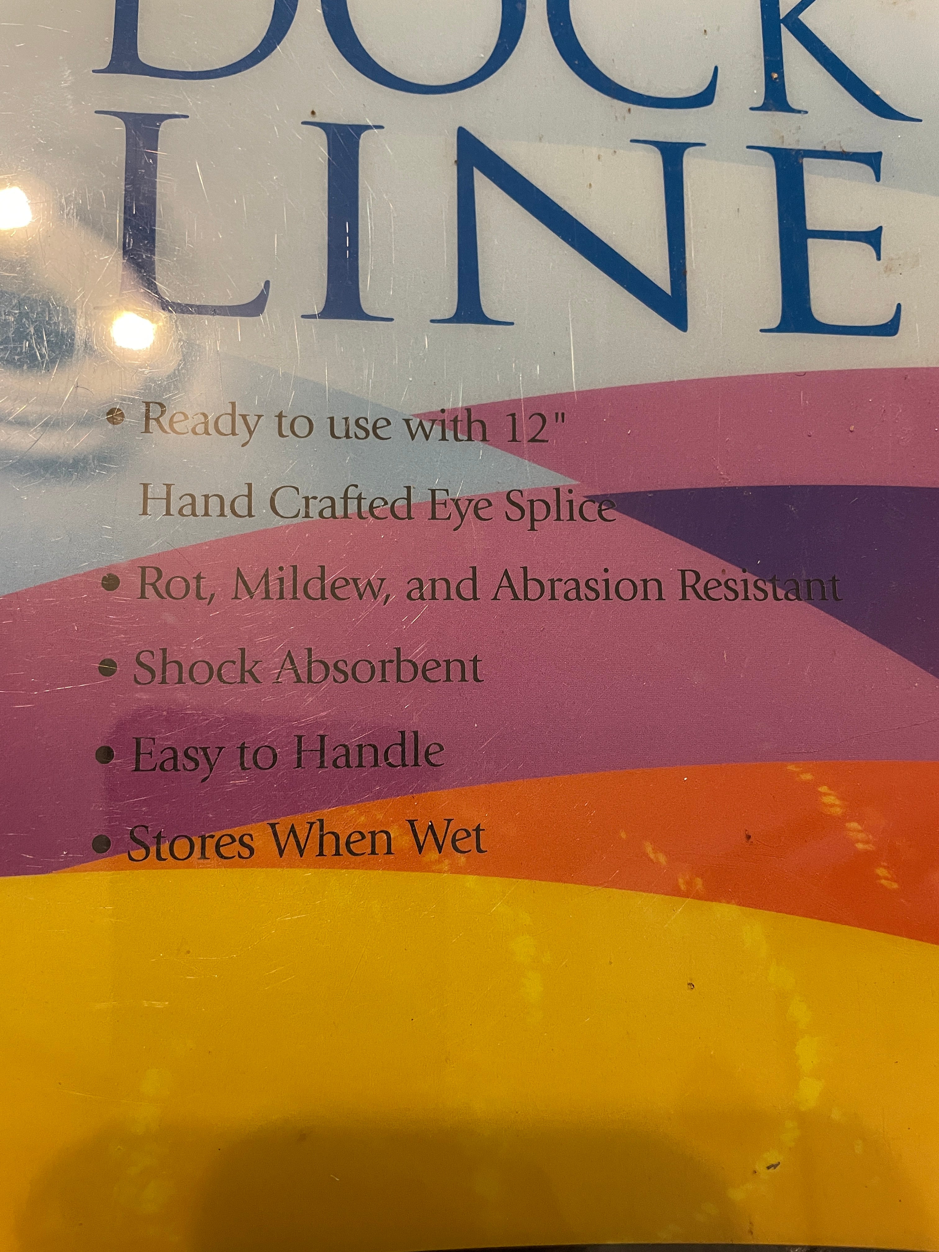 Brand new in packaging, this double braided dock line is 1/2” diameter and is 30’ long. Has a 12” eye splice.