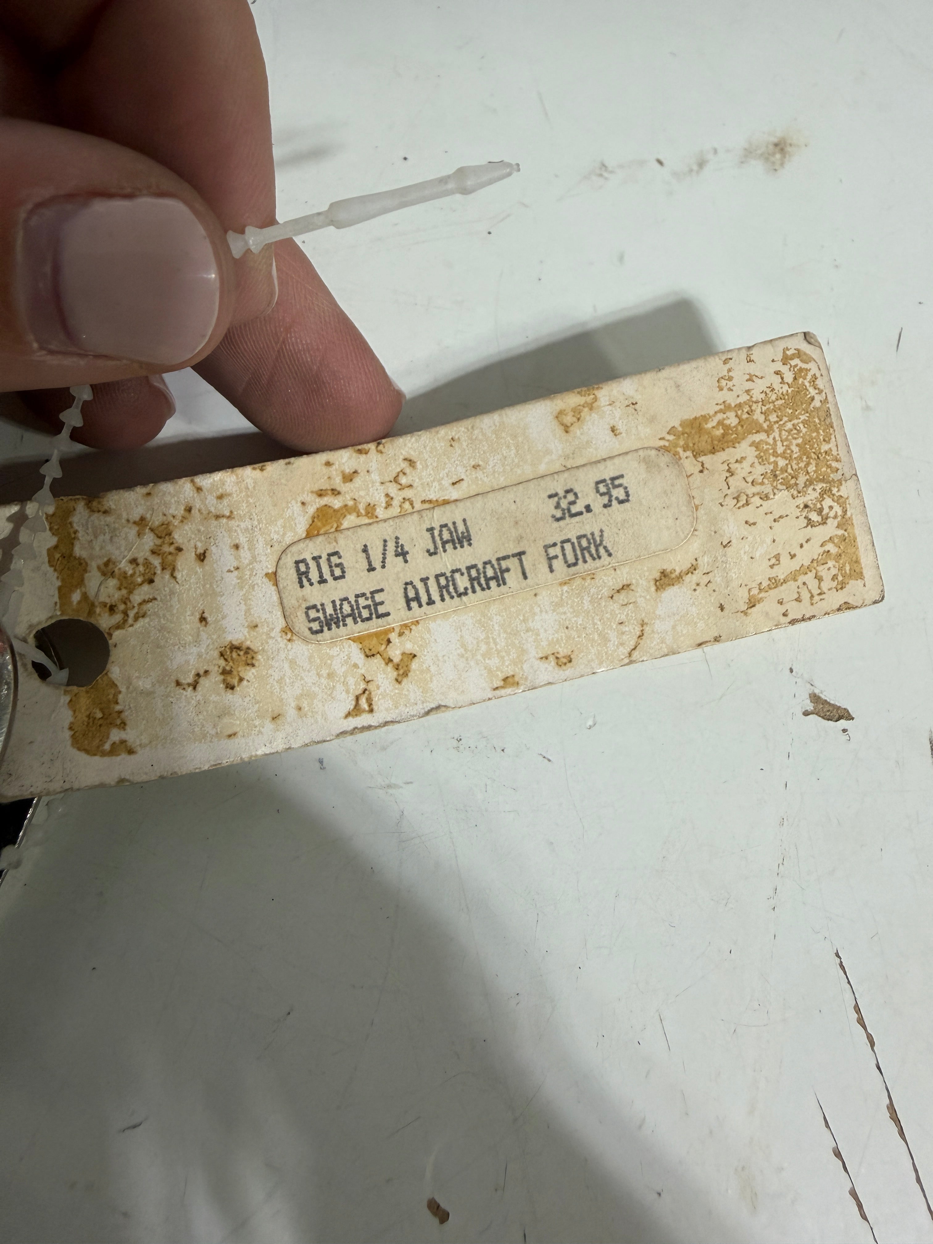New, stainless steel swage aircraft fork. Rigged for 1/4" jaw. 4 1/2" total length.
