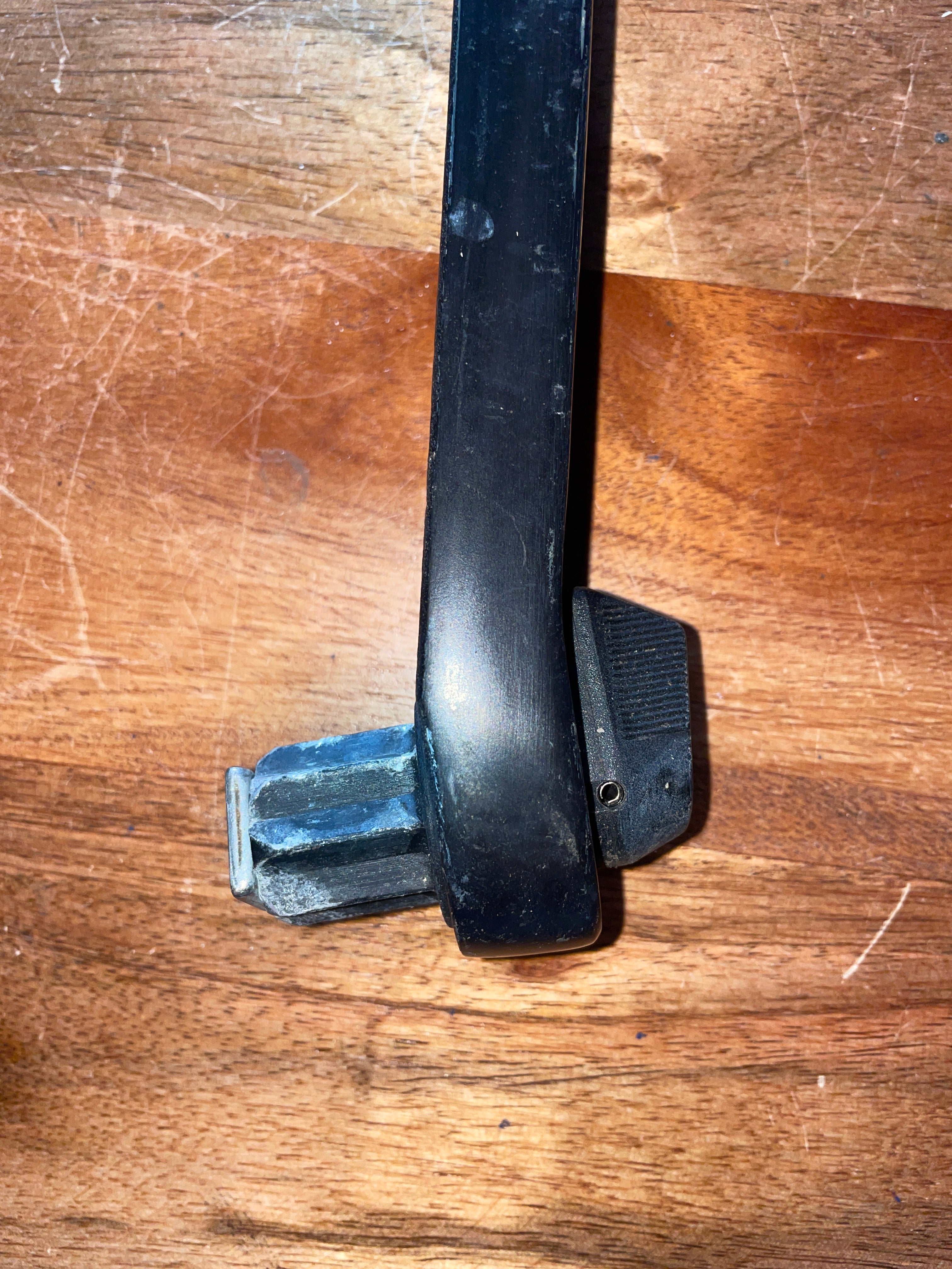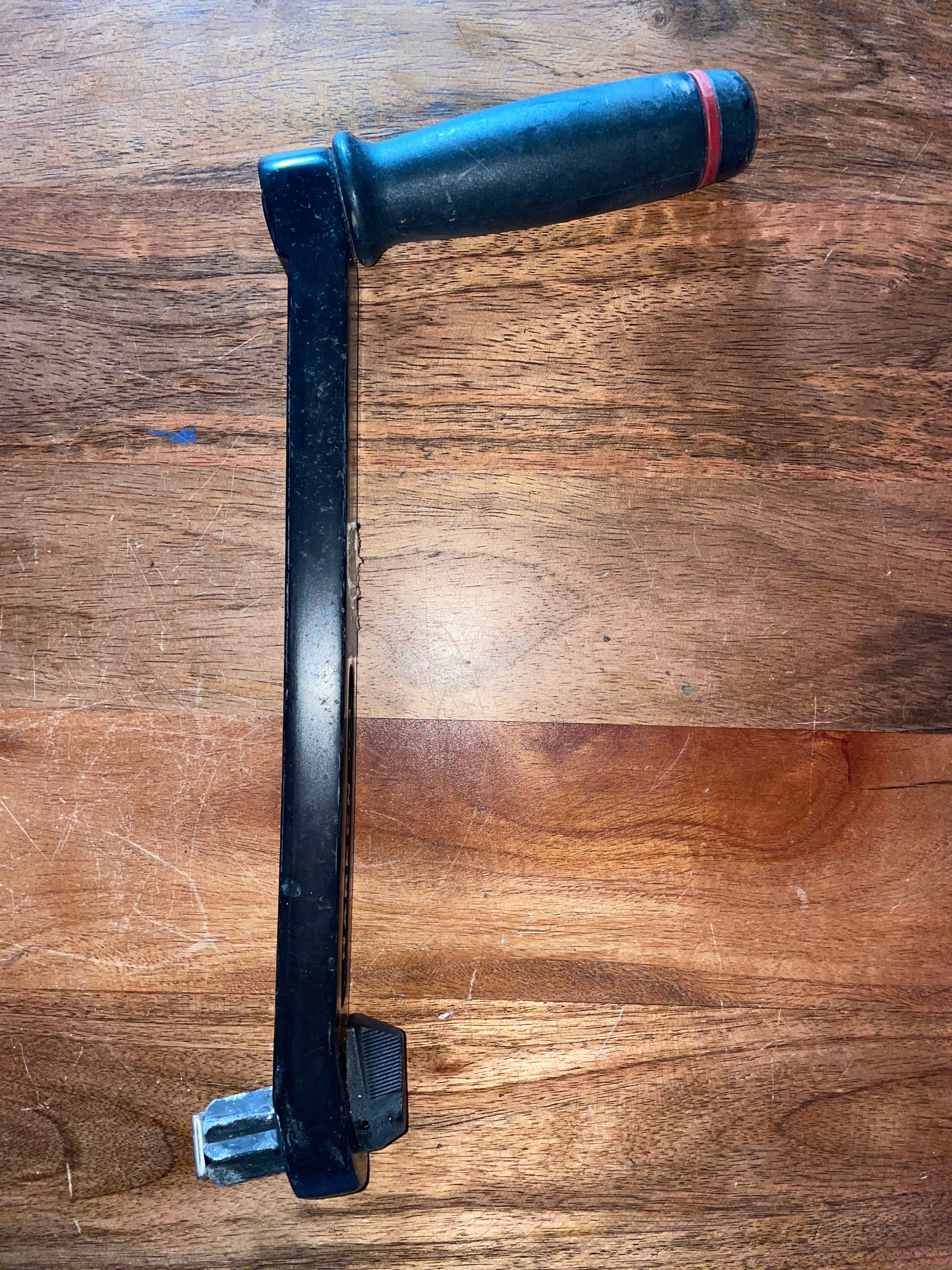 This locking harken winch handle is in great condition. It is a heavy metal body with plastic handle. It is 10” total length. Locking works as it should. 1” insert. Does have some scratching.