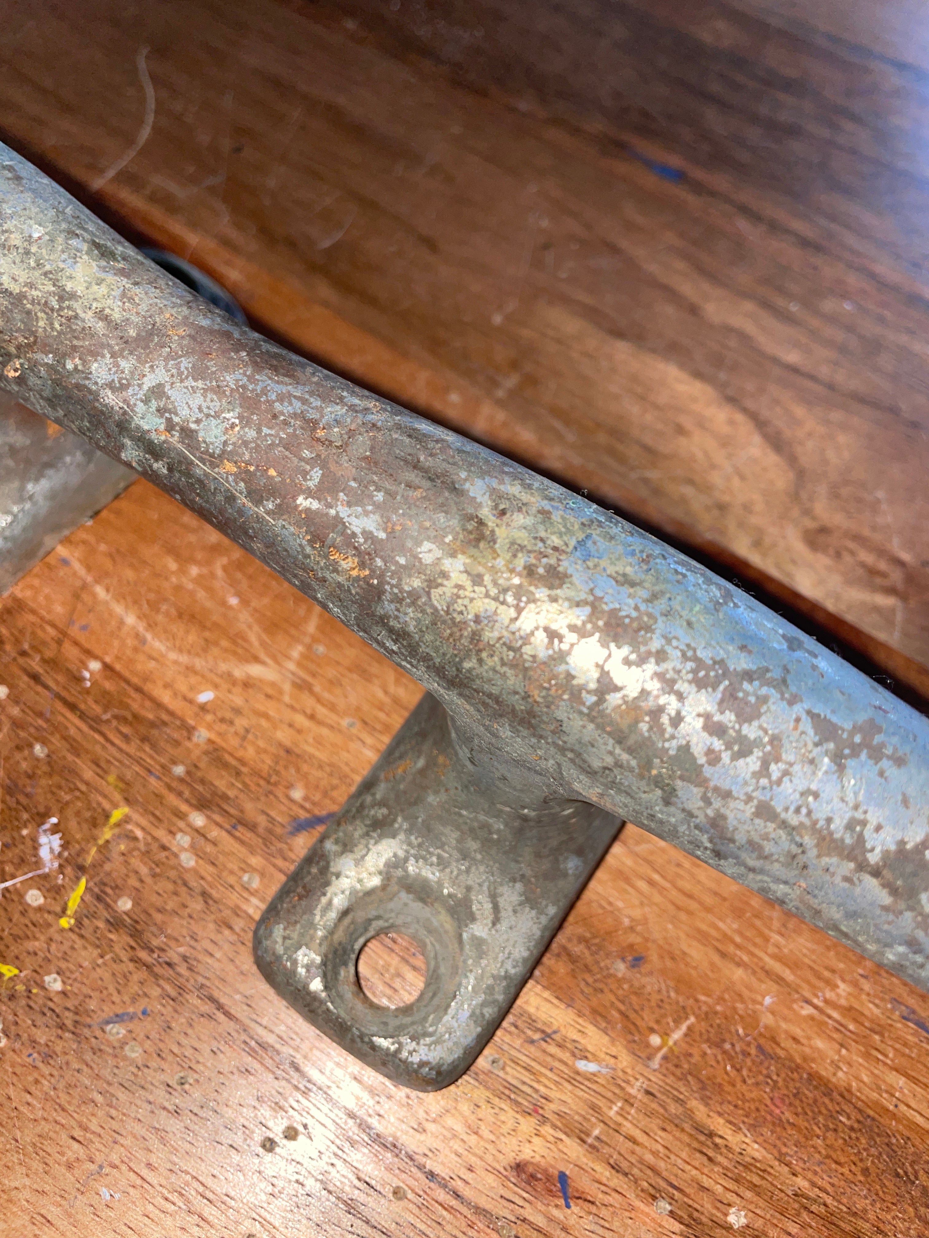 OPTION A CLEAT: This cleat is more chromed. It is hollow but it is more hefty than the other. You can see on each open end that the walls of the cleat are thicker making it heavier. The base is 4 bolt install. 2 on each foot. The foot measurements are 3 5/8” long x 1 1/2” wide. 2 bolt install is 1 5/8” apart. Stands 2 3/4” tall.