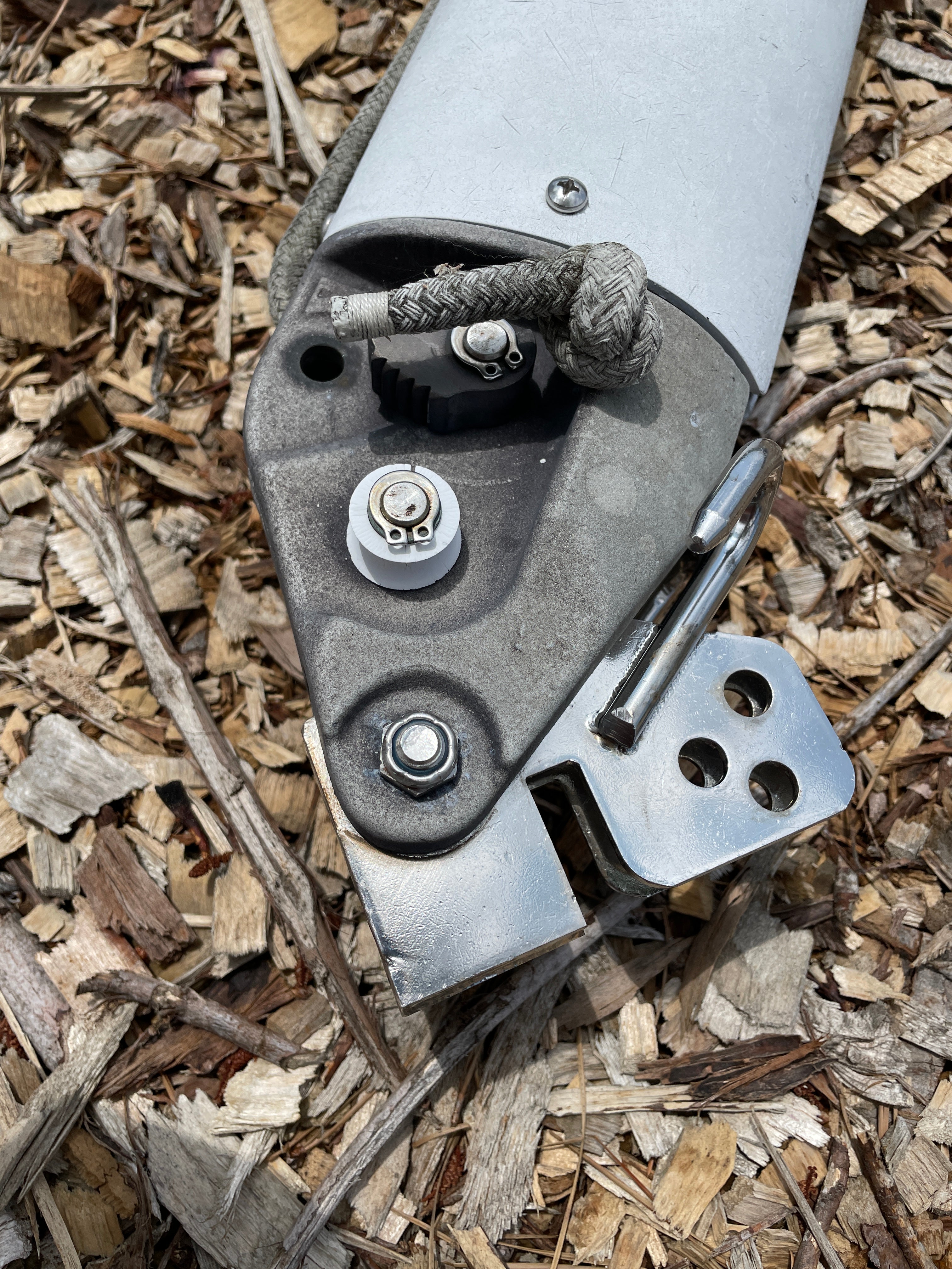 This boom is in good condition. It measures 11’1” long without the gooseneck. The cross section of the boom is 4 1/2” x 2 3/4”. The gooseneck is 4” long x 1” wide. Sail slides are 7/8” diameter. Single boom bail attached to one end. Rollers at the top where cam cleats are starting to crack so will be best if replaced.