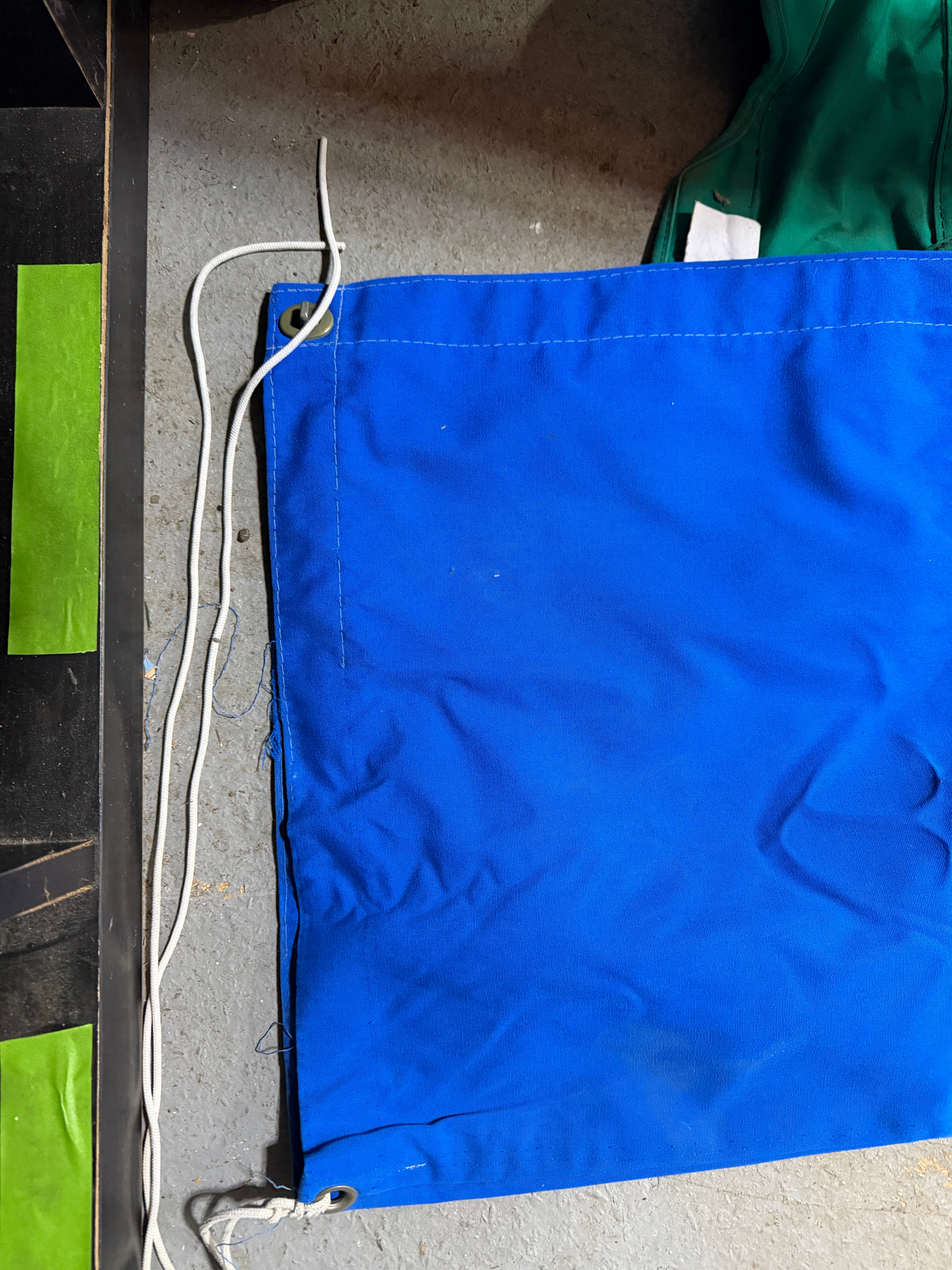 This main sail is in like new condition. It was labeled from being removed from a hunter 30 but it is huge! There are no imperfections. It is 13'3" in length. The area for around the boom is 10" diameter. The very top width is 53" width. The middle with where the first clasp is and where it starts to curve is 30" width. The very bottom is 128" width. It is dirty from being on the floor - easily cleanable.