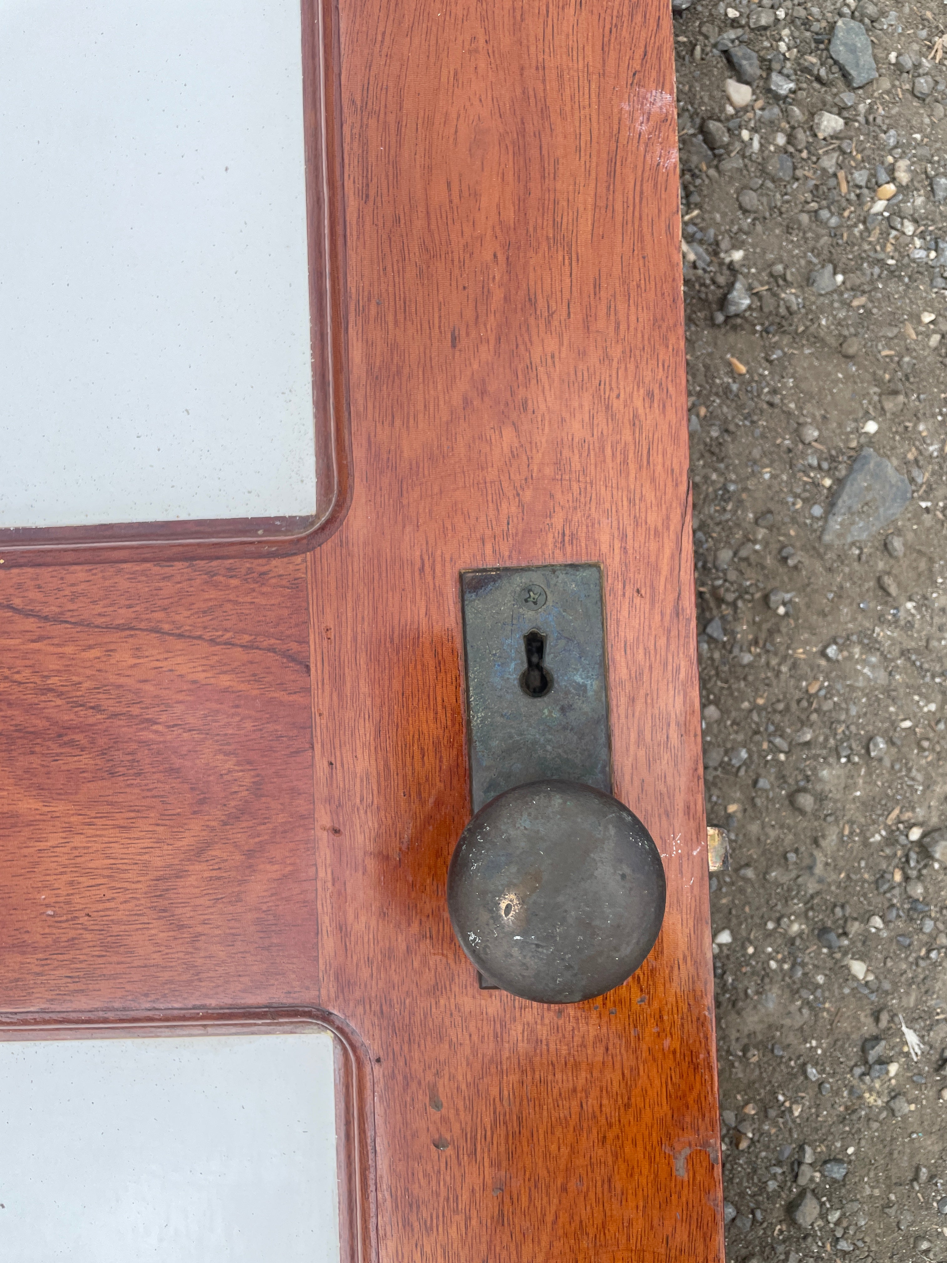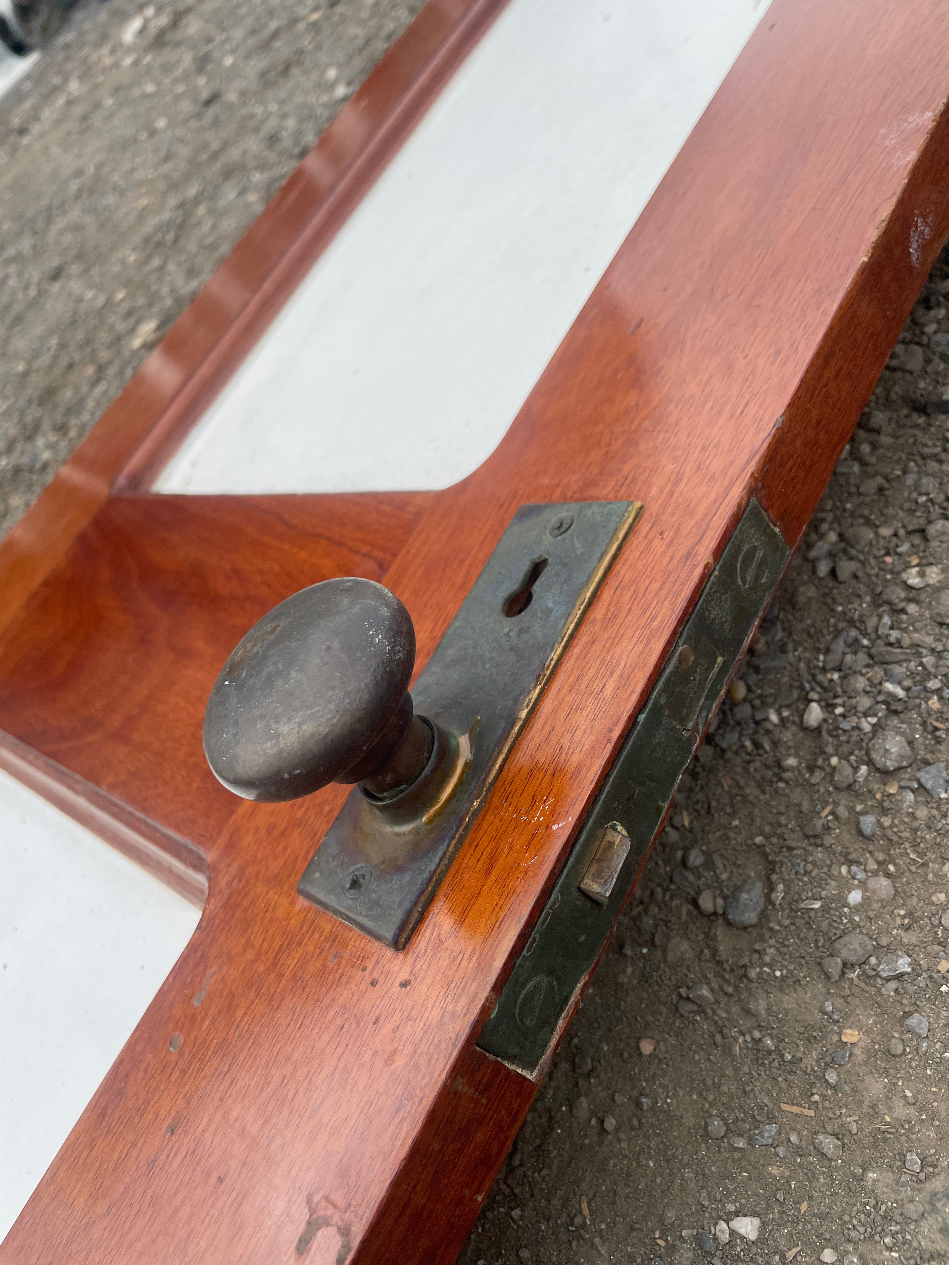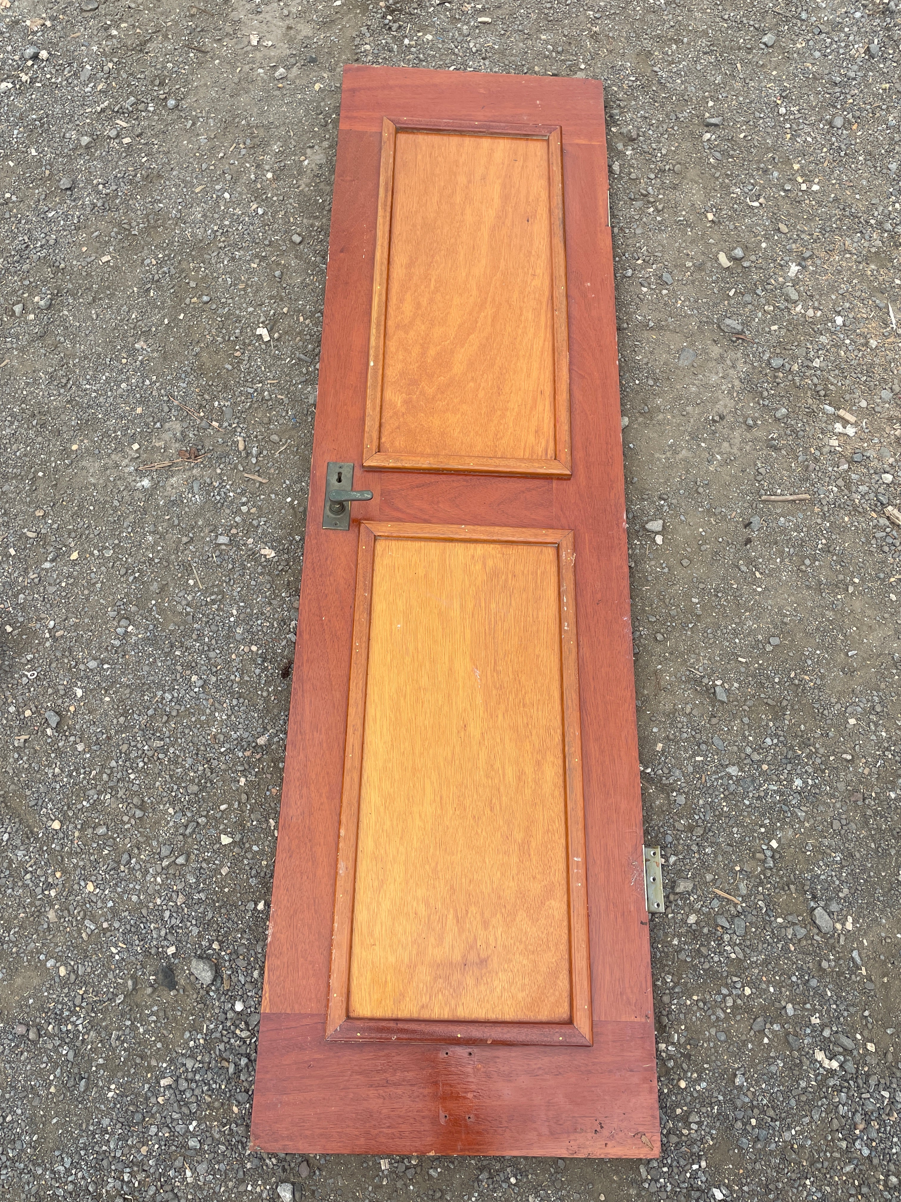 This larger interior door is in great condition. It measures 64" long x 17 1/2" wide and is 1" thickness. It has an incredible solid bronze knob/handle.