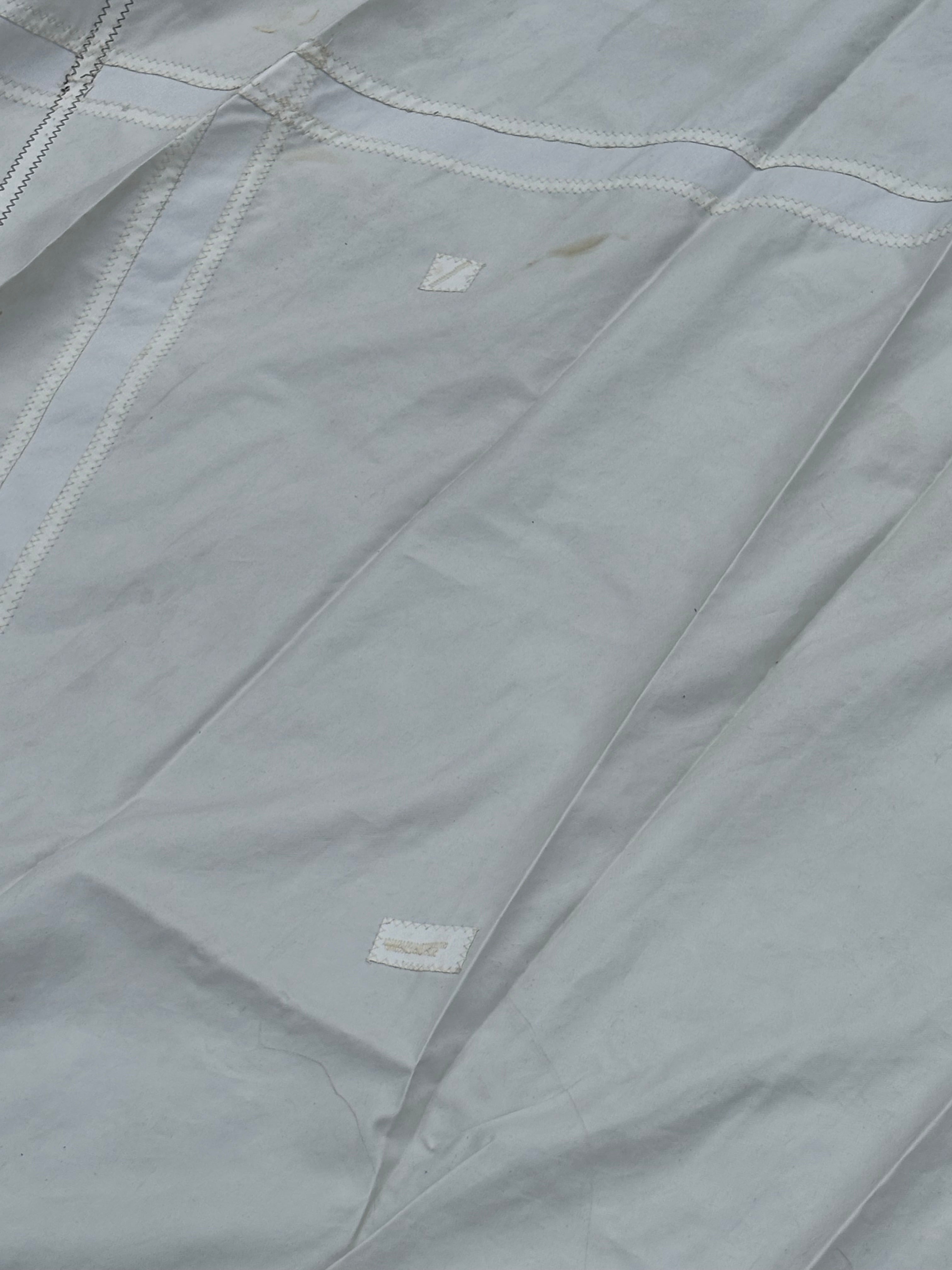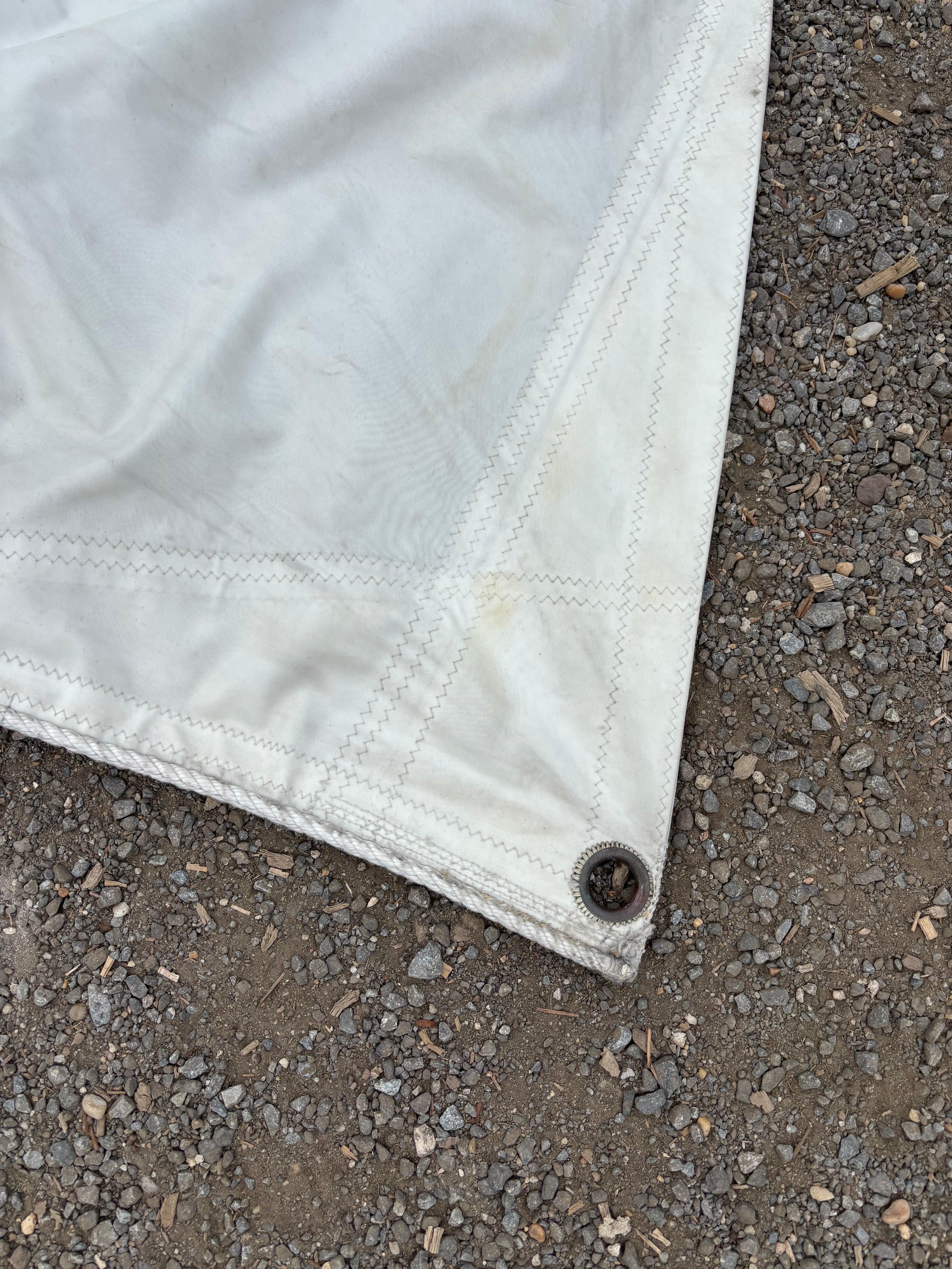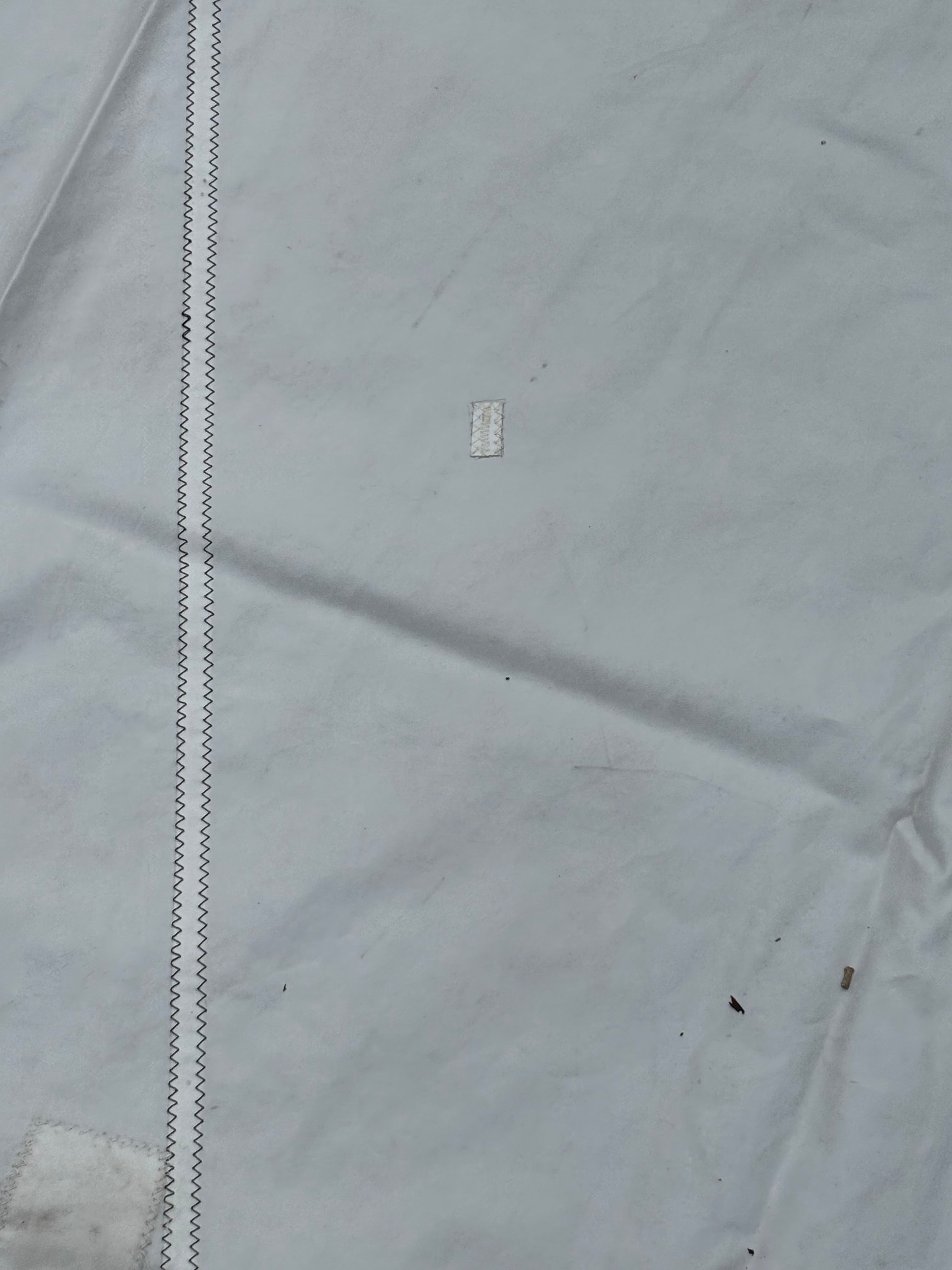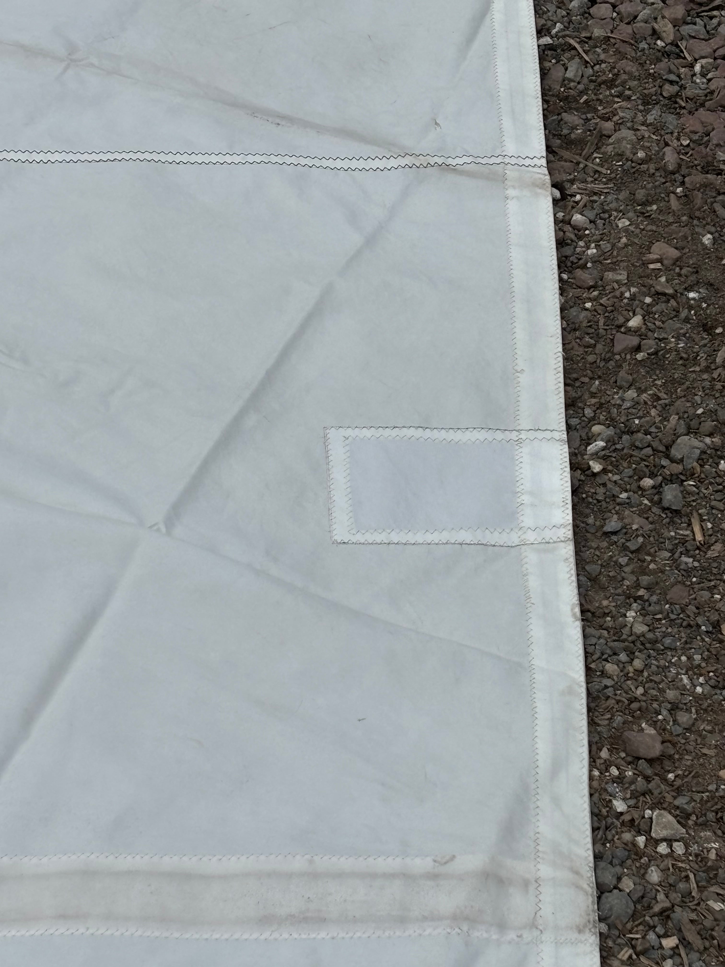 This mainsail (I think) was removed off a 1964 Pearson Triton. The sides measure 31'2" x 34'7" and the foot is 12'3". There are some repair areas. They are all shown, non are large but there are quite a few. No other damage or holes. Comes with bag. Has the logo and is numbered 540.