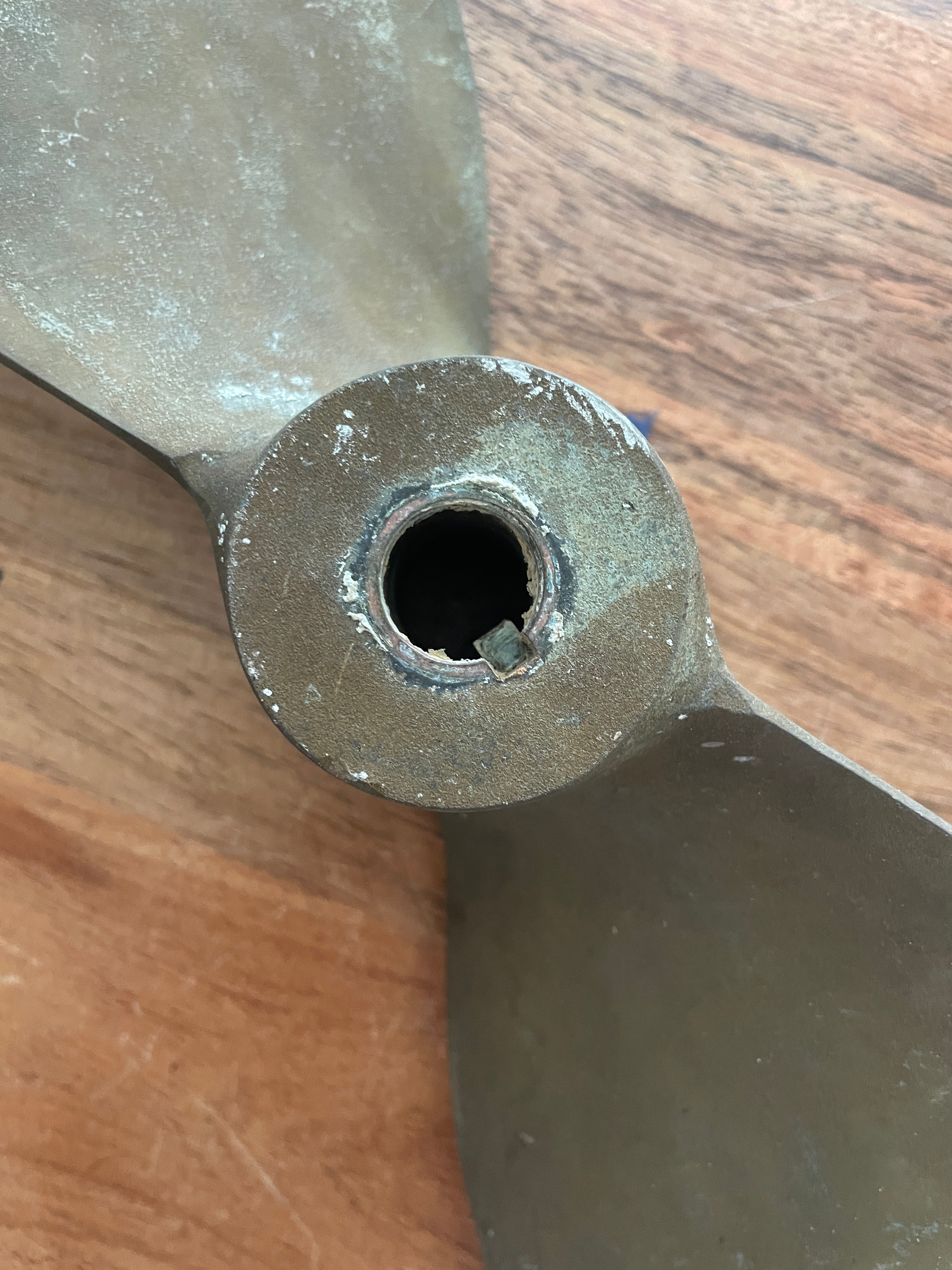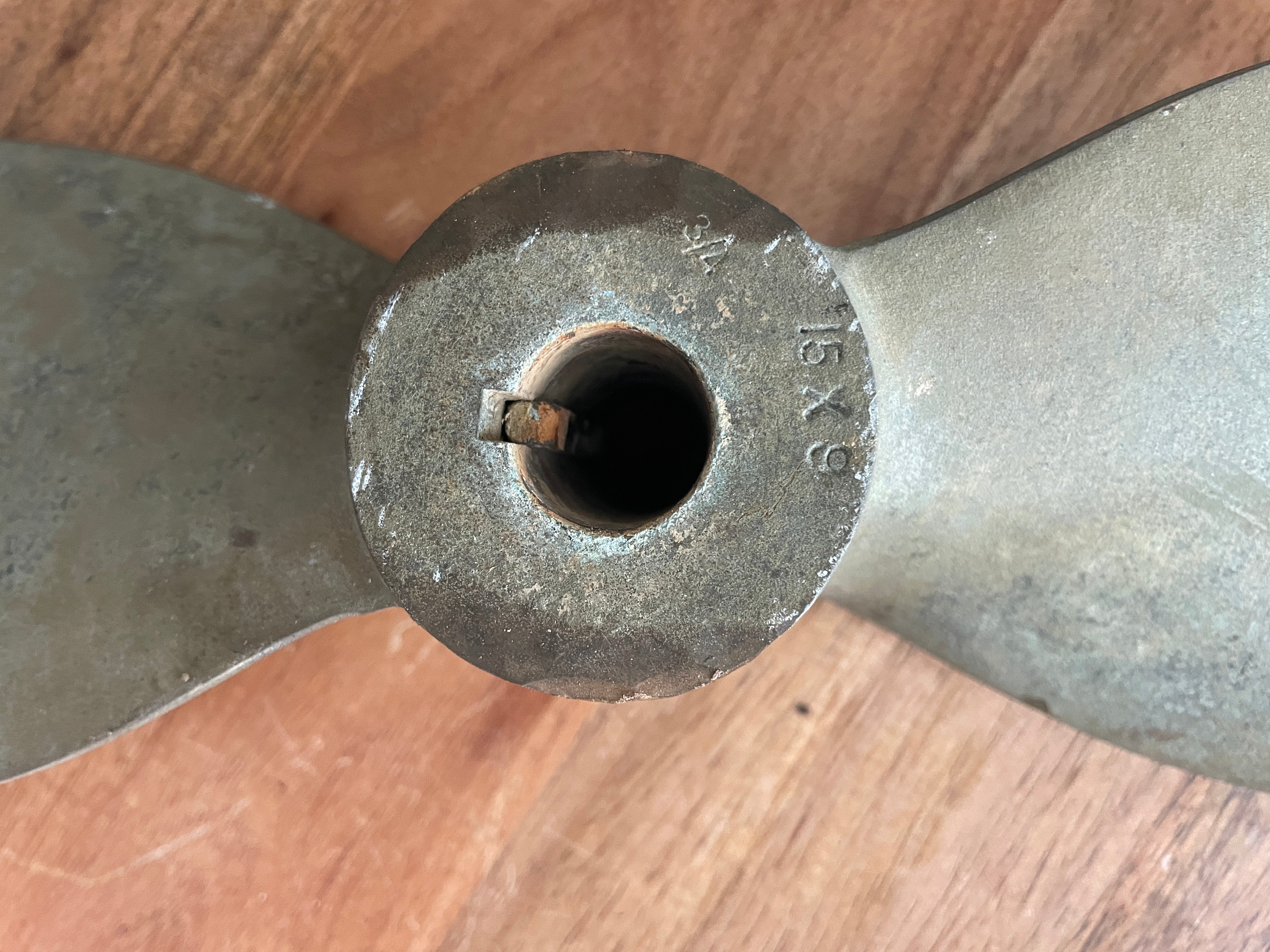 This 2 blade propeller is in great condition. Size 15 RH 9. The shaft is 3/4” to 9/16” tapered and keyed.