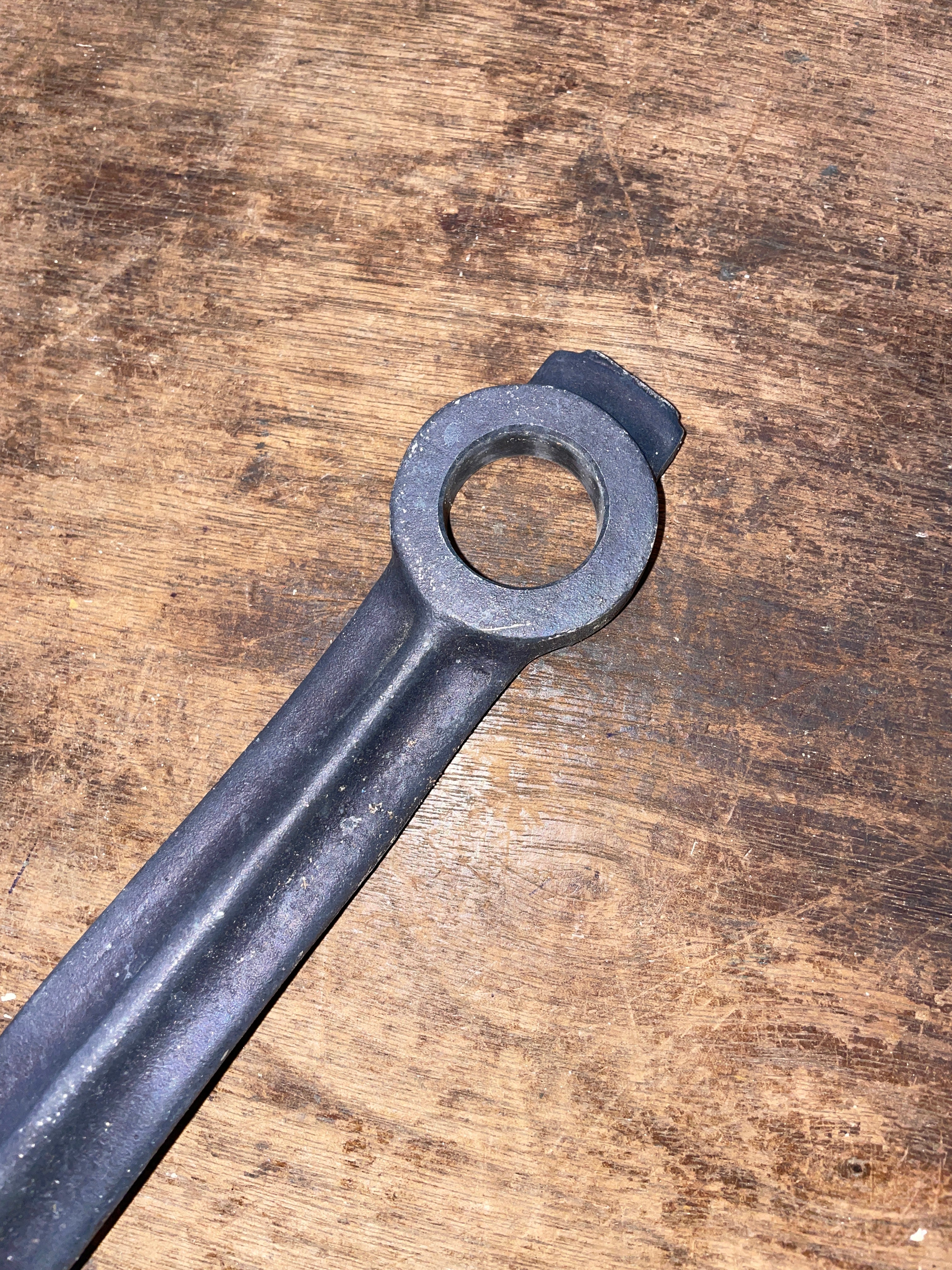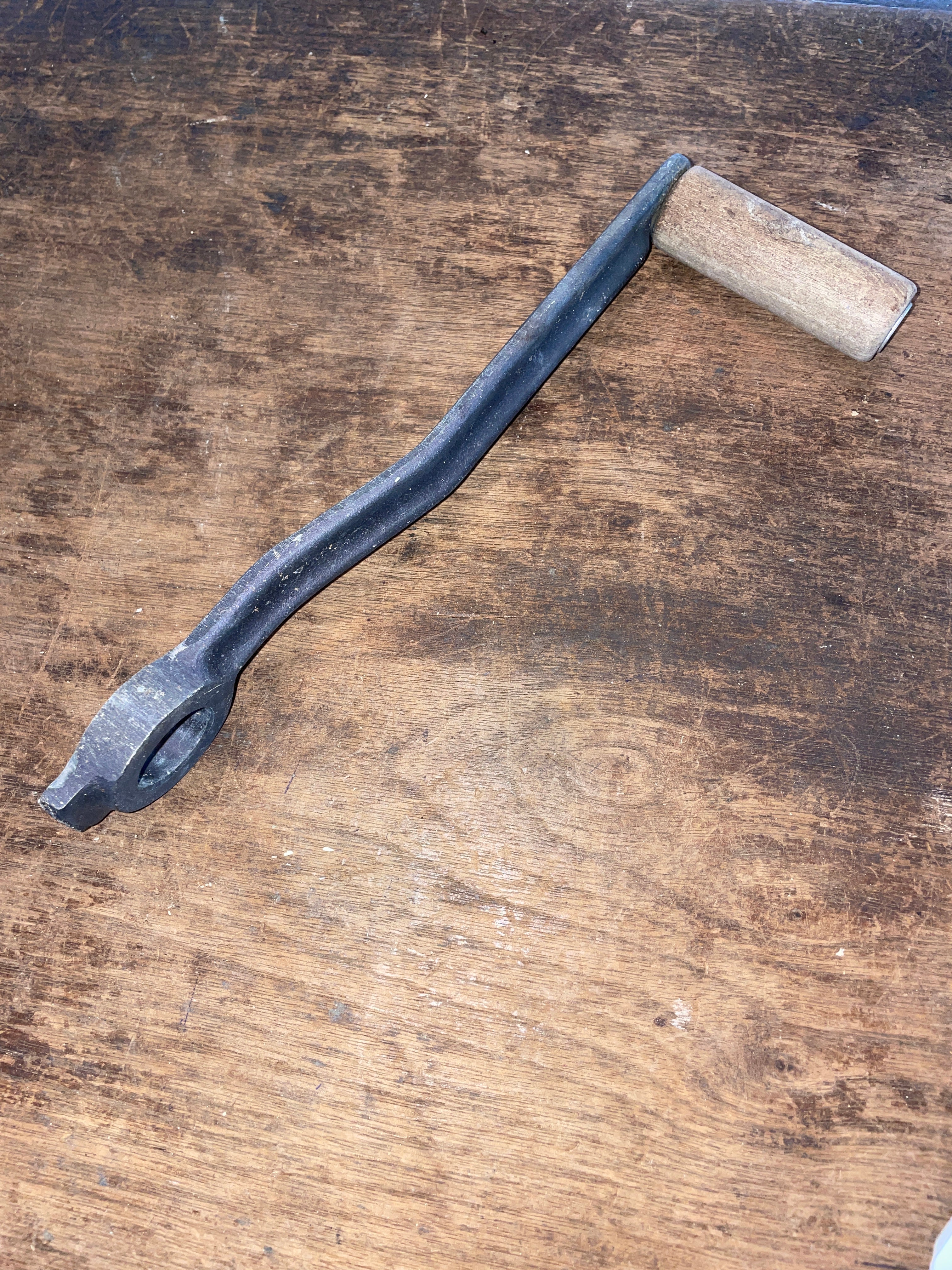 This smaller 2 speed winch is in great working condition. Comes with the handle. The base is 3 5/8” diameter with a 4 bolt pattern (makes a square shape so pattern is 1 3/4” squared). It stands 3 7/8” tall. The handle is 10” aluminum types with wooden handle.