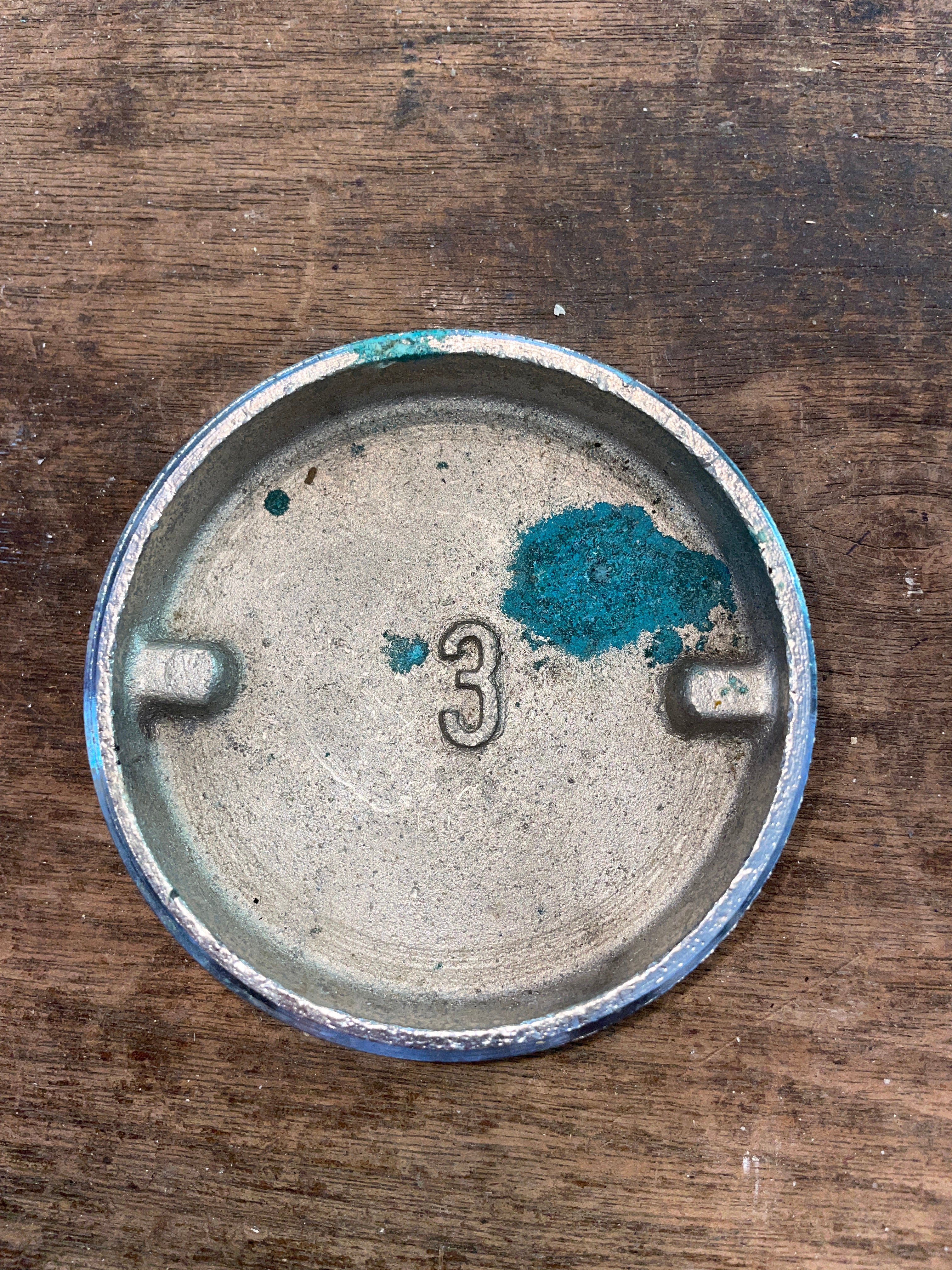 This stainless Steel #3 screw in deck plate has a ID 3 1/8” while the OD is 3 1/4”. To key holes on surface are 2 1/2” apart (measured from center of each hole).