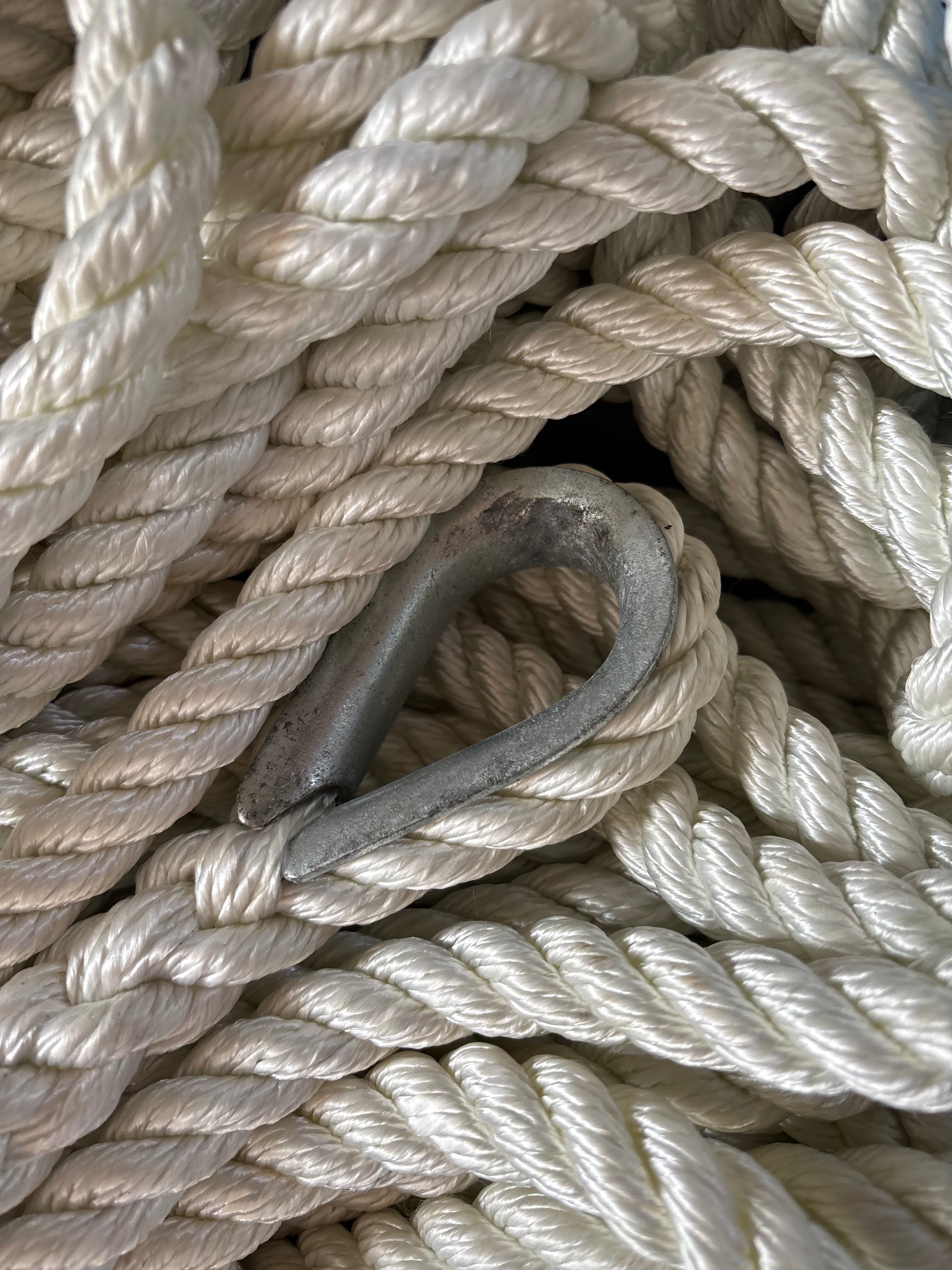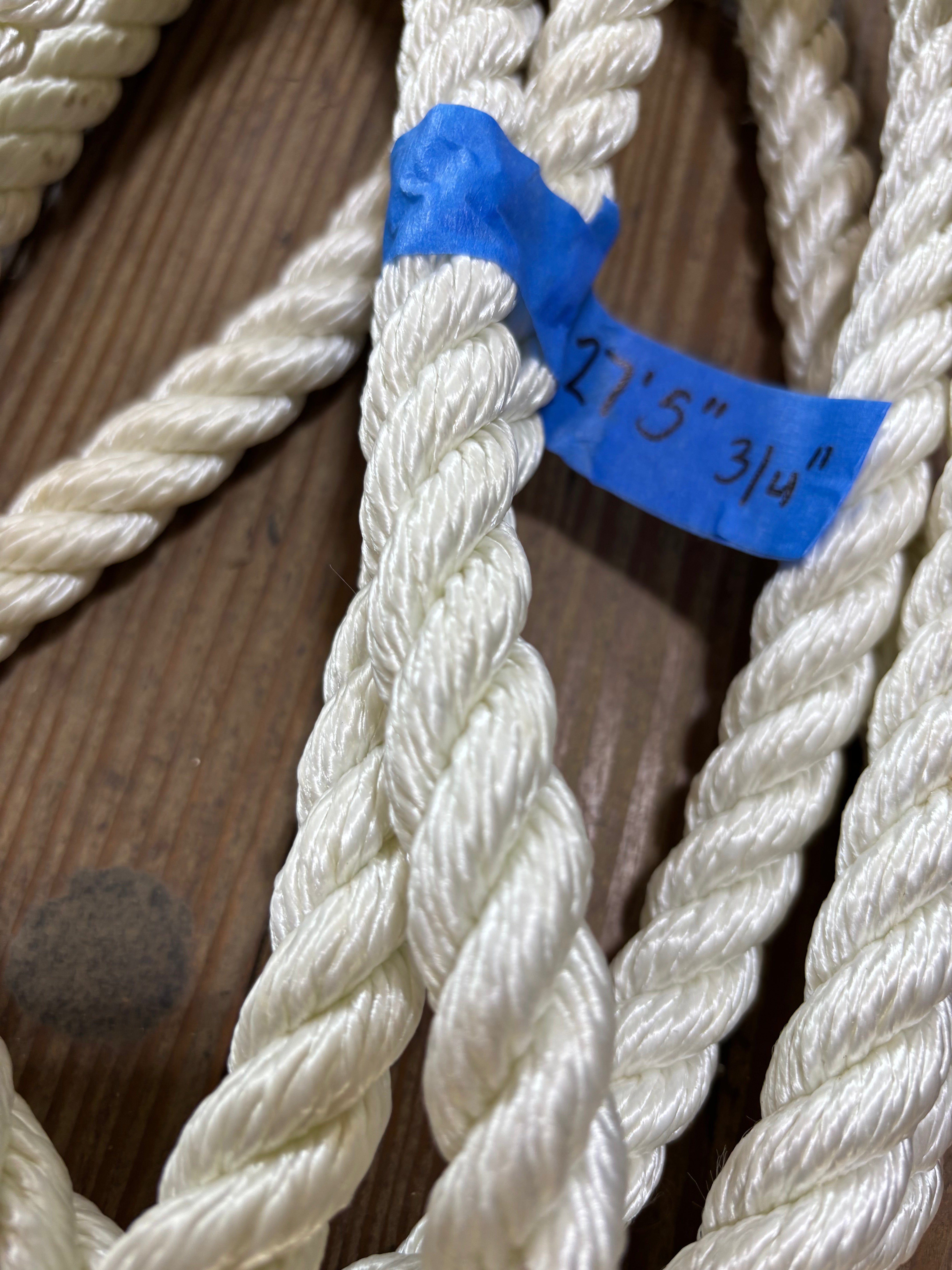 All white line. 3/4" thickness. Some of the line is dirty but overall good condition. No major rub areas and no fraying on any of them.