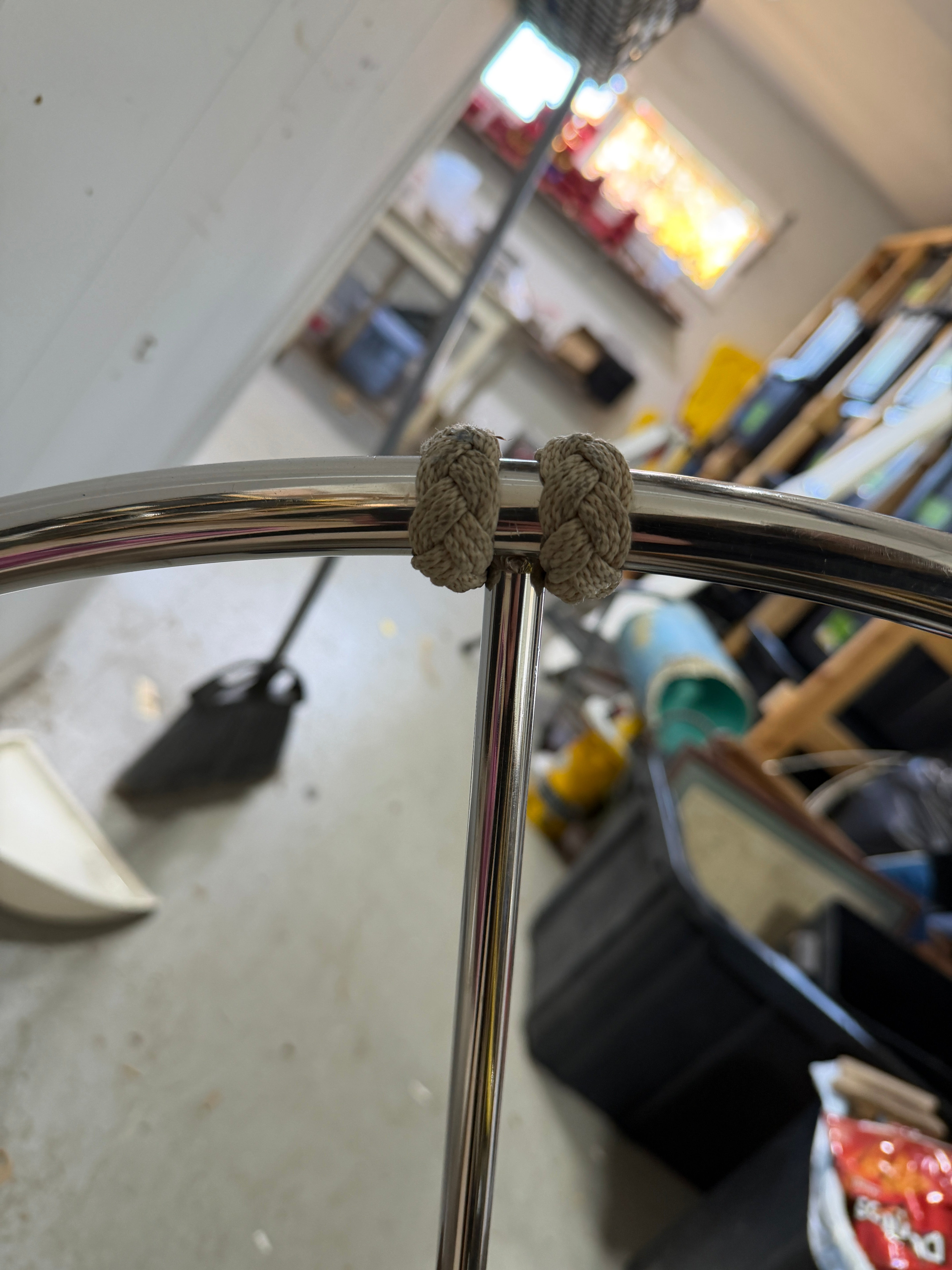 This is a 32" stainless steel edson wheel. It has a 1" keyed straight shaft. Included is an auto helm wheel pilot.
