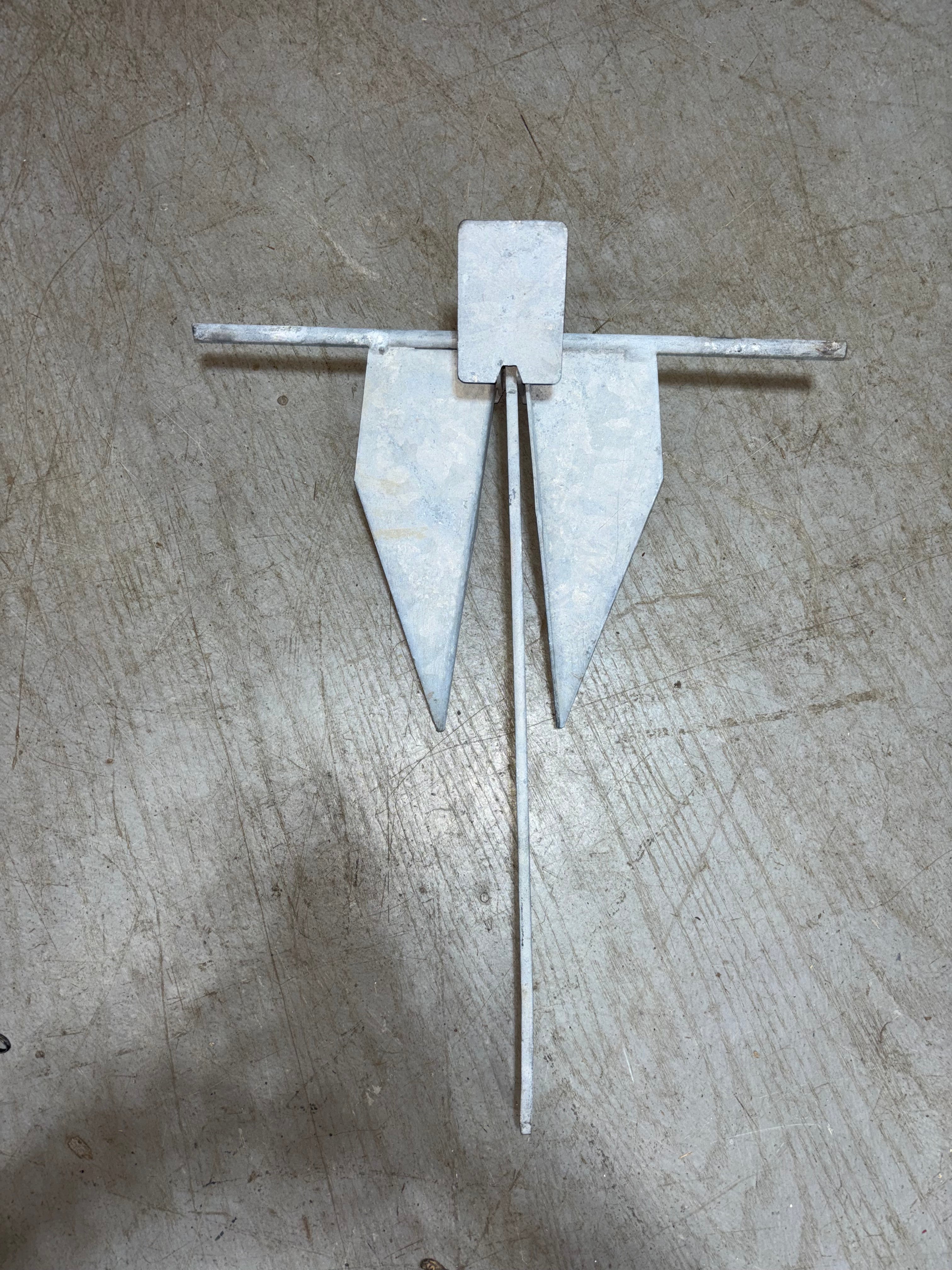 This small anchor is in great condition. It is a 4 pound anchor. Measures 19” long x 15” wide.