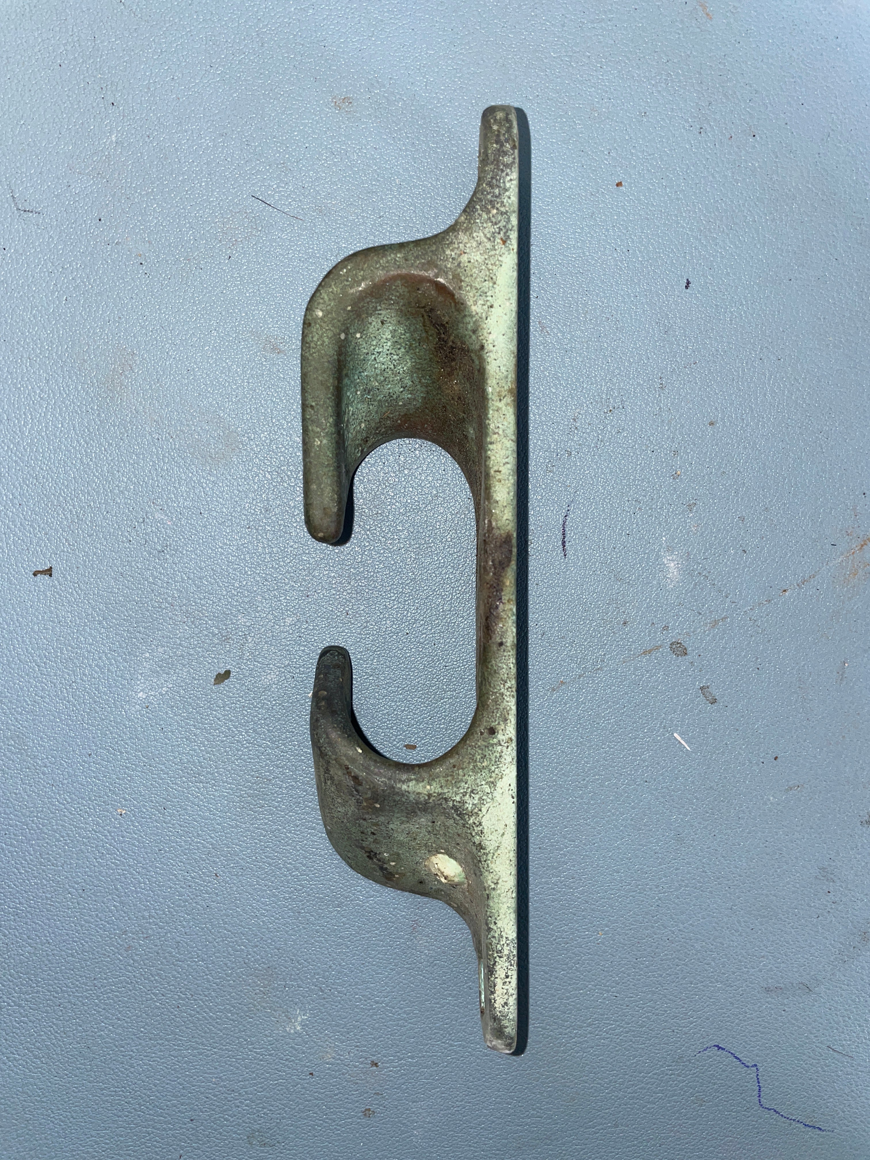 This solid bronze chock cleat is in great condition. It is 6" total length x 7/8" width. It fits 3/4" max line diameter. Stands 1 3/8" tall.