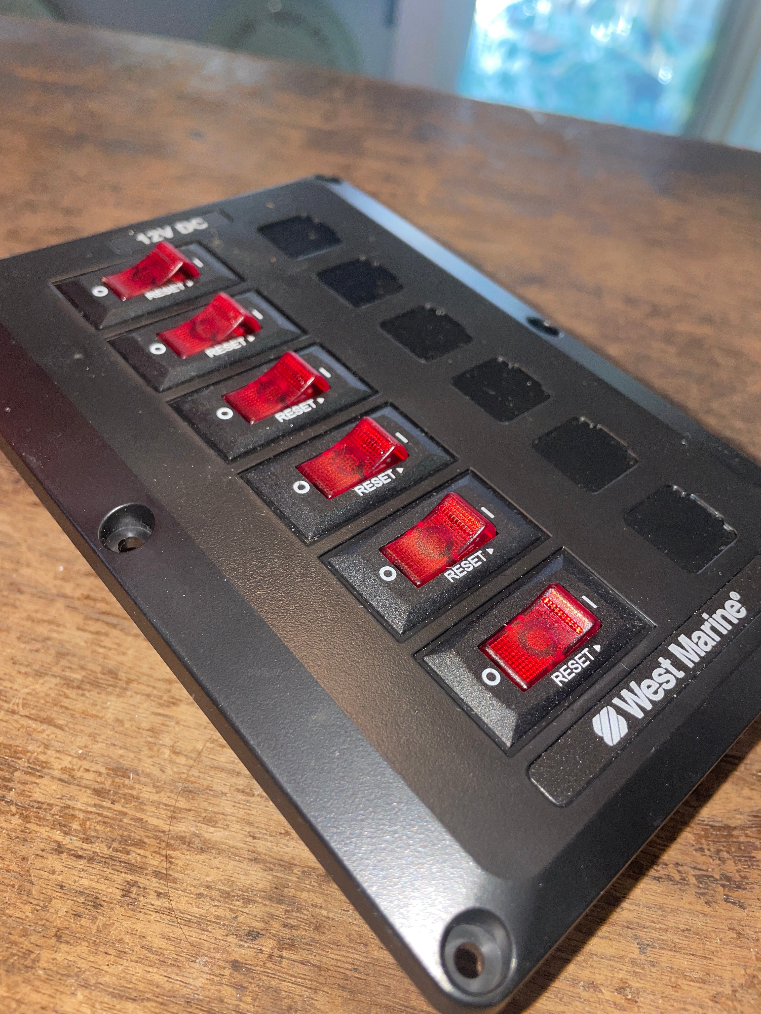 This west marine 6 circuit 12V DC panel is in great condition. It comes with the screws for install. 6 1/4” x 4 1/2”. Very light weight, has no wiring.