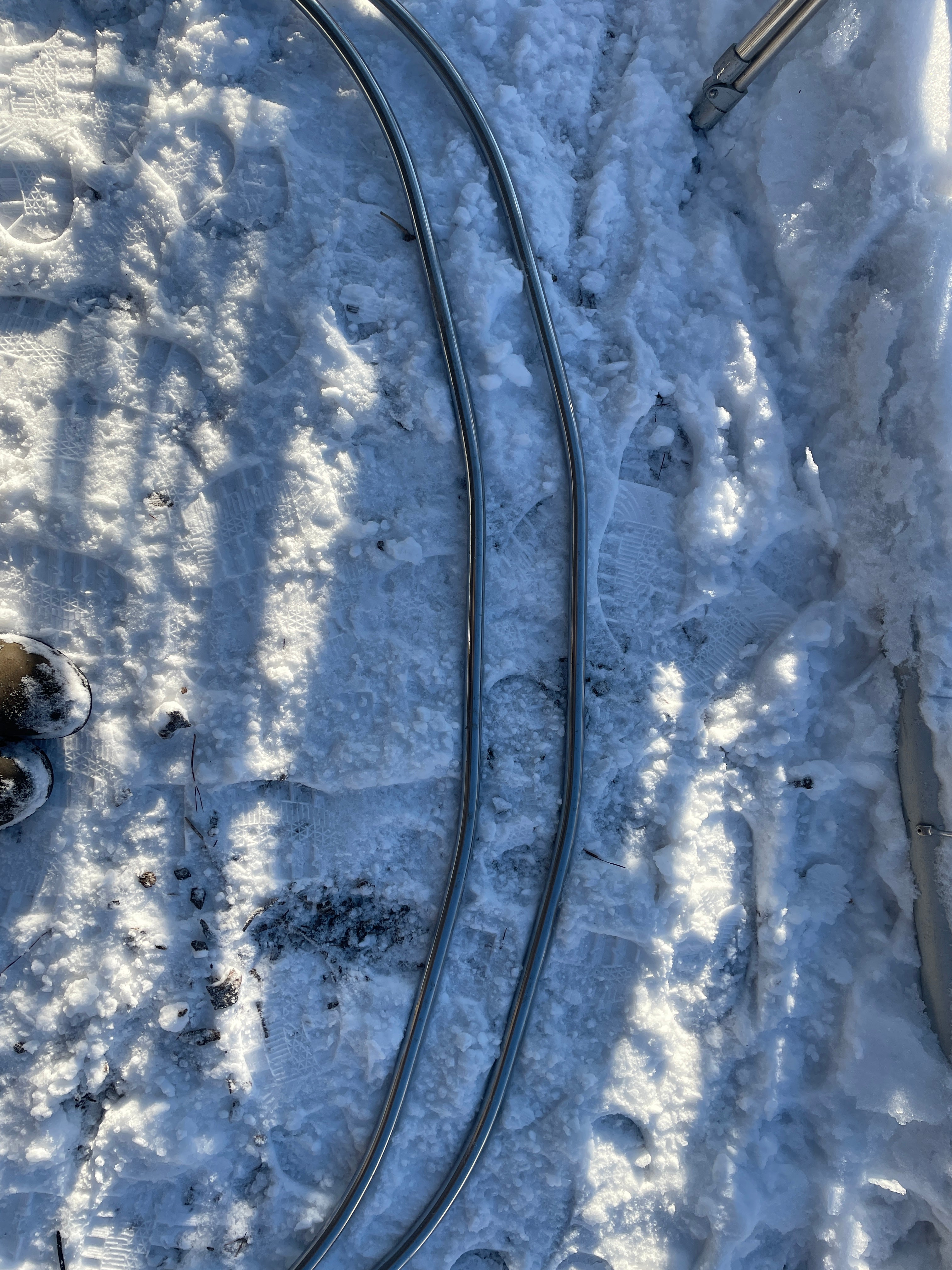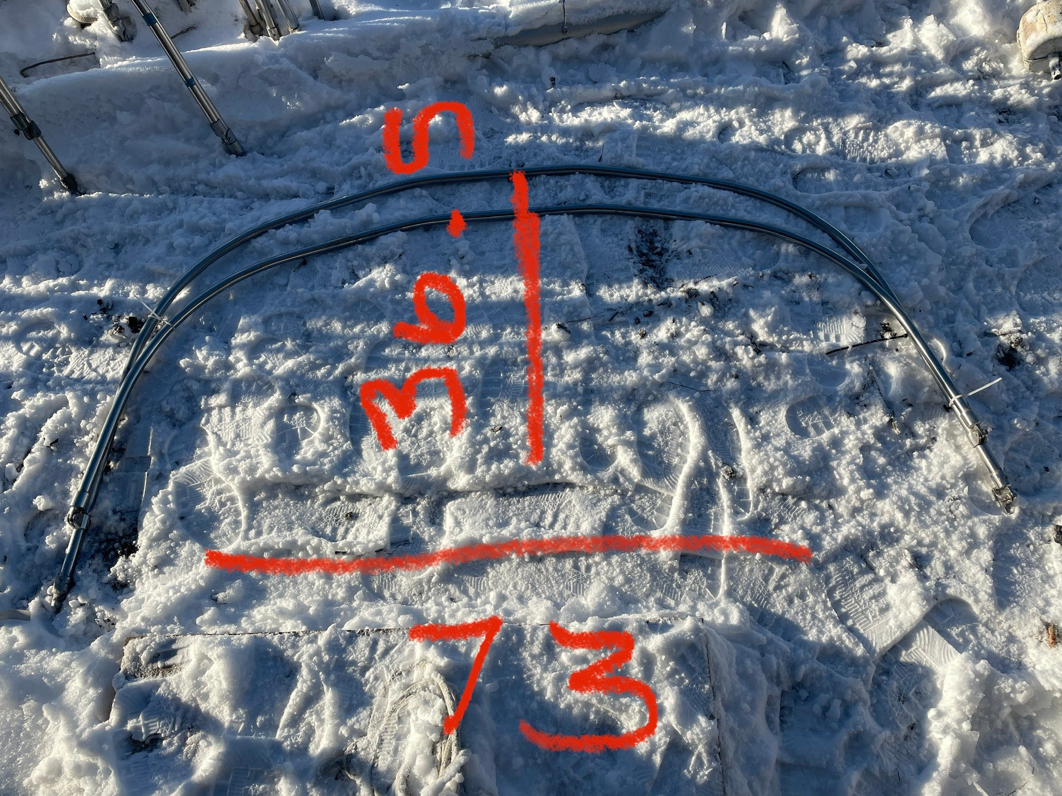 This SS dodger frame is in good condition. The 2 bow frame measures 73” long and stands 36 1/2” tall (to the highest bow).