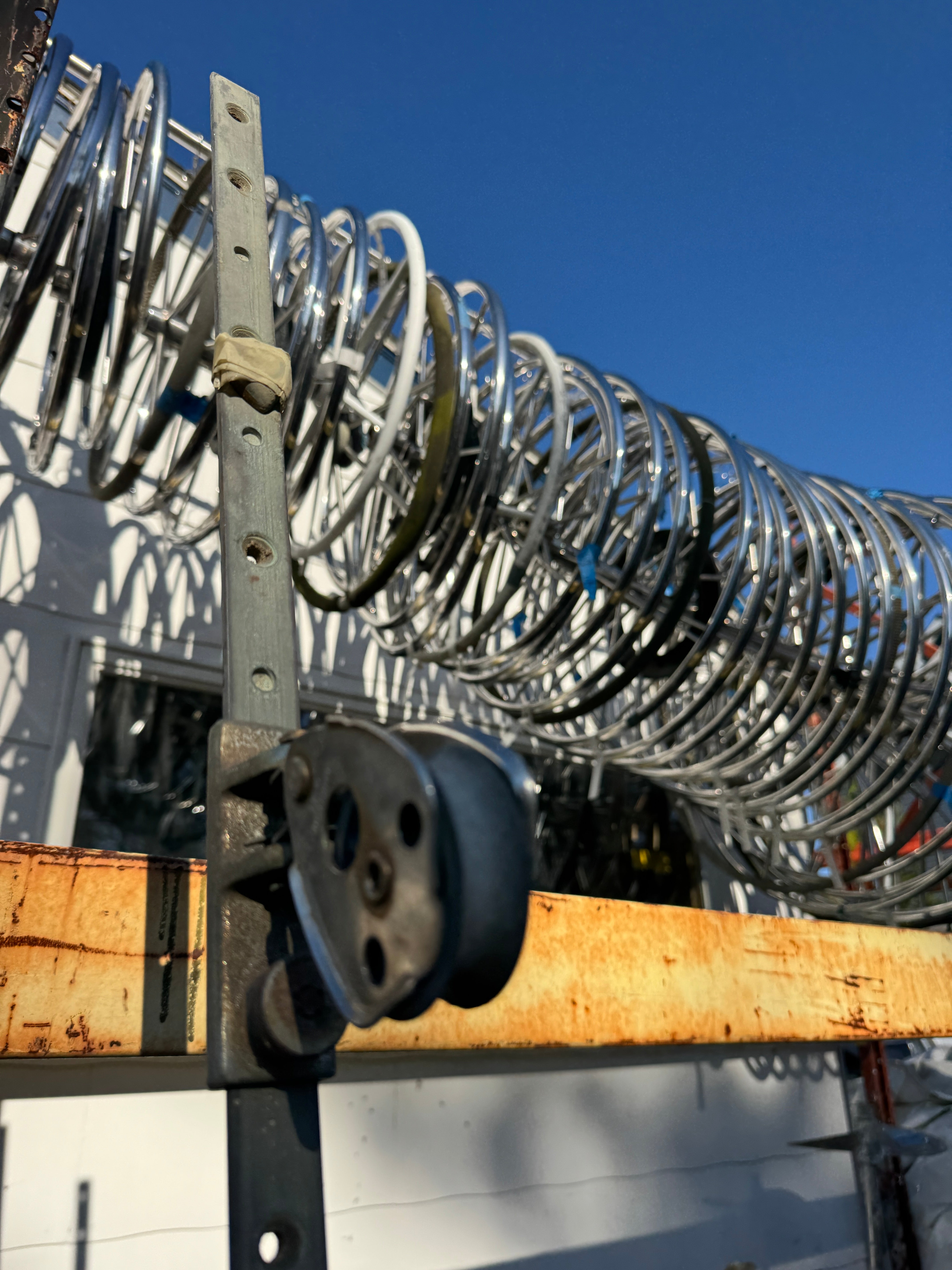 This solid bronze T track is in great condition. It is slightly curved but not very noticeable. The track is 8 feet total length. The track width is 1". Comes with a chromed bronze track car as well as a fico block.