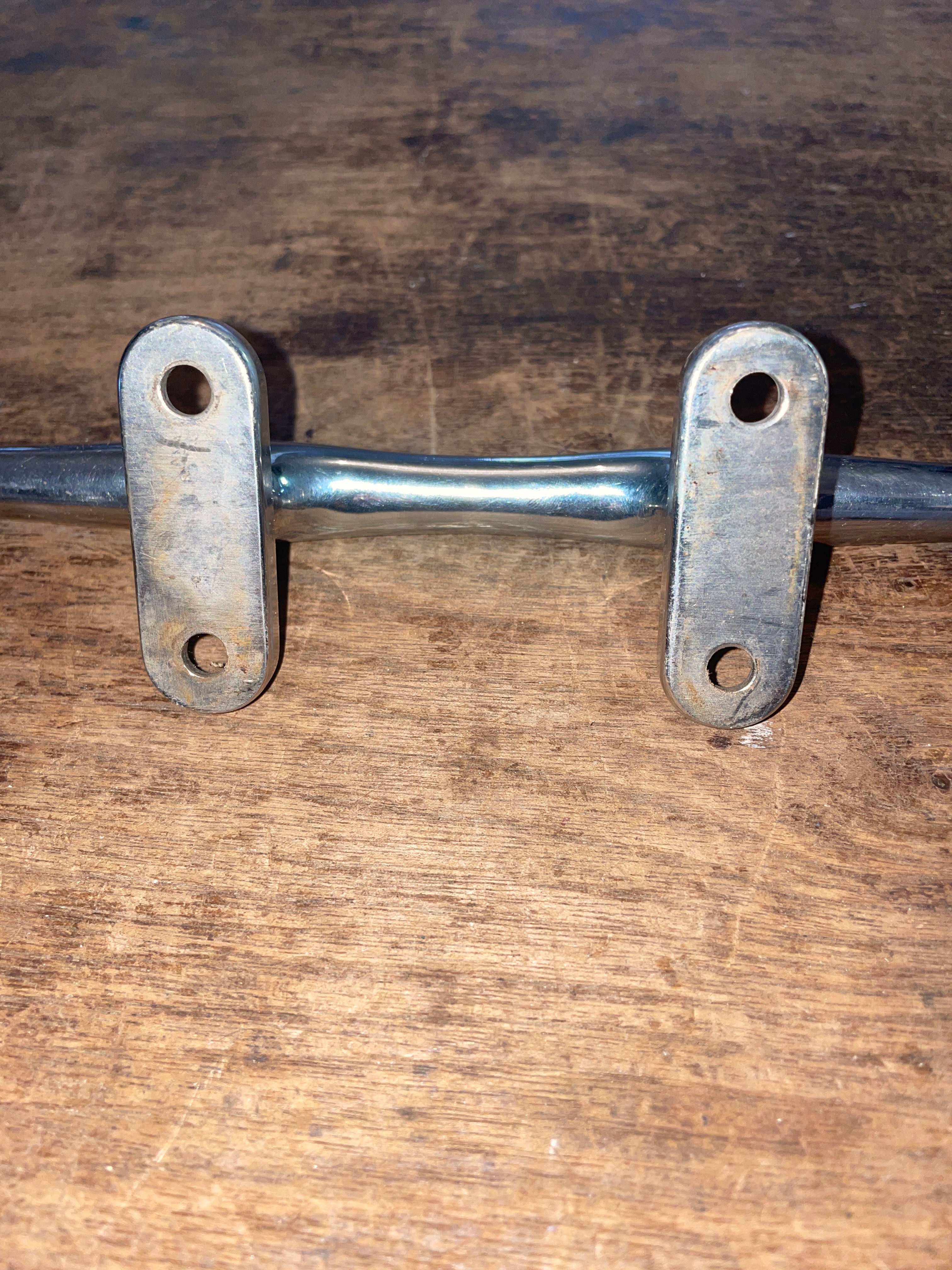 This stainless steel cleat is 8” long and has smooth rounded edges. 4 bolt install. The bolts are 2 7/8” long and are 1 3/8” side x side. Stands 1 1/2” tall.
