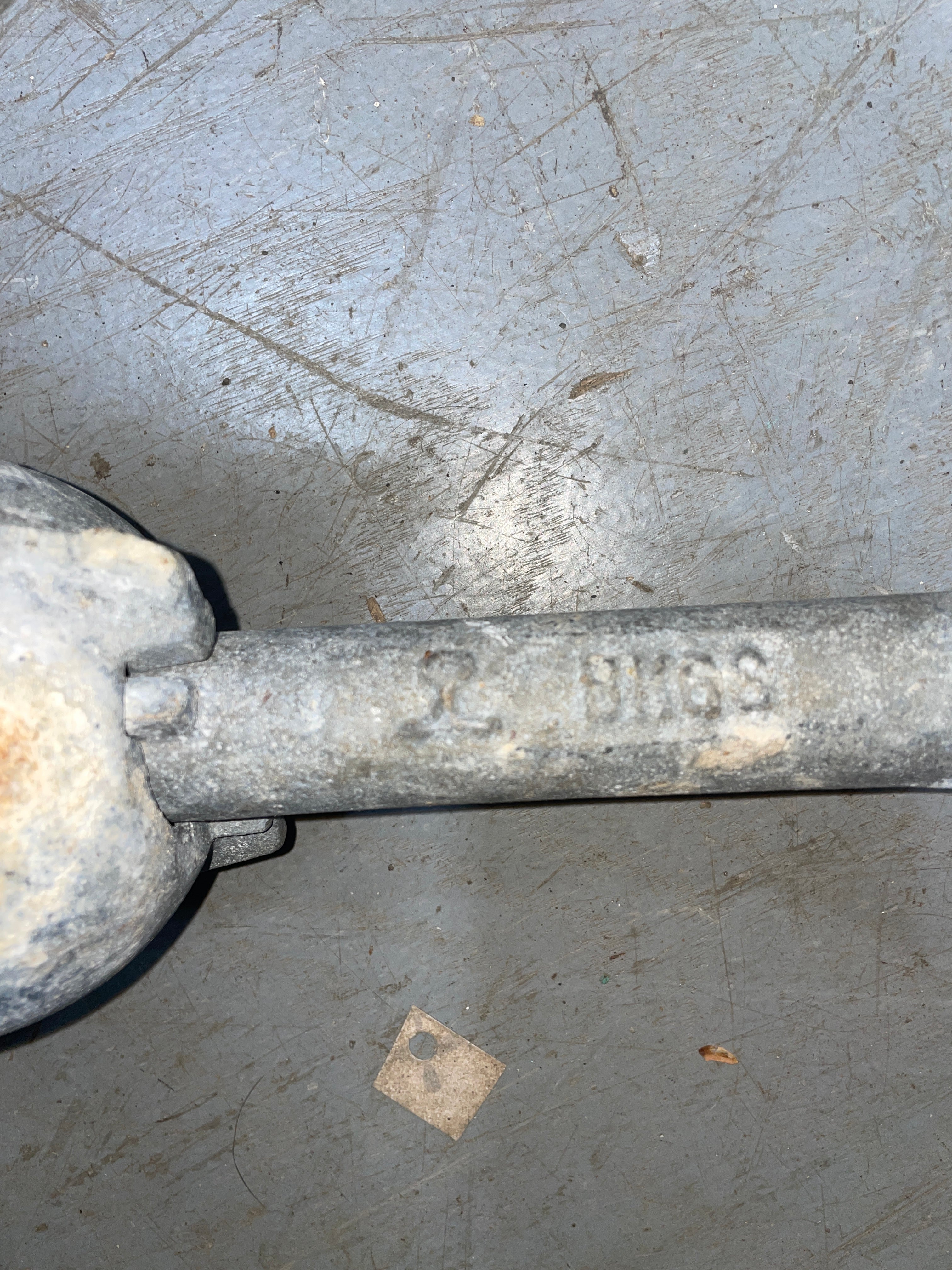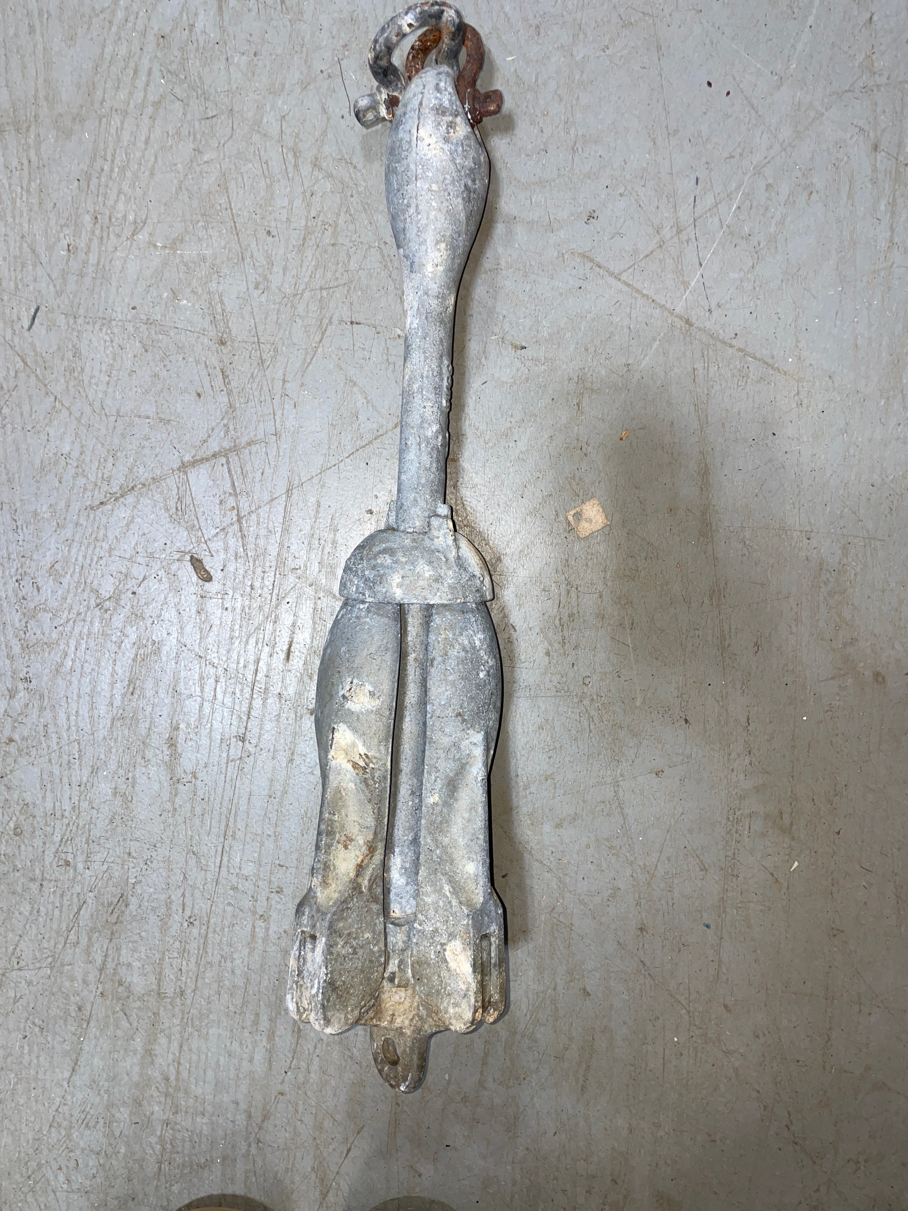 This grappling anchor is in good condition, has usual appearance of a used anchor. The anchor is 8KGS OR 17.64 pounds. Comes with 2 rusty shackles. Has a 5/8” hole at the base of the anchor.