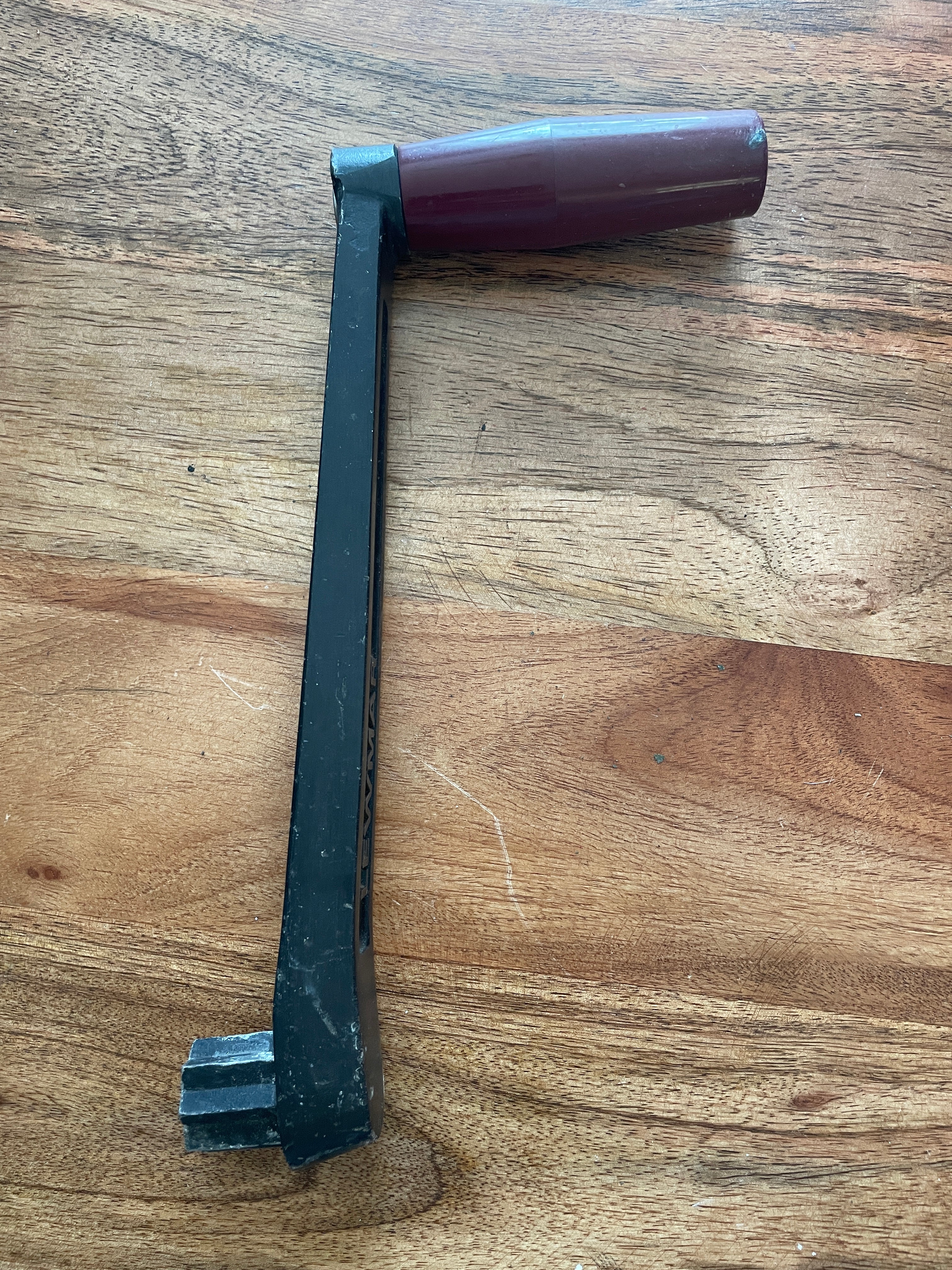 This lewmar regular winch handle is in good condition. It is 9” total length. Has a 1” star insert. Metal handle has some scratching a dings from previous use. Plastic red handle in good condition.