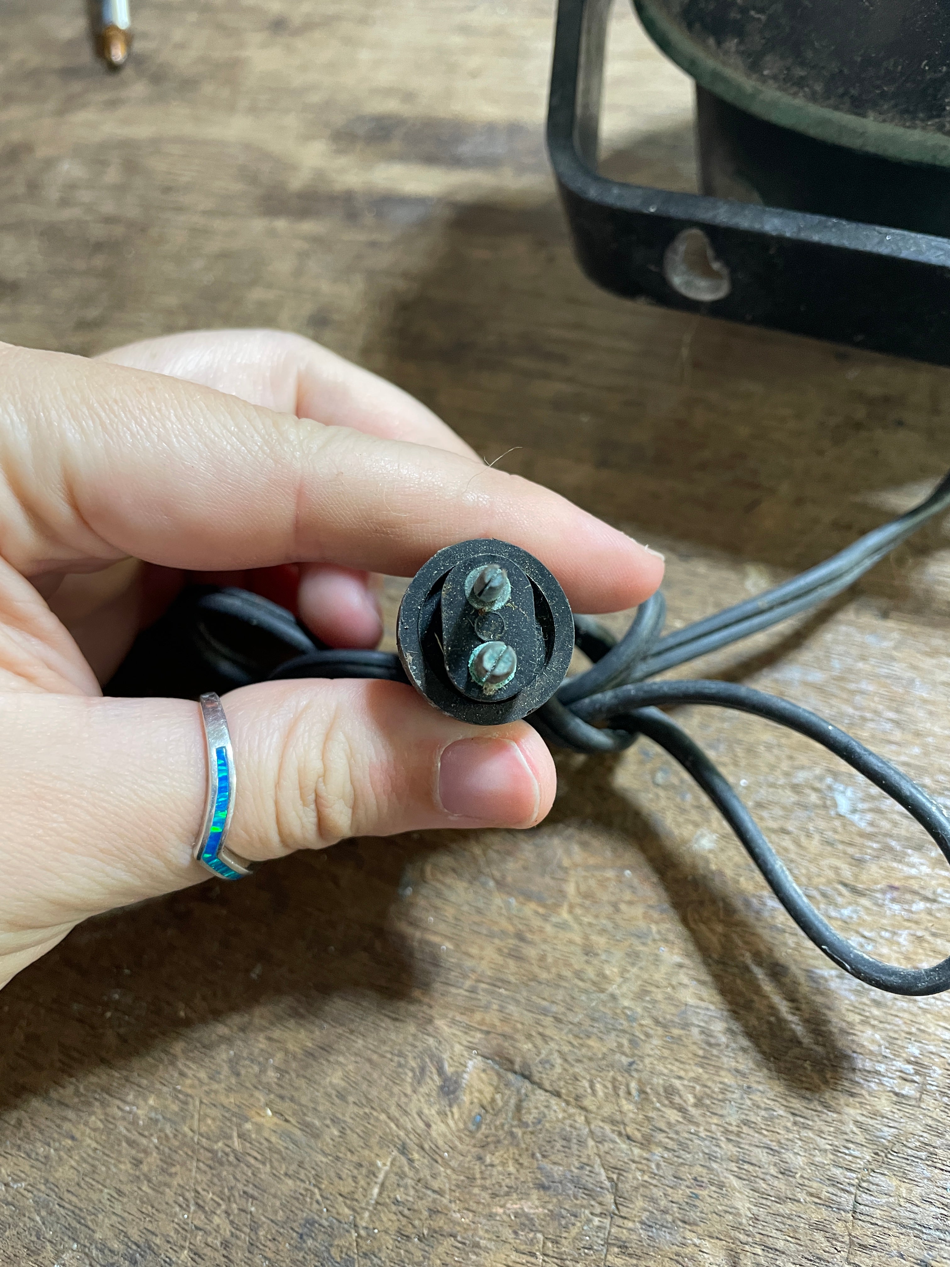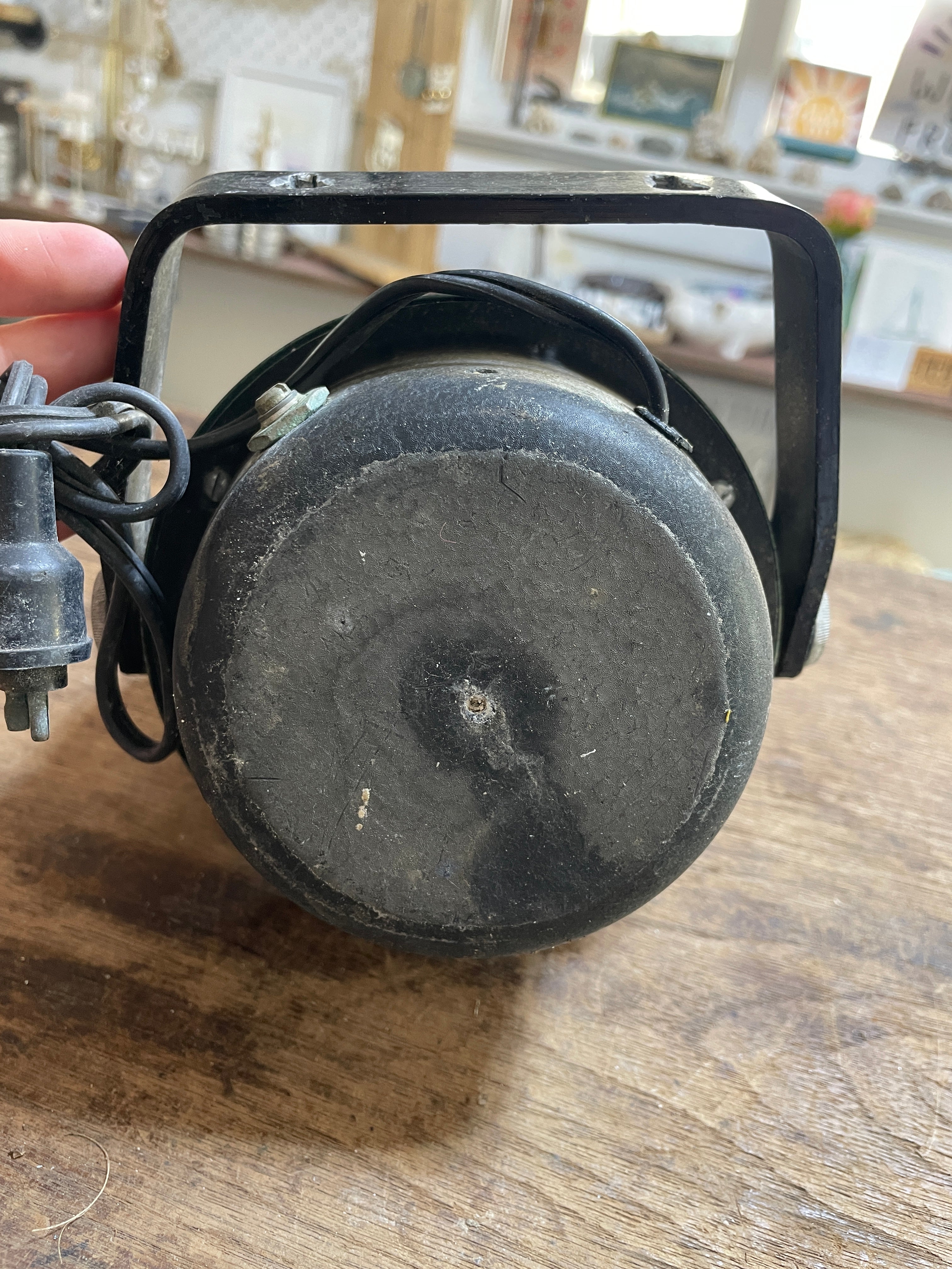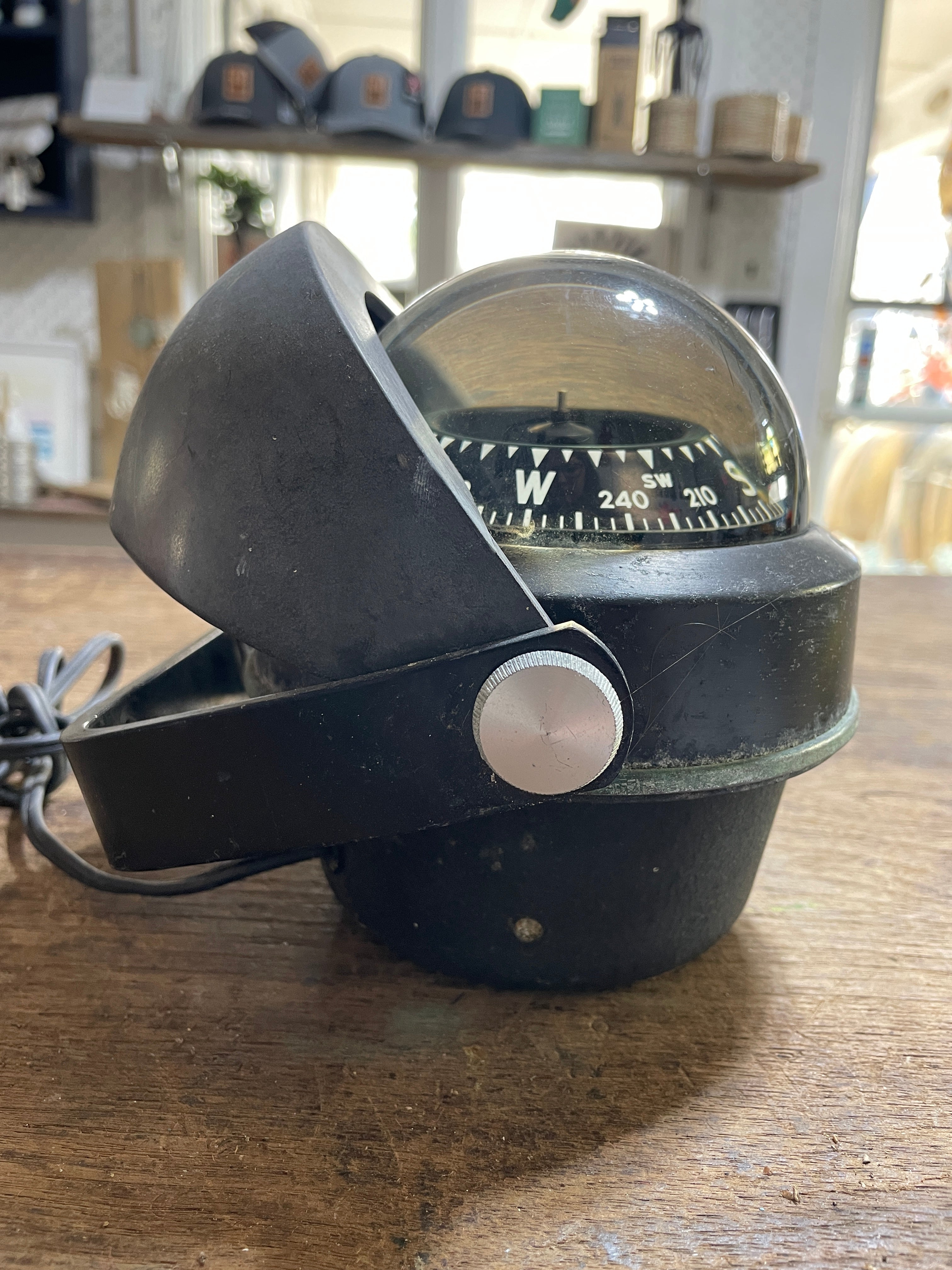 This is an air guide compass, unsure the exact model. The compass overall diameter is 5". The compass base is 3 7/8" diameter. It has the light attached with the plug - it is untested. The mounting bracket is steel, the 2 mounting holes are 2 1/2" apart. This compass Stands 5 1/2" tall. There is 1 small bubble at the very top of the compass liquid and there are scratches to the plastic dome.