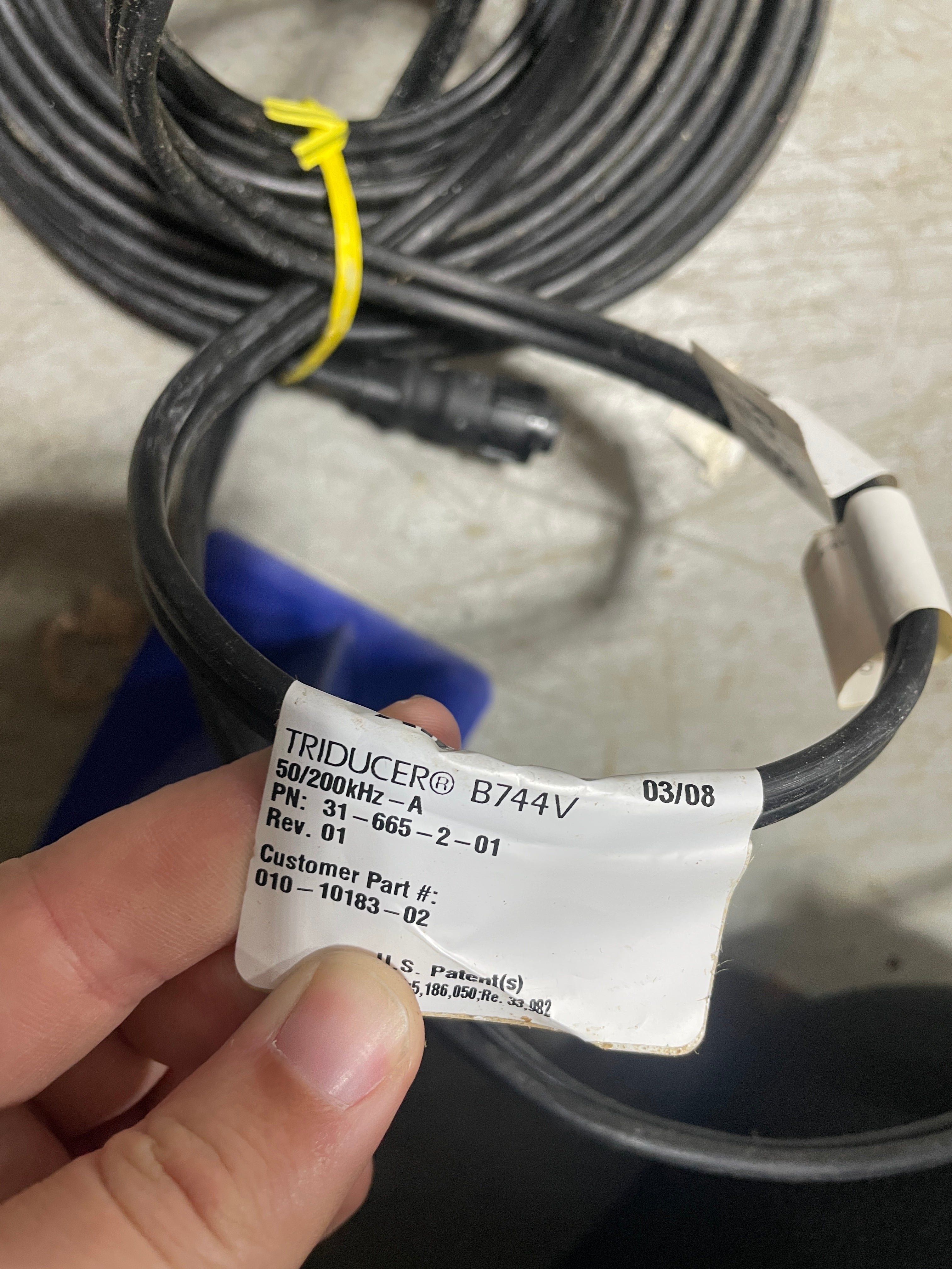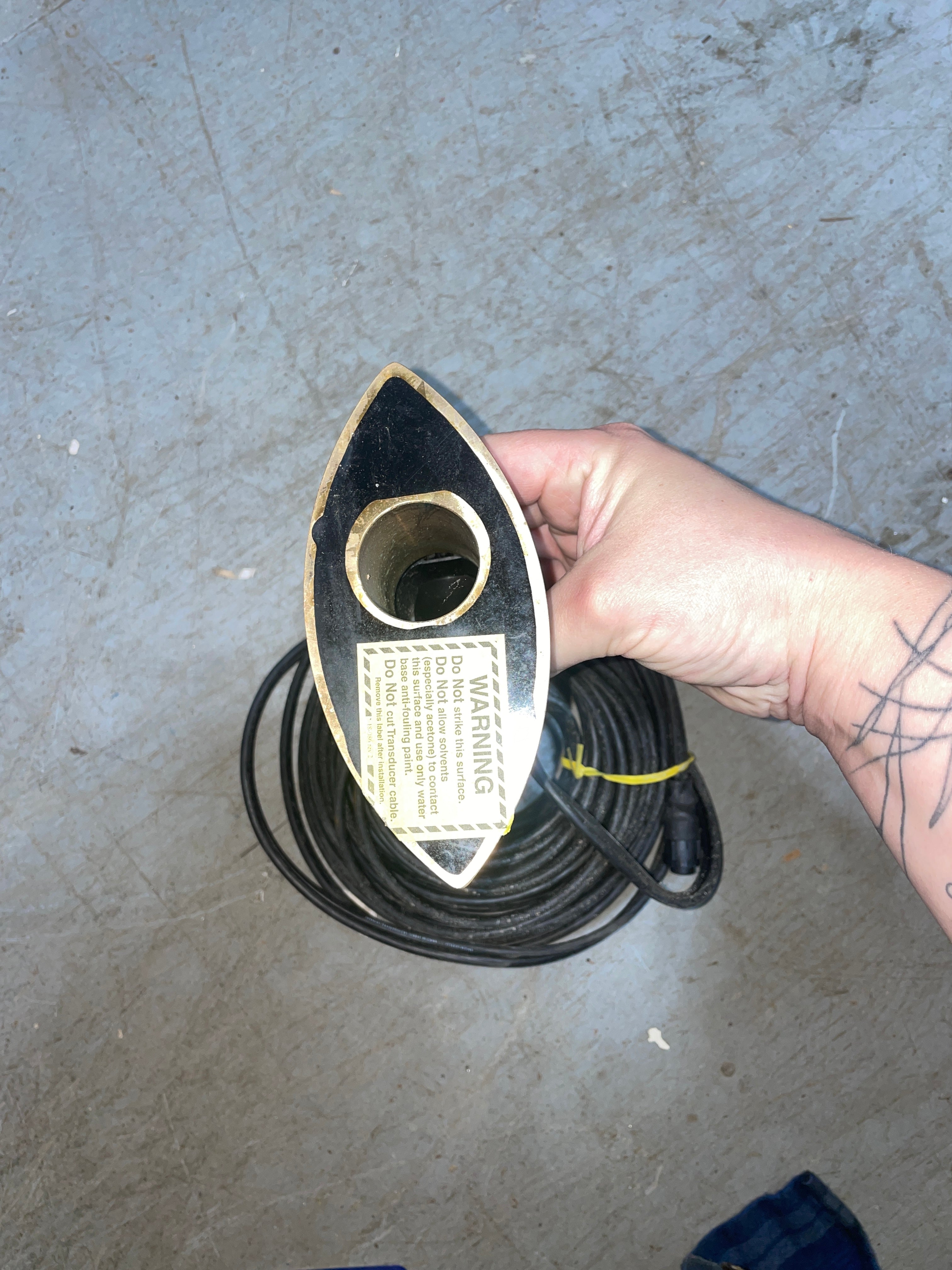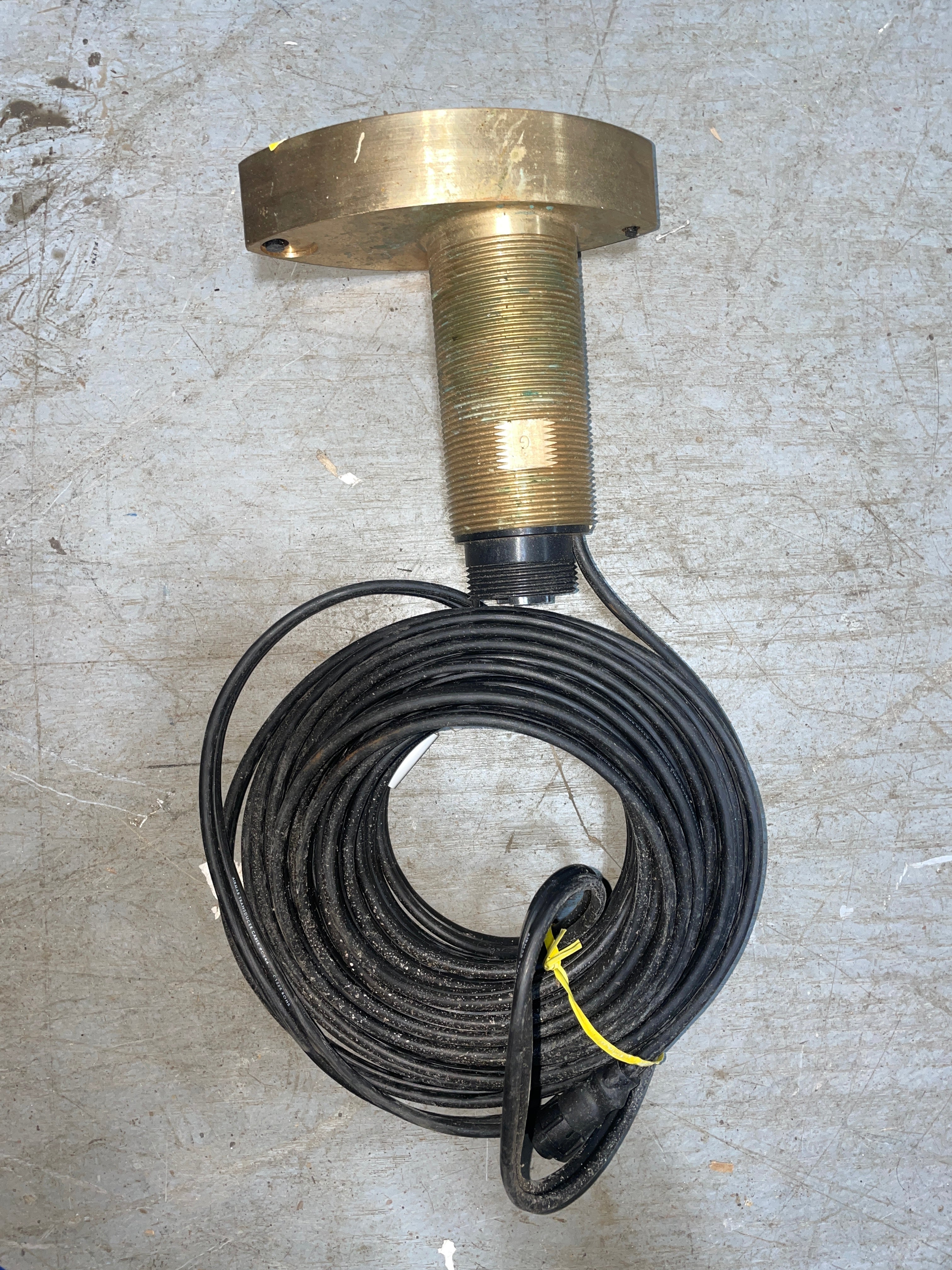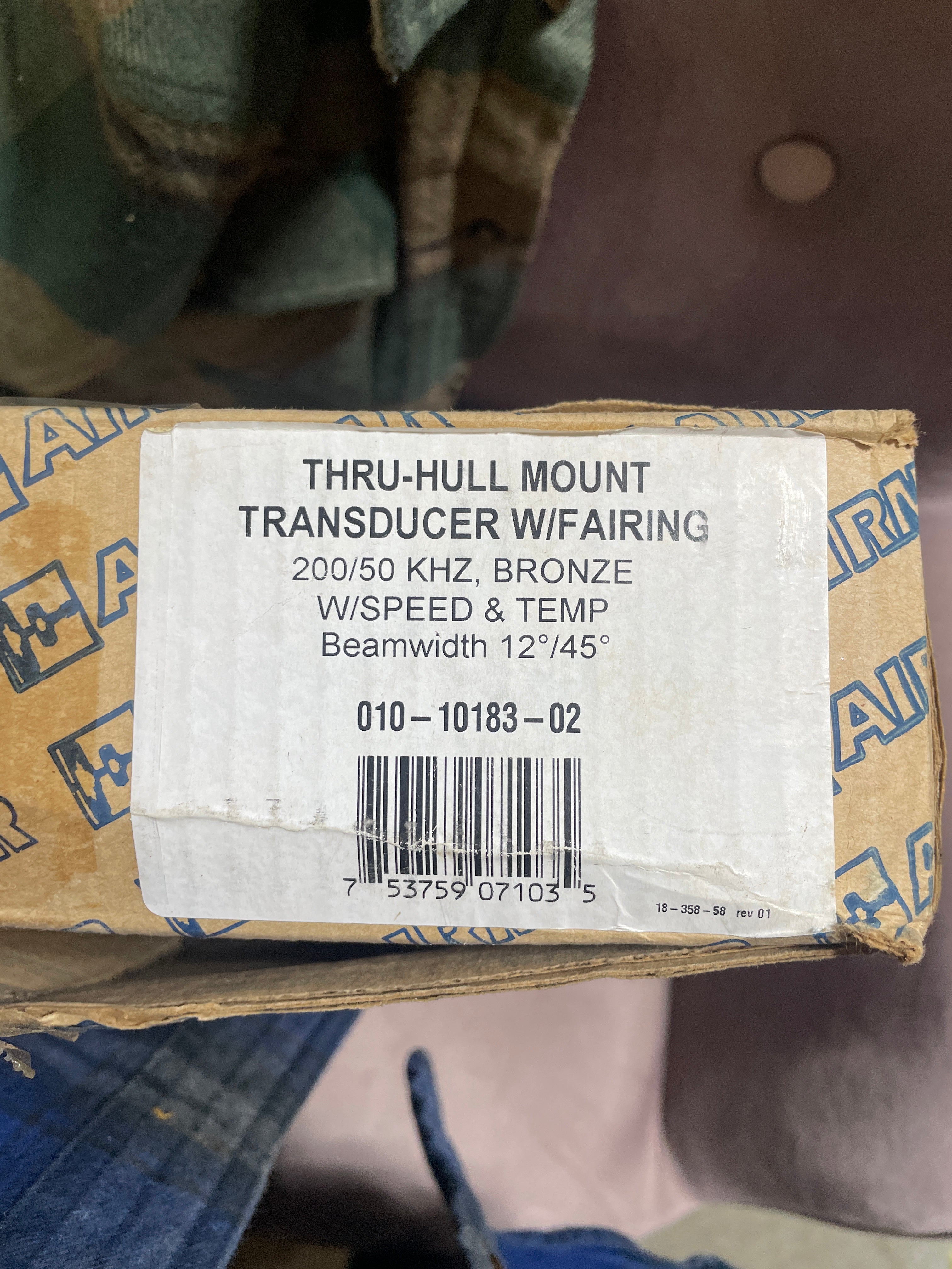 Brand new in packaging. AIRMAR triducer. Model B744V. This is the complete system. Comes with everything shown. It is the speed, temp multi sensor. Thru-hull mount transducer with fairing. It is bronze. The beam width is 12 degree / 45 degree. 200/50kz.