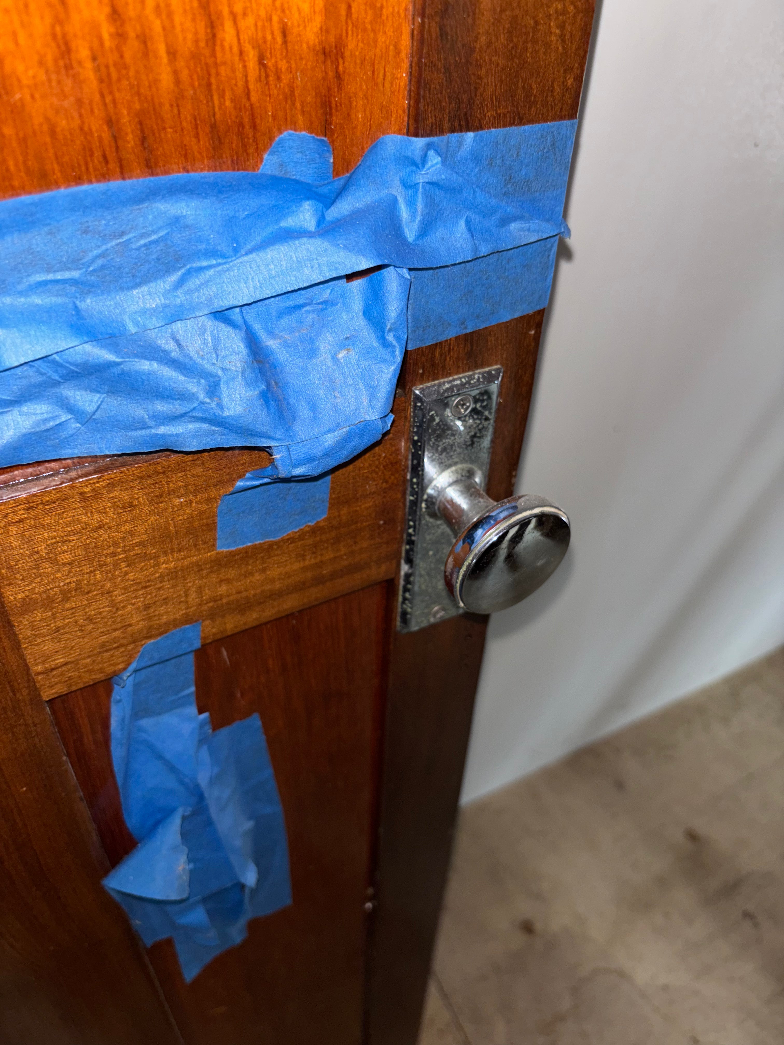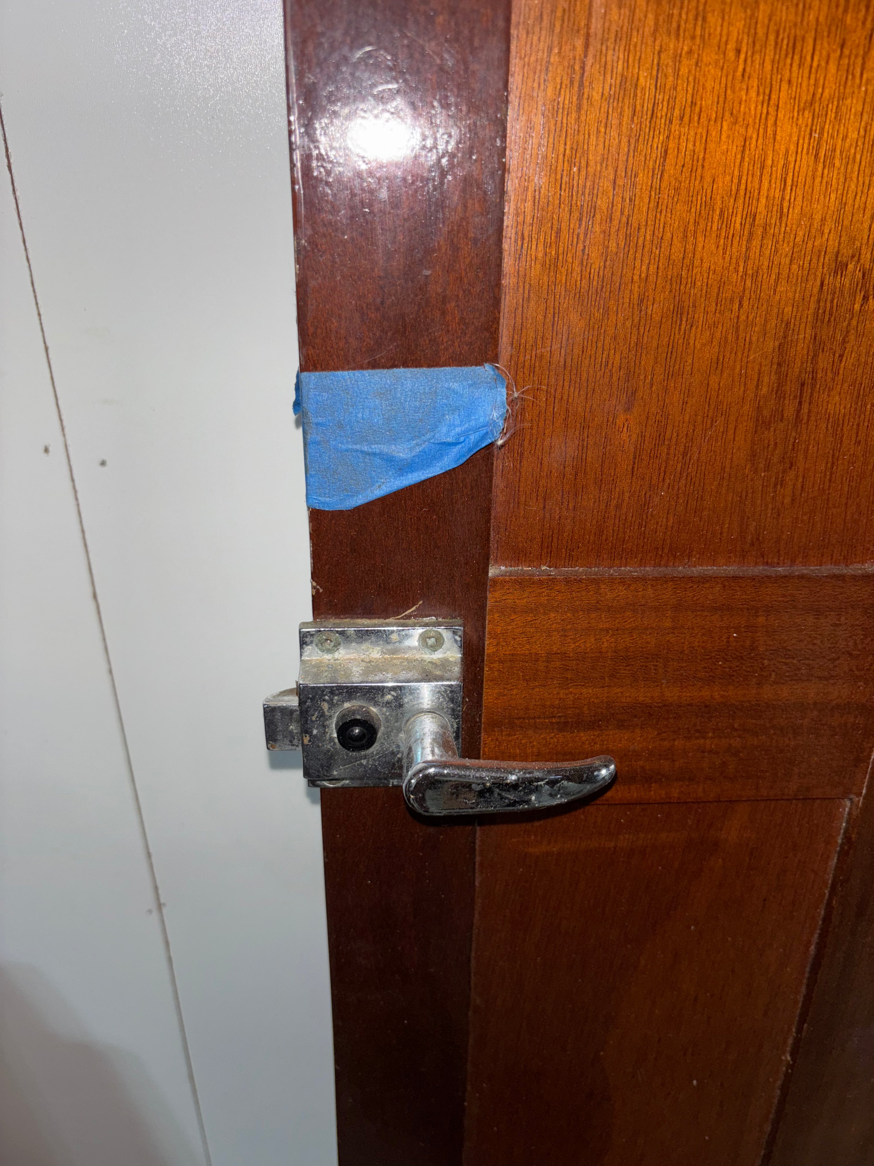 Alberg 30 Interior Door - 58.75" x 17 1/8" x 3/4". All the tape is just holding hardware on so it doesn't get lost.