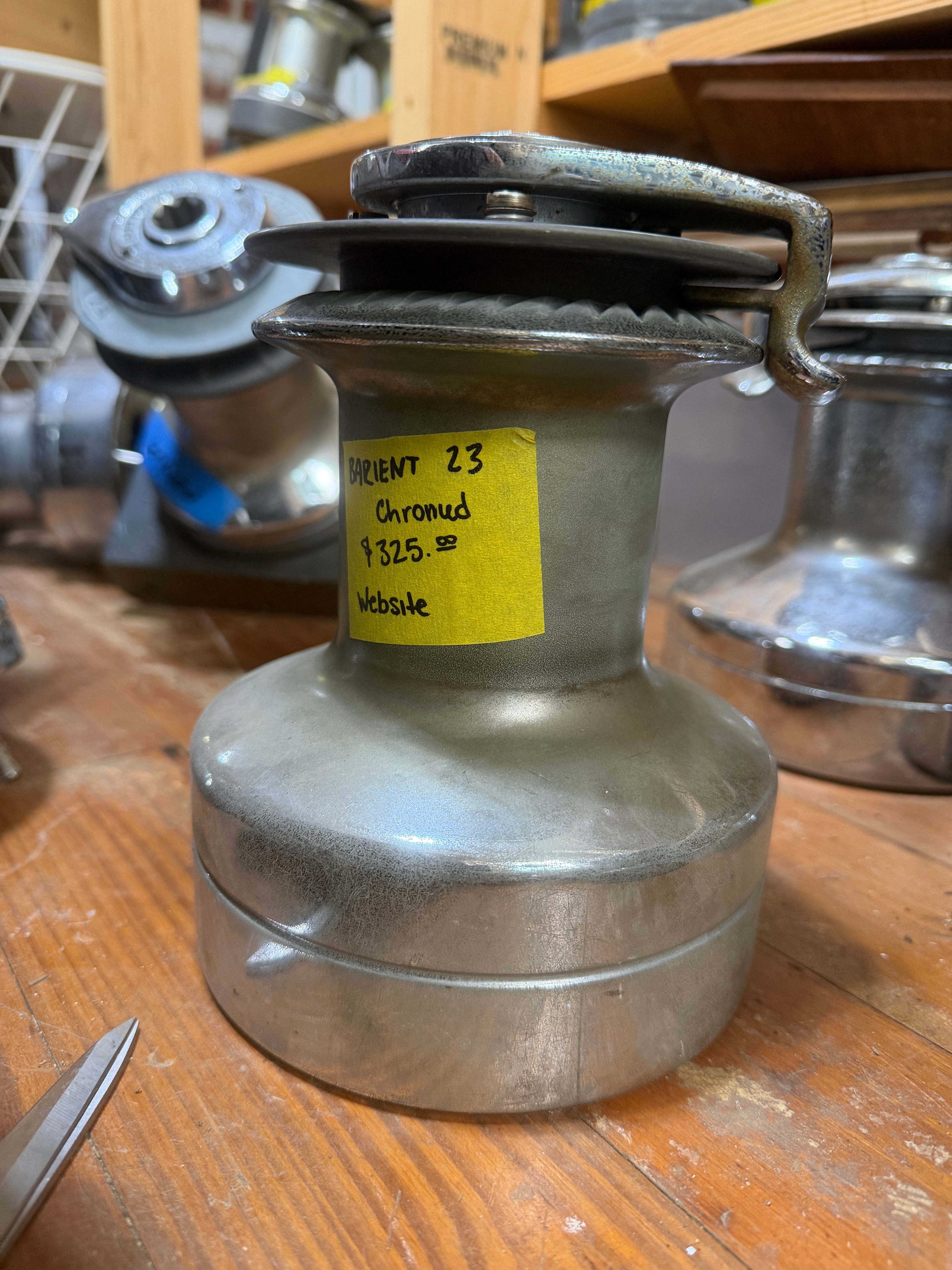 This barient 23 self tailing winch is in great condition. This winch will be serviced prior to purchase to ensure that it is in proper working order. This winch has the aluminum body with the bronze inners. The winch is 7” tall. Has a 5 bolt pattern, please see photos as we have included a drawn image of the distances. The winch base is 6 5/8” diameter.