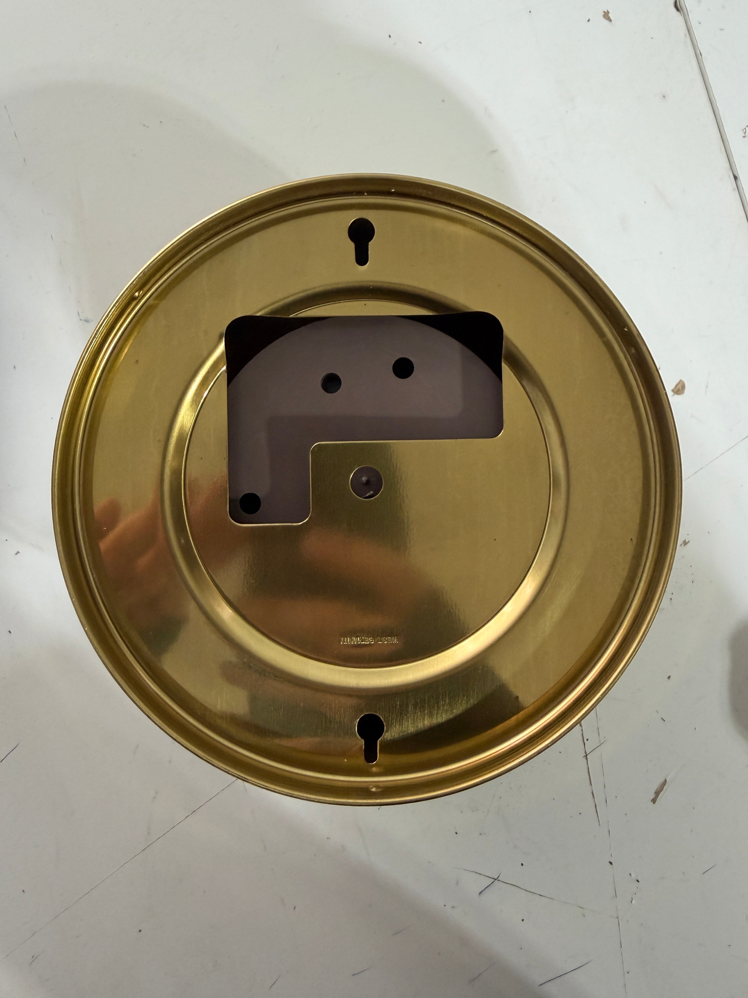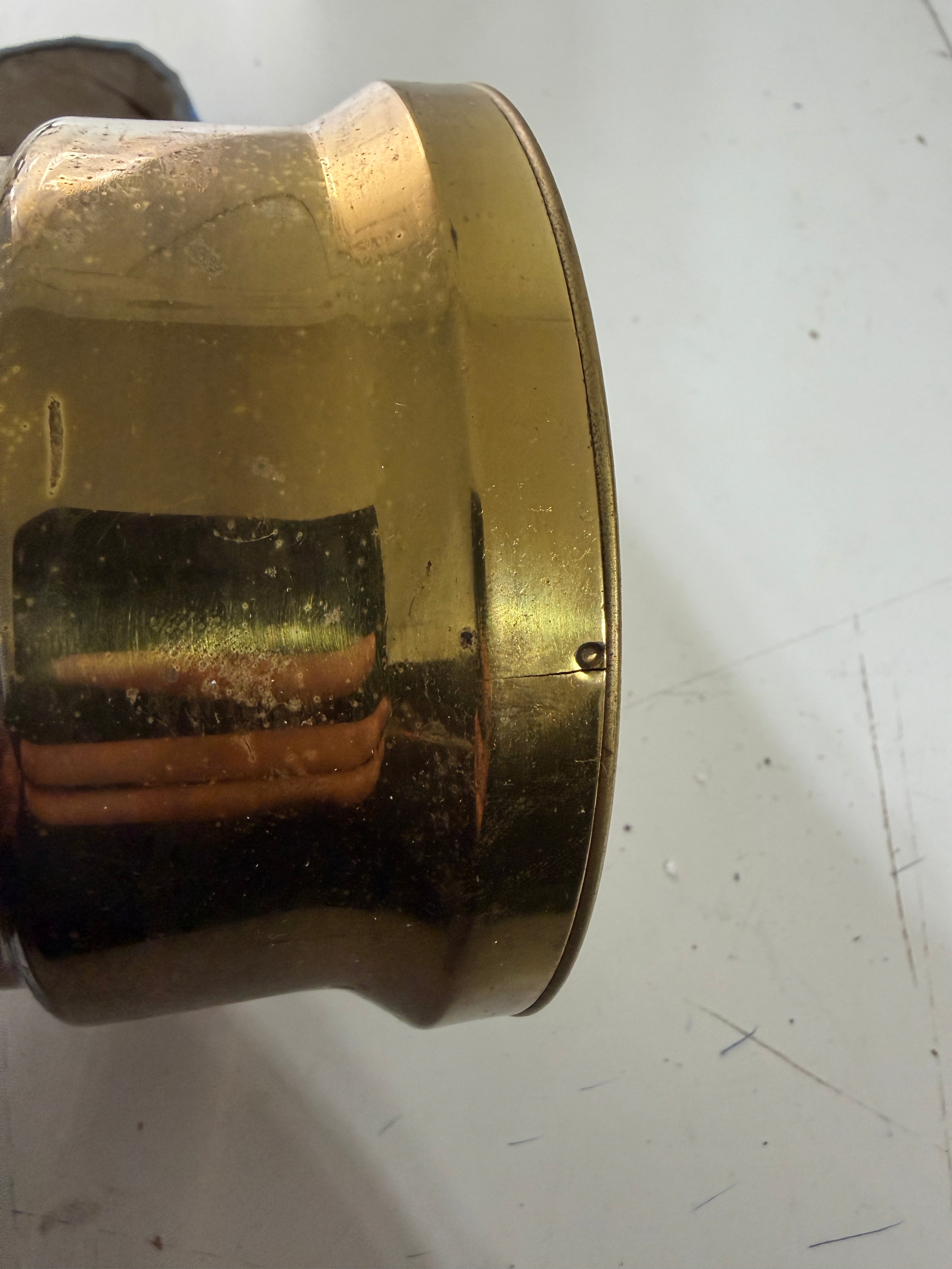 This barometer is being sold AS IS. It is lightweight brass casing. There is some cracking to the outer of it. Unknown if it works. 5" diameter x 2 1/2" tall.