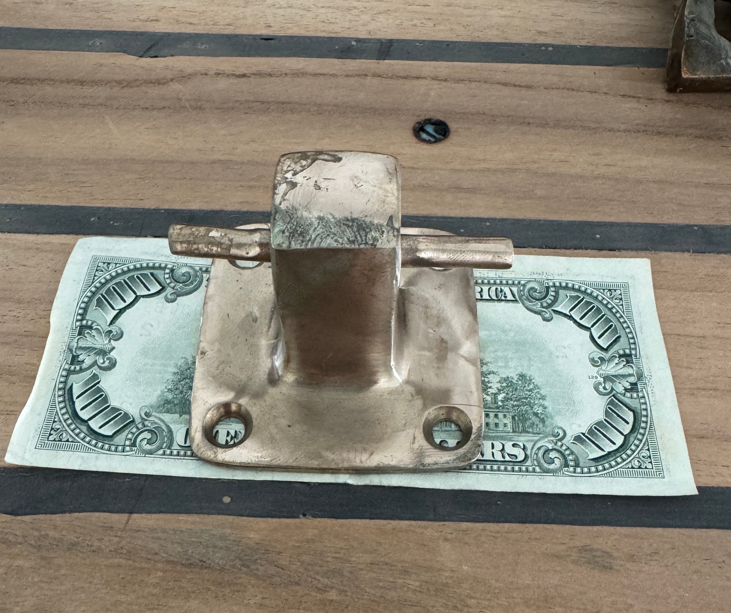 BRISTOL BRONZE CODE BB0106. Bronze small bow bit. These are hollowed. The bit is 2 7/8" squared and is only 2 1/4" tall.