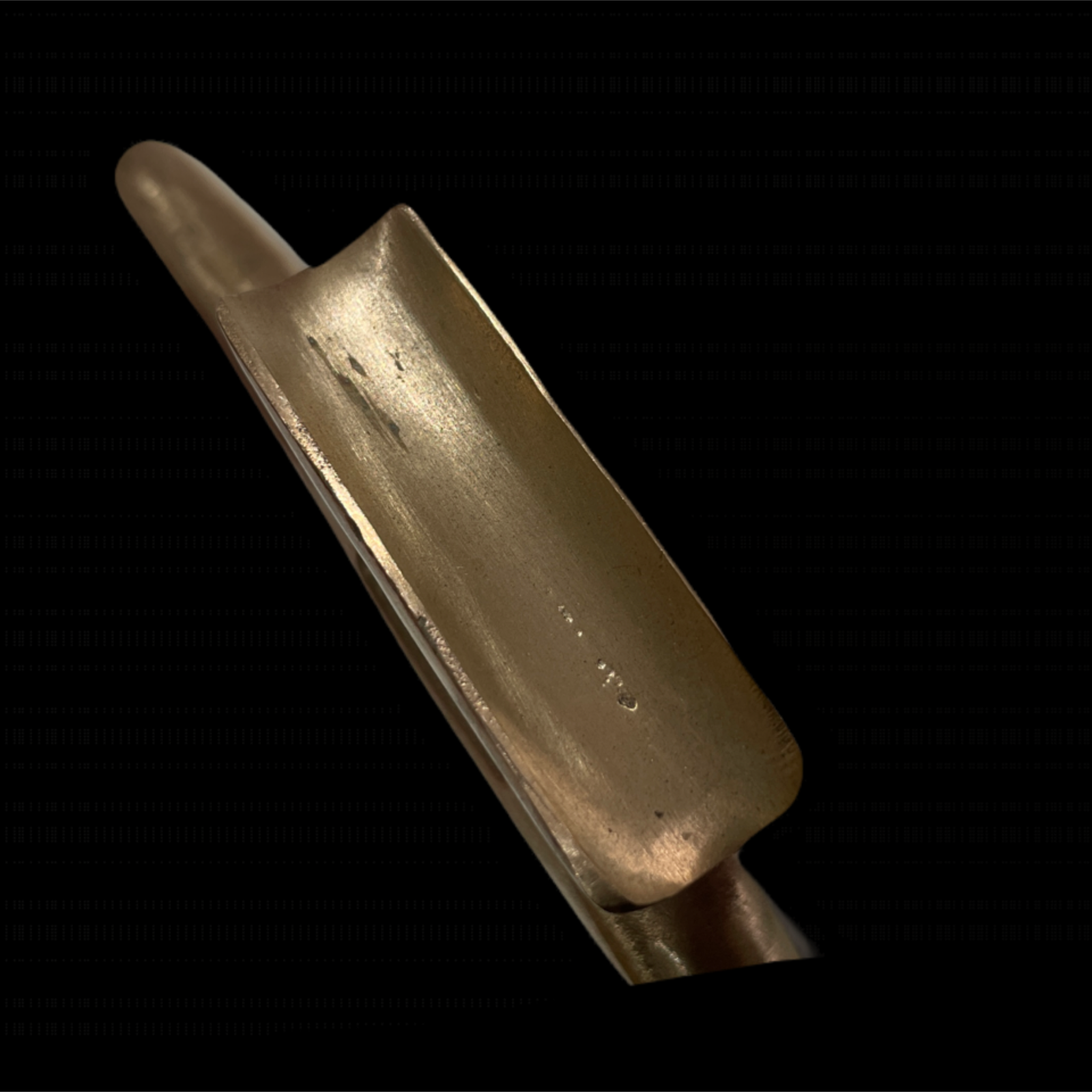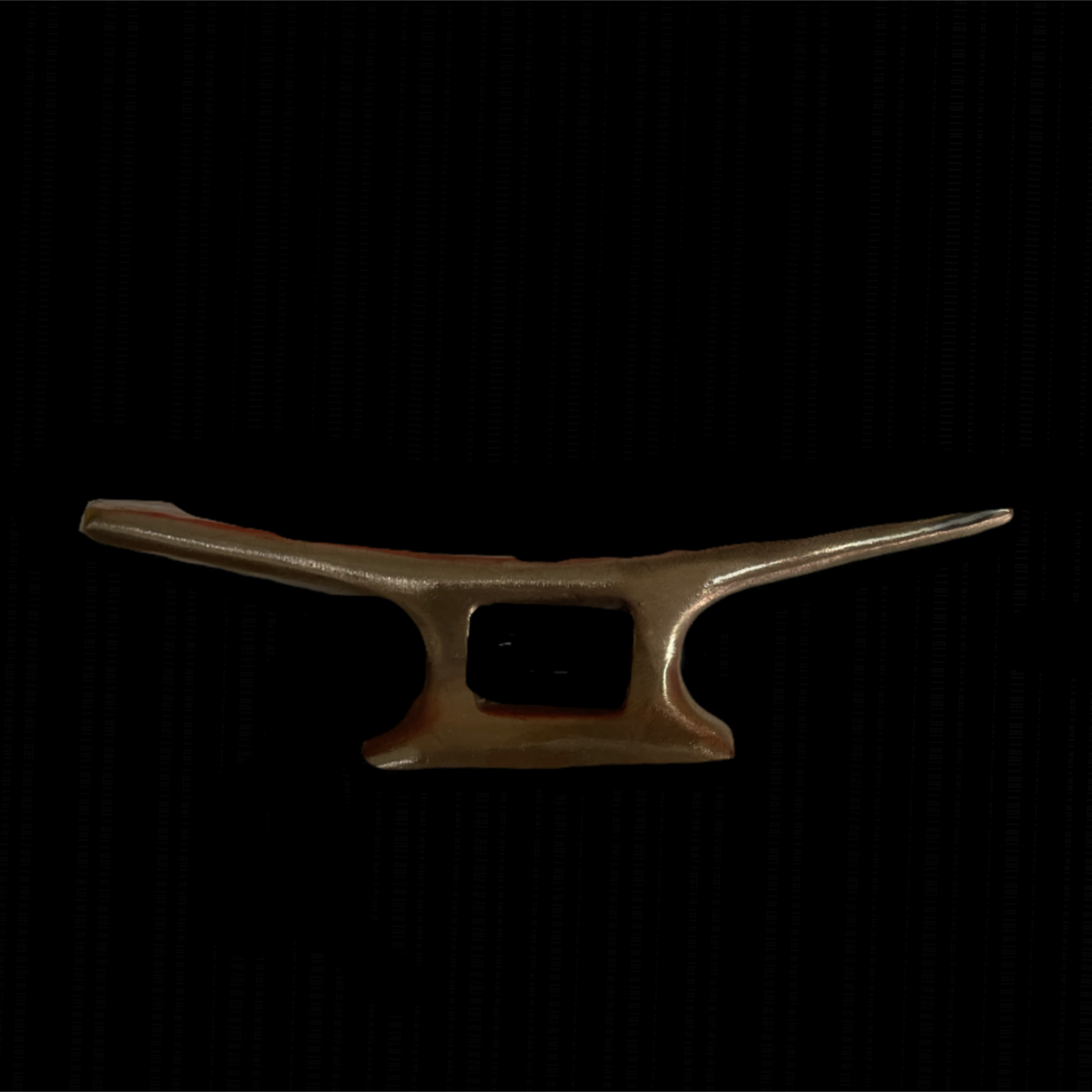 Bristol bronze code BB4803. Bronze shroud cleat. 4 1/4" long with a curved base that is 1 3/4" long x 9/16" wide. Purpose is allowing quick lashed to a stay.