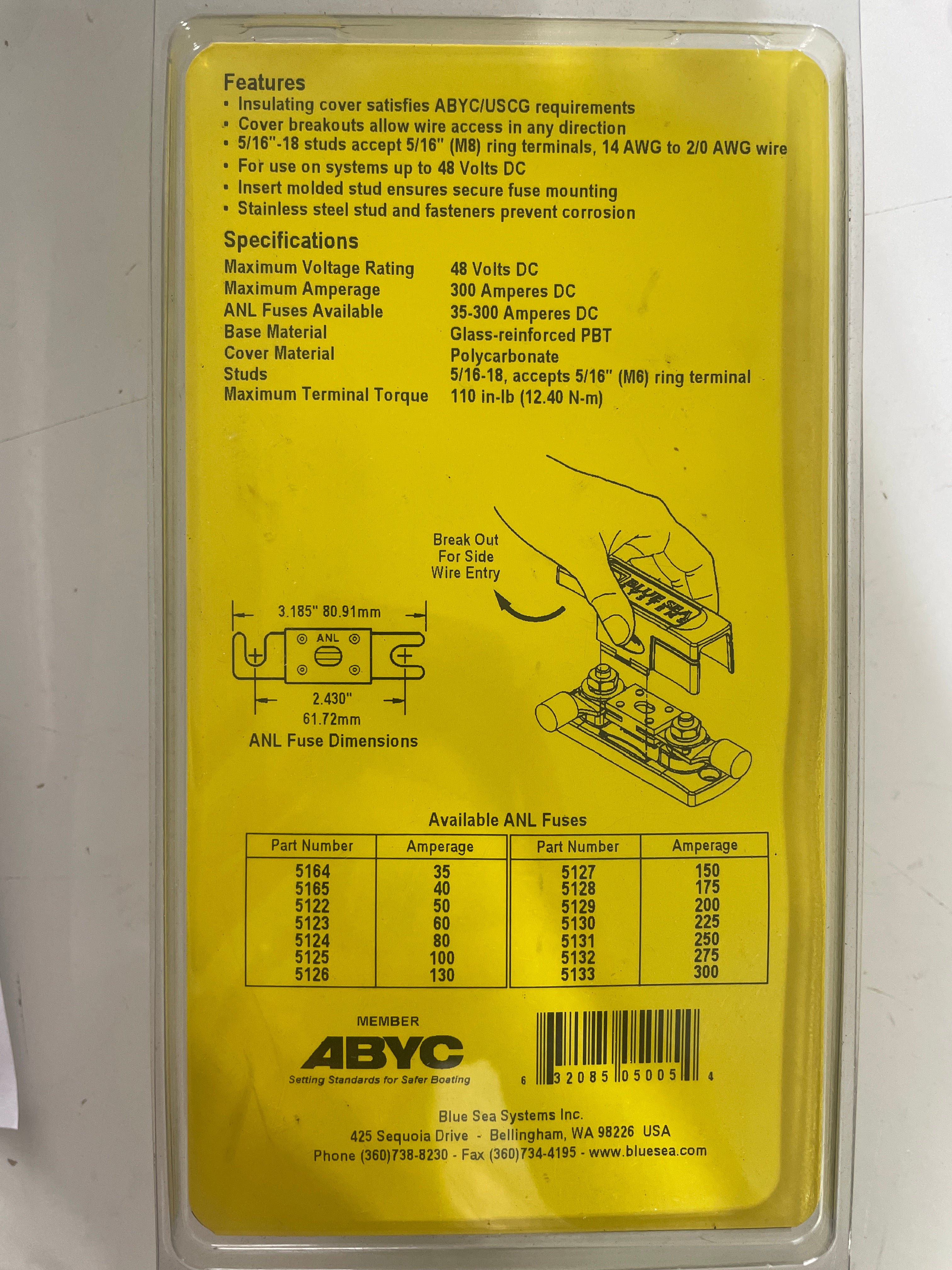 Blue Sea System ANL Fuse Block With Cover - 35 to 300 AMP DC. Brand new.