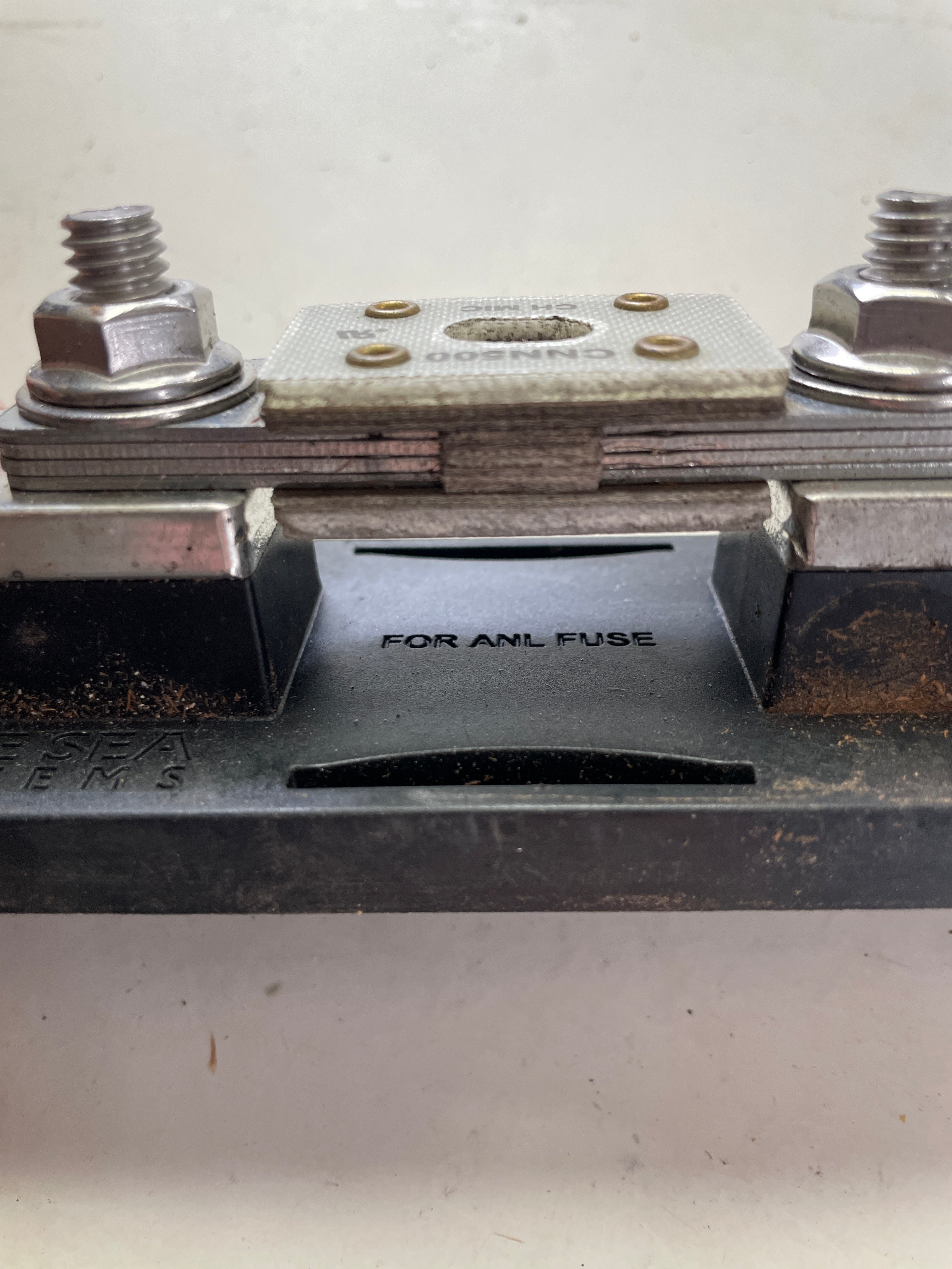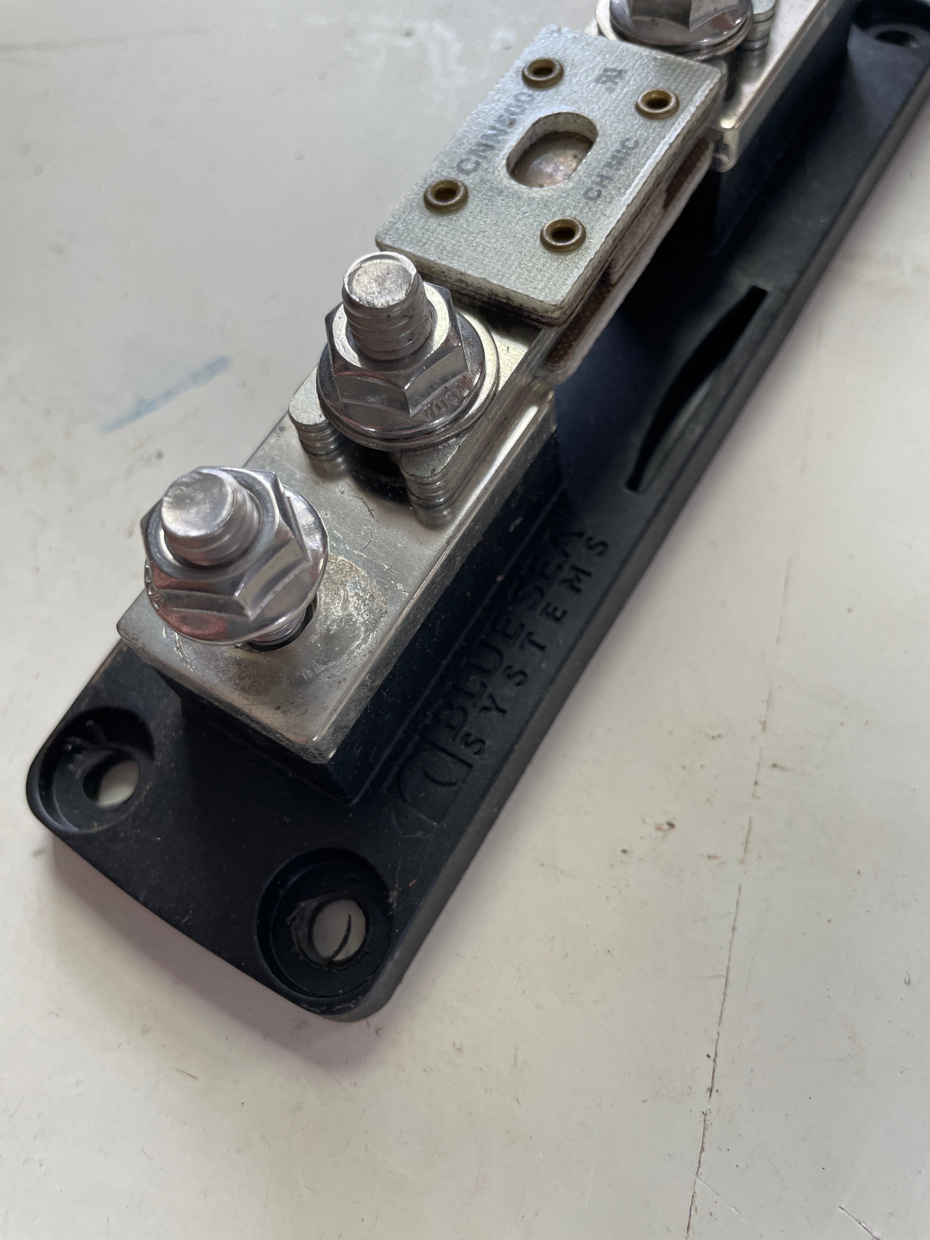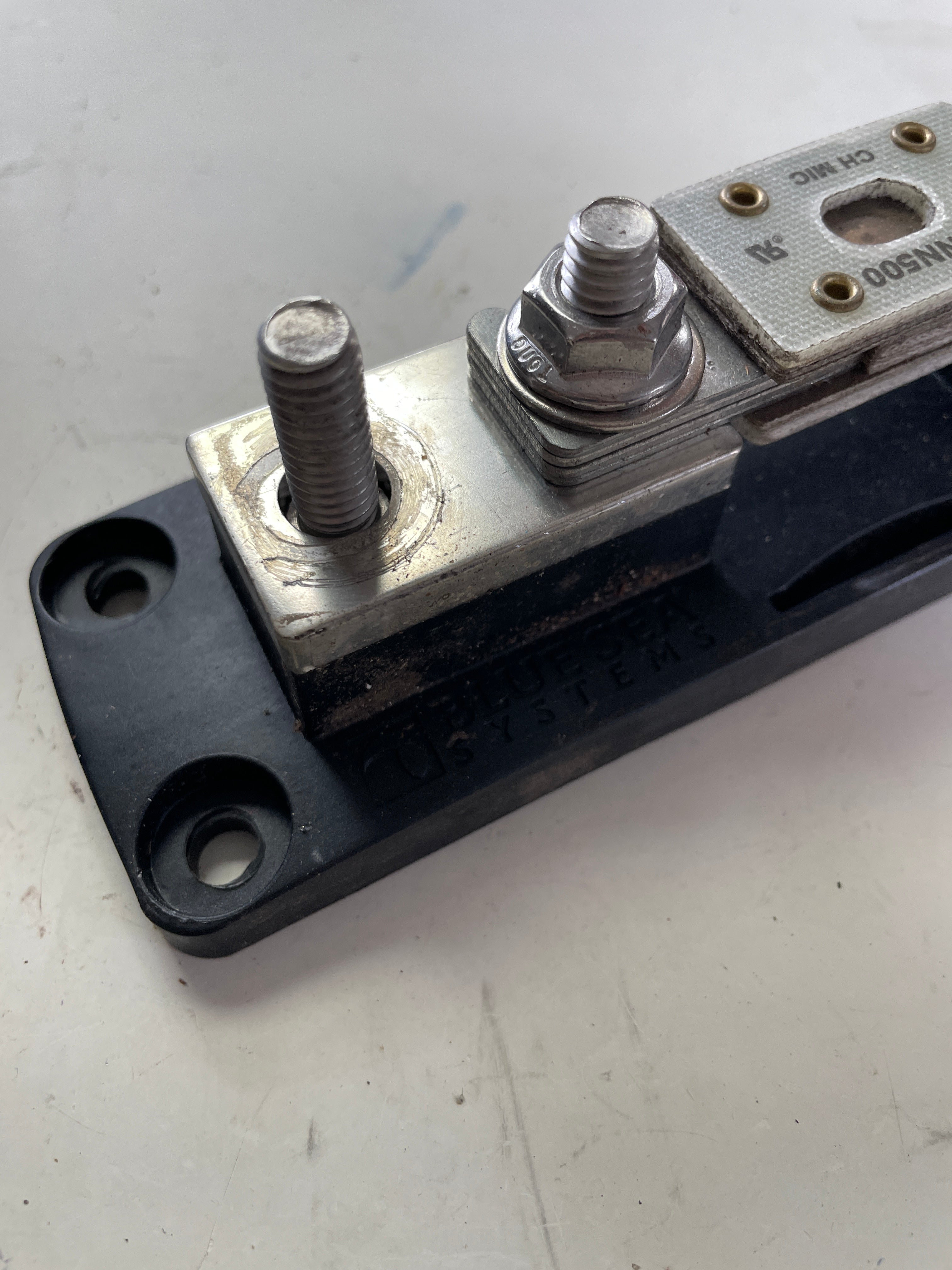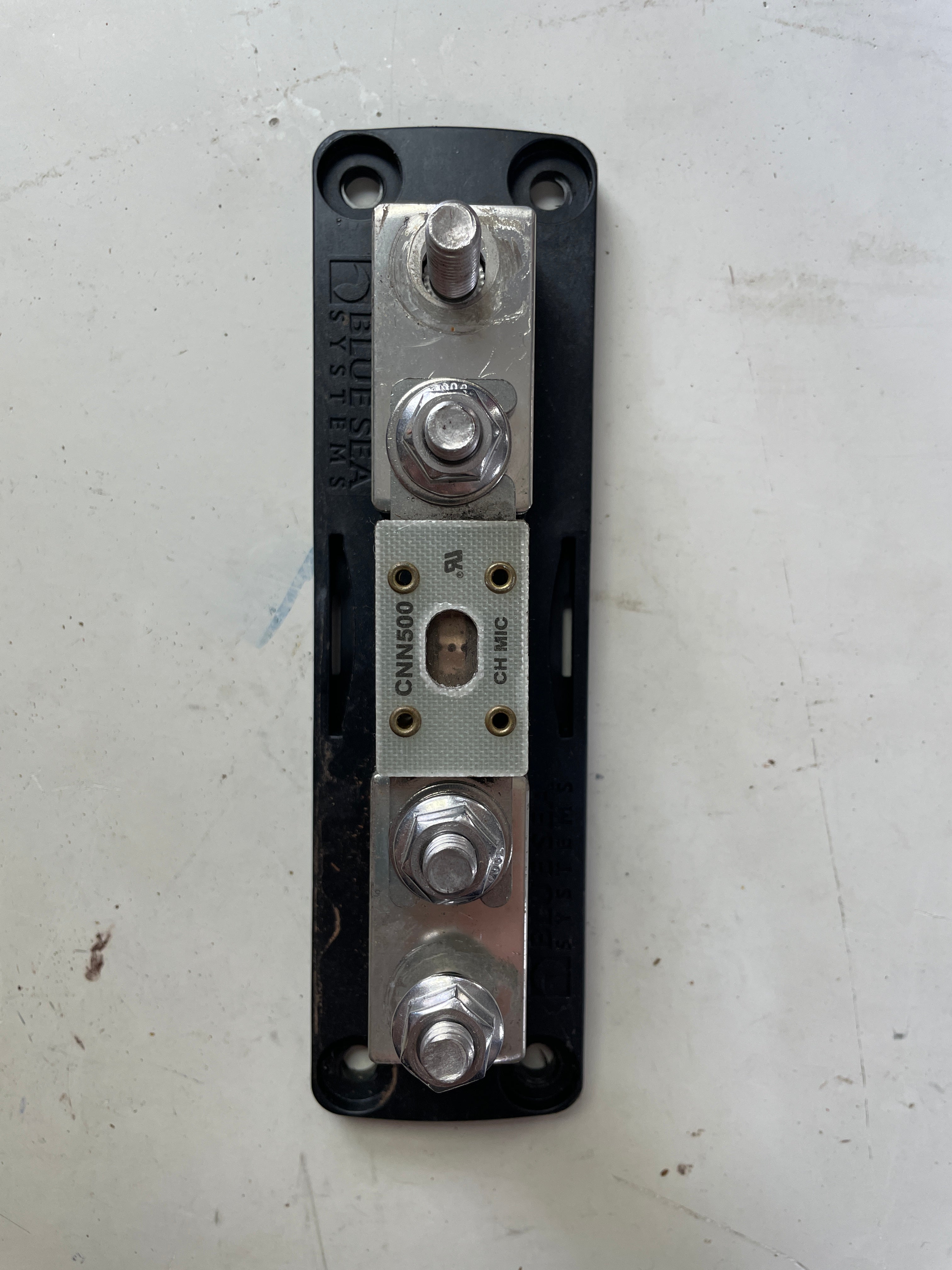 Great condition. Blue sea systems 4 terminal buss. Measures 7” long x 2” wide x 2” tall. Has CNN500 on it.