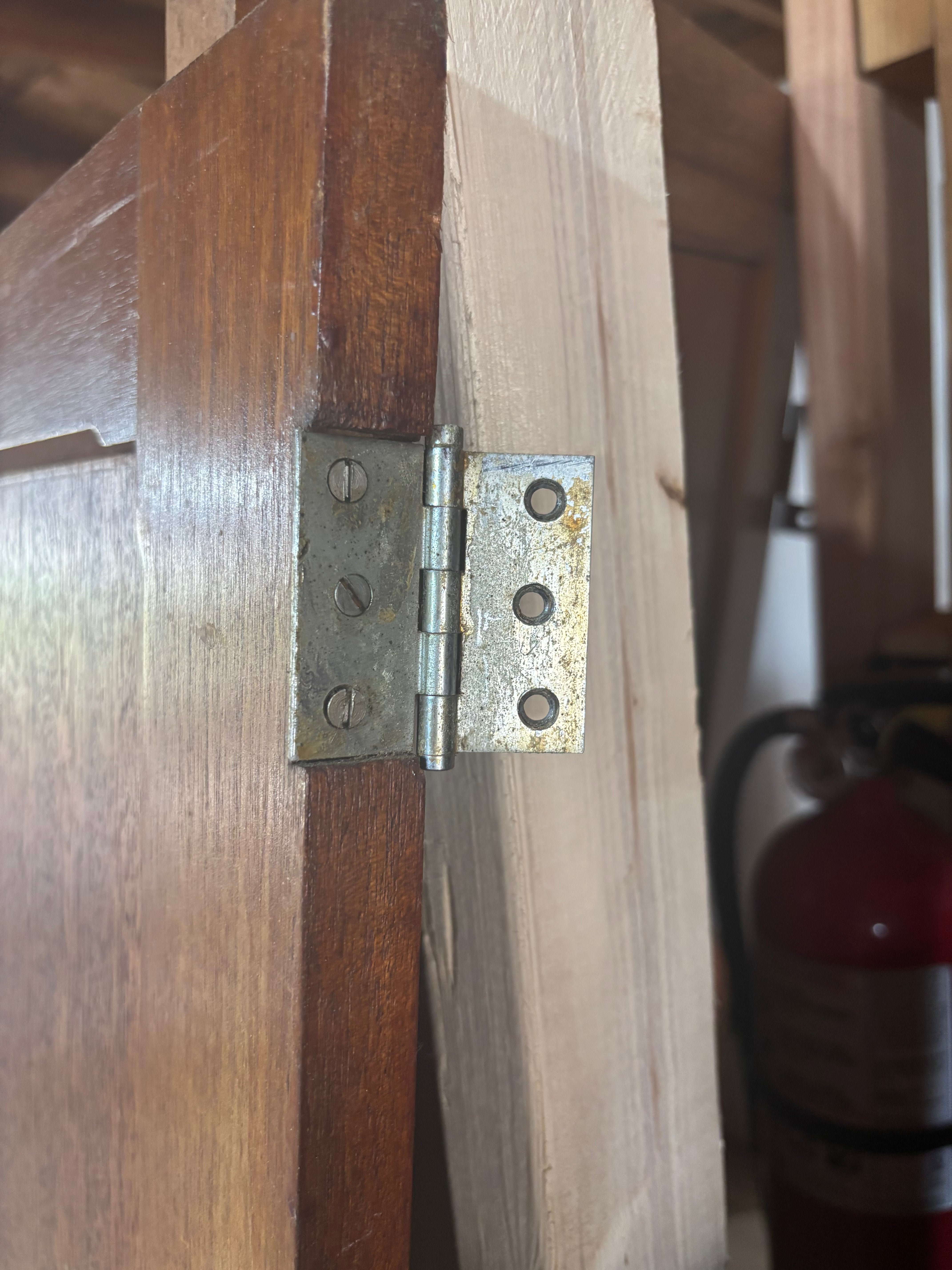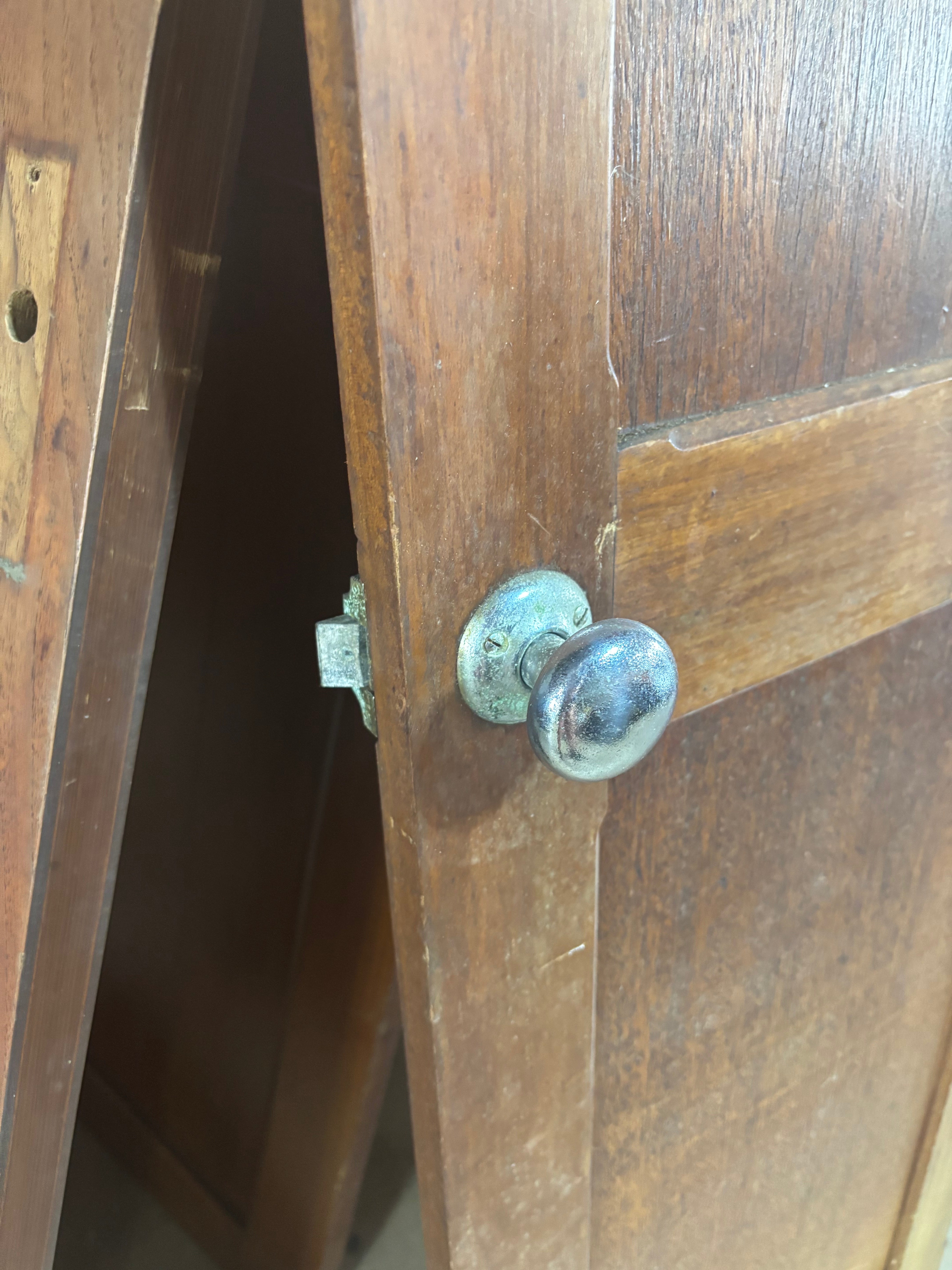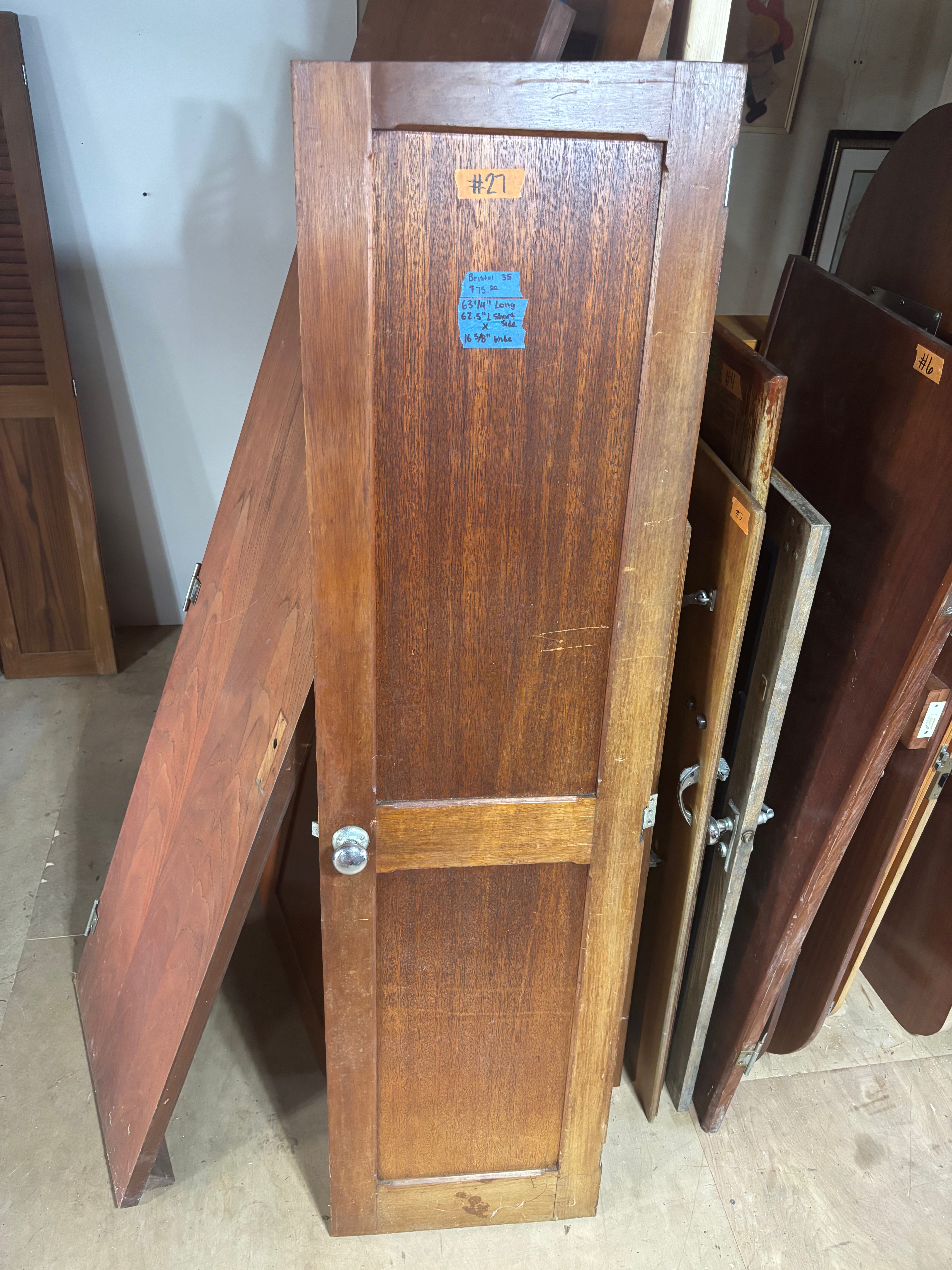 Bristol 35 Interior Door - 63 1/4" Longer Side x 62 1/2" Short Side x 16 5/8" Wide x 7/8" Thick.Has hardware but is tarnished.