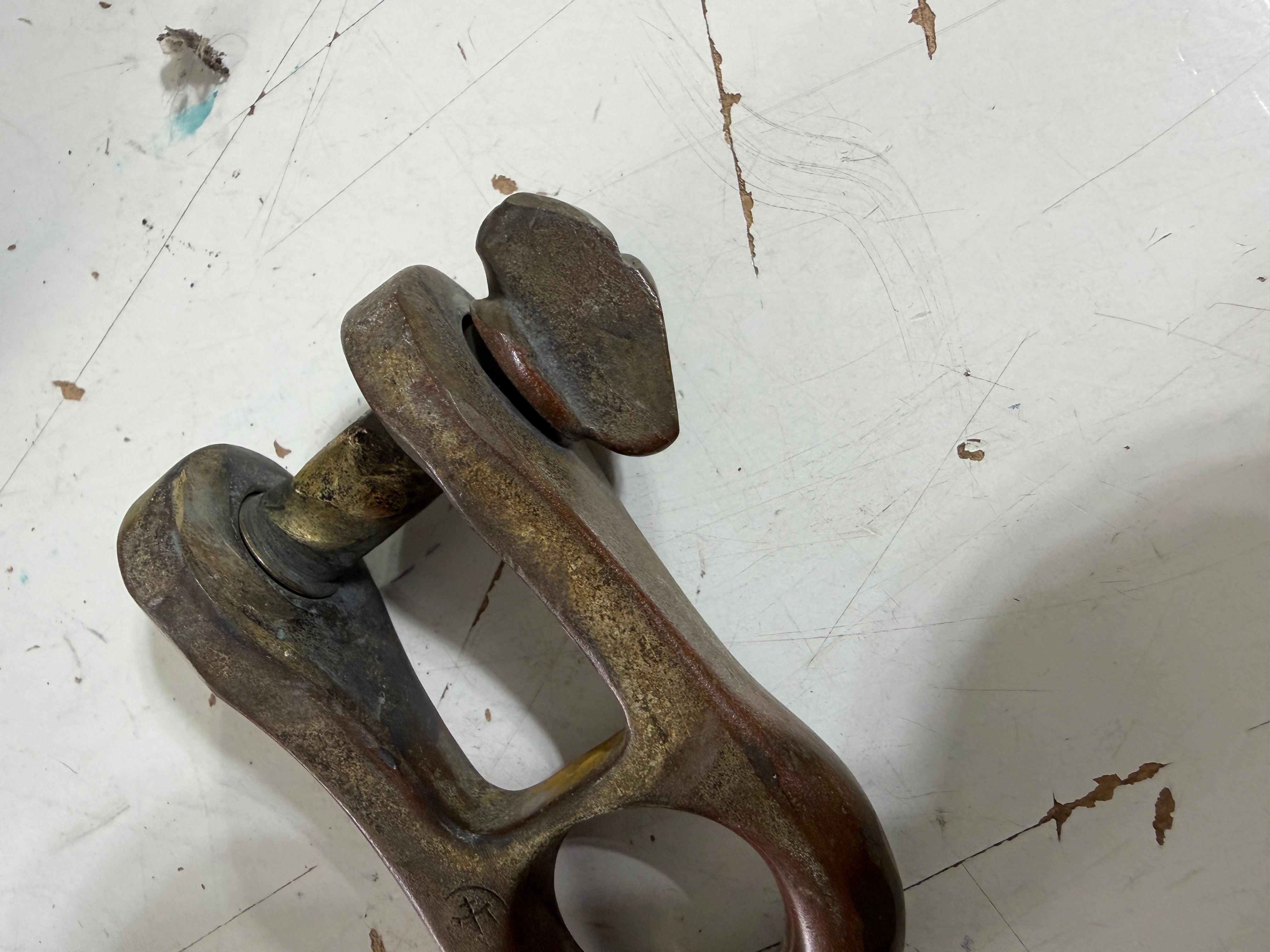 Has some signs of wear and use but still has plenty of life left! Width is 3/4" for both the eye and the bottom width. The pin is 3/8" diameter.