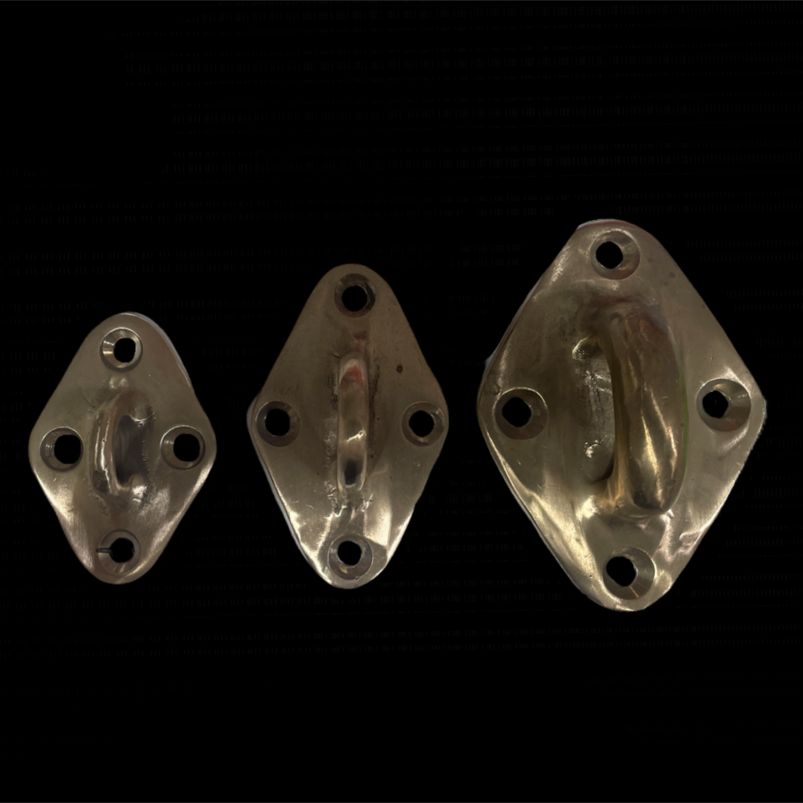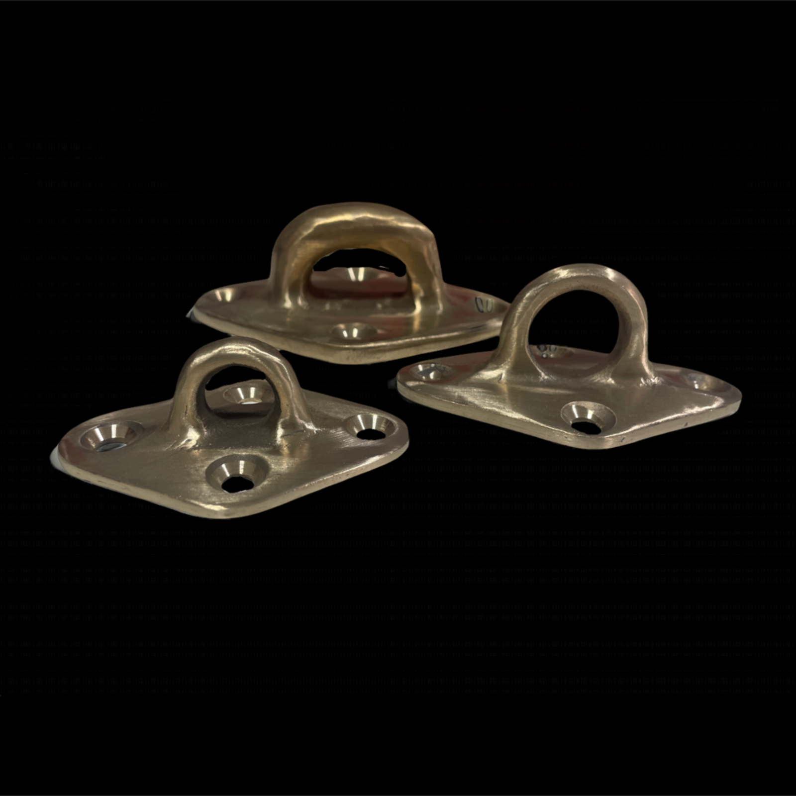 Bristol bronze pad eyes. Available in 3 different sizes. Shown below with the BB codes and measurements.