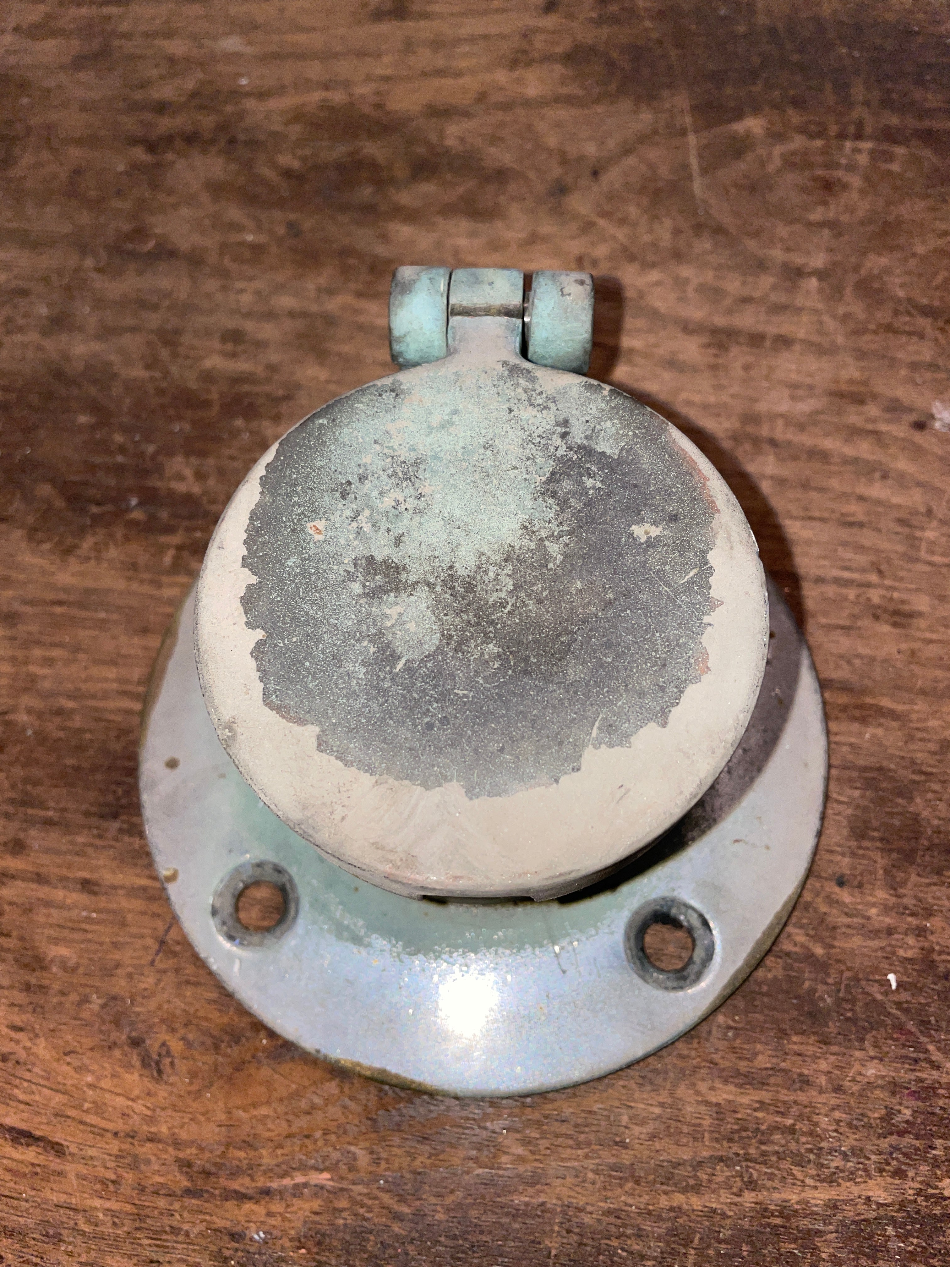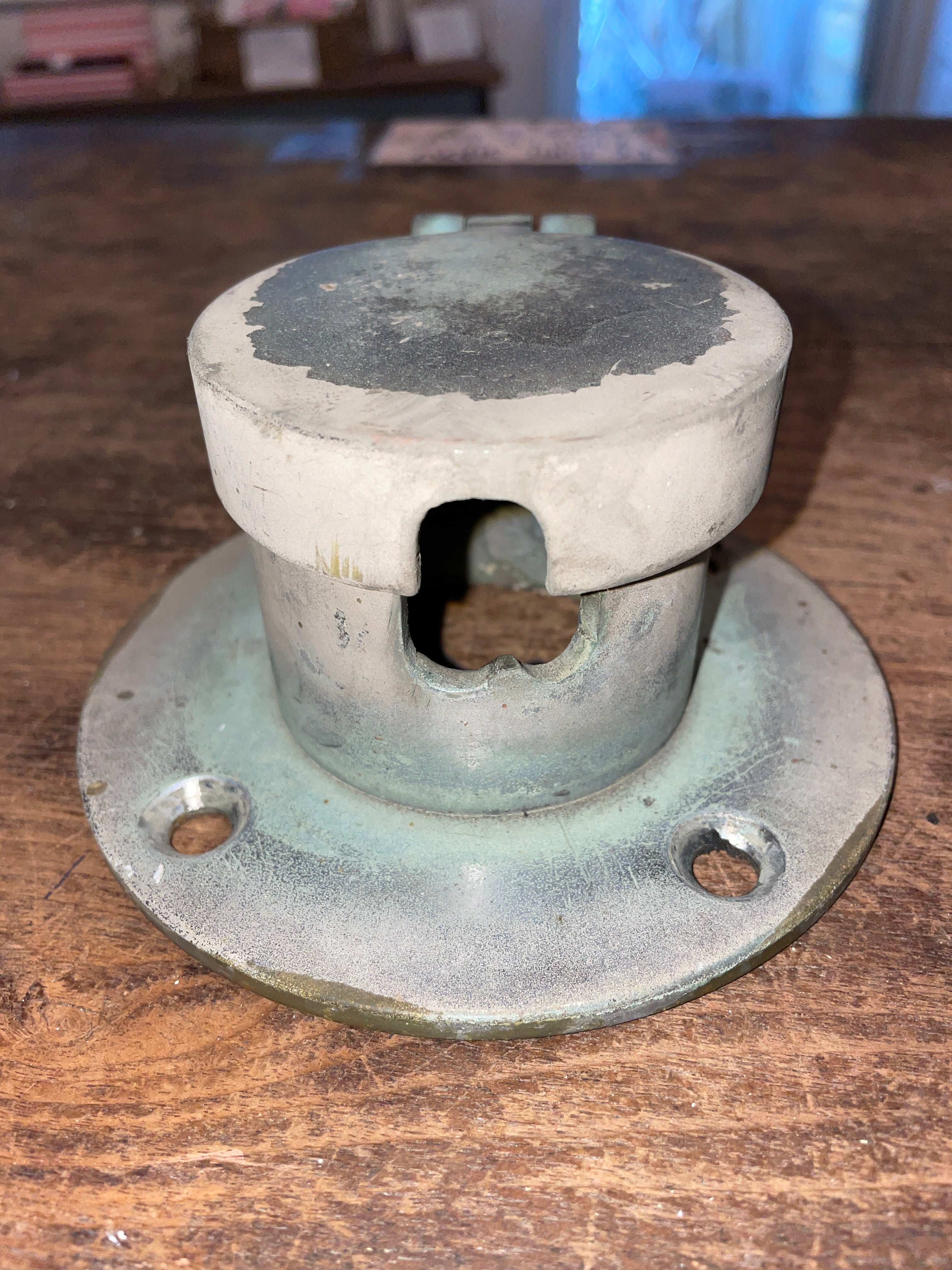 Nice Condition, Solid Bronze Round Anchor Hawse. The Base Diameter Is 4 3/4”. ID Is 2”. Stands 2 1/4” Tall. Hinge Opens And Closes Smoothly.