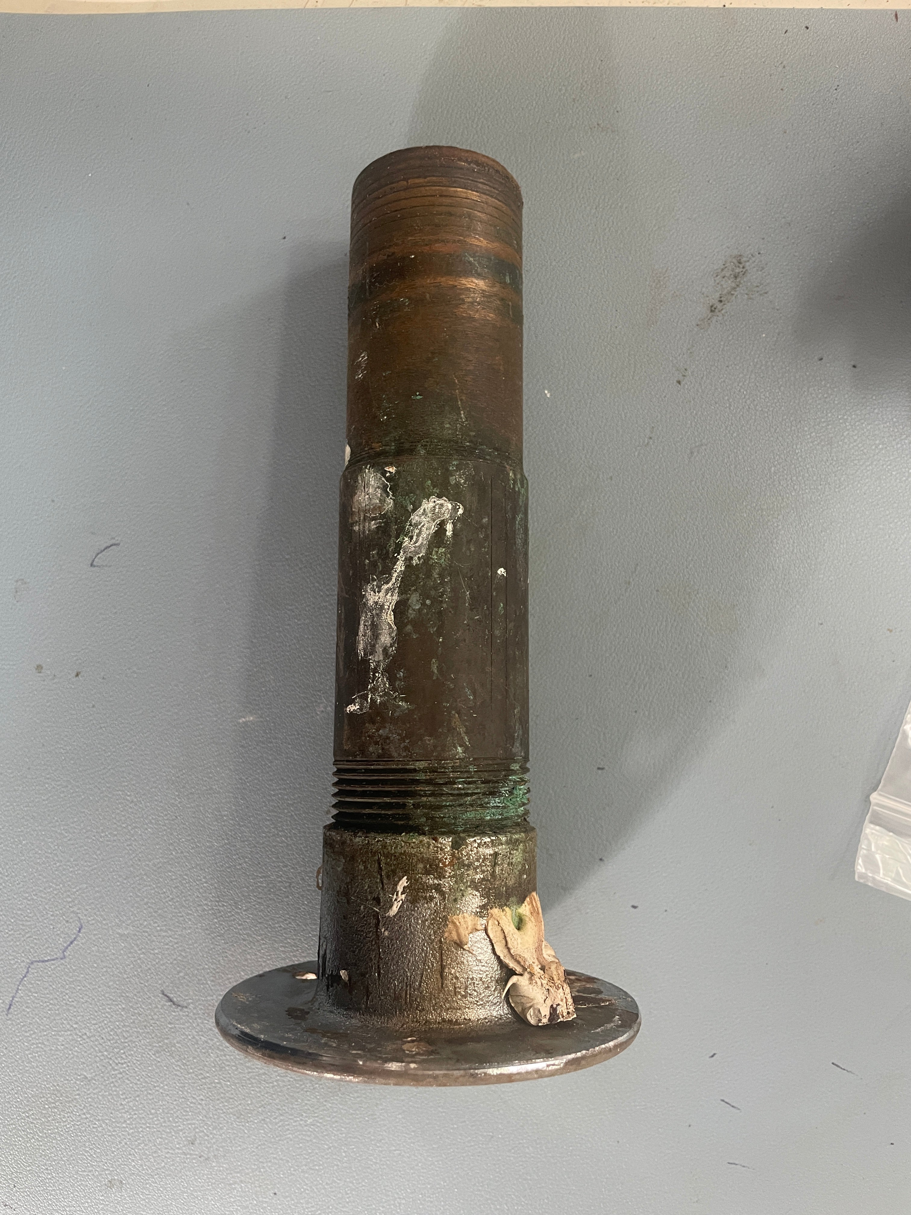 This bronze waste deck plug is in great condition. The top diameter is 3 3/8". The key is 1 1/8" apart x 1/4" diameter. Sits 7" deep.
