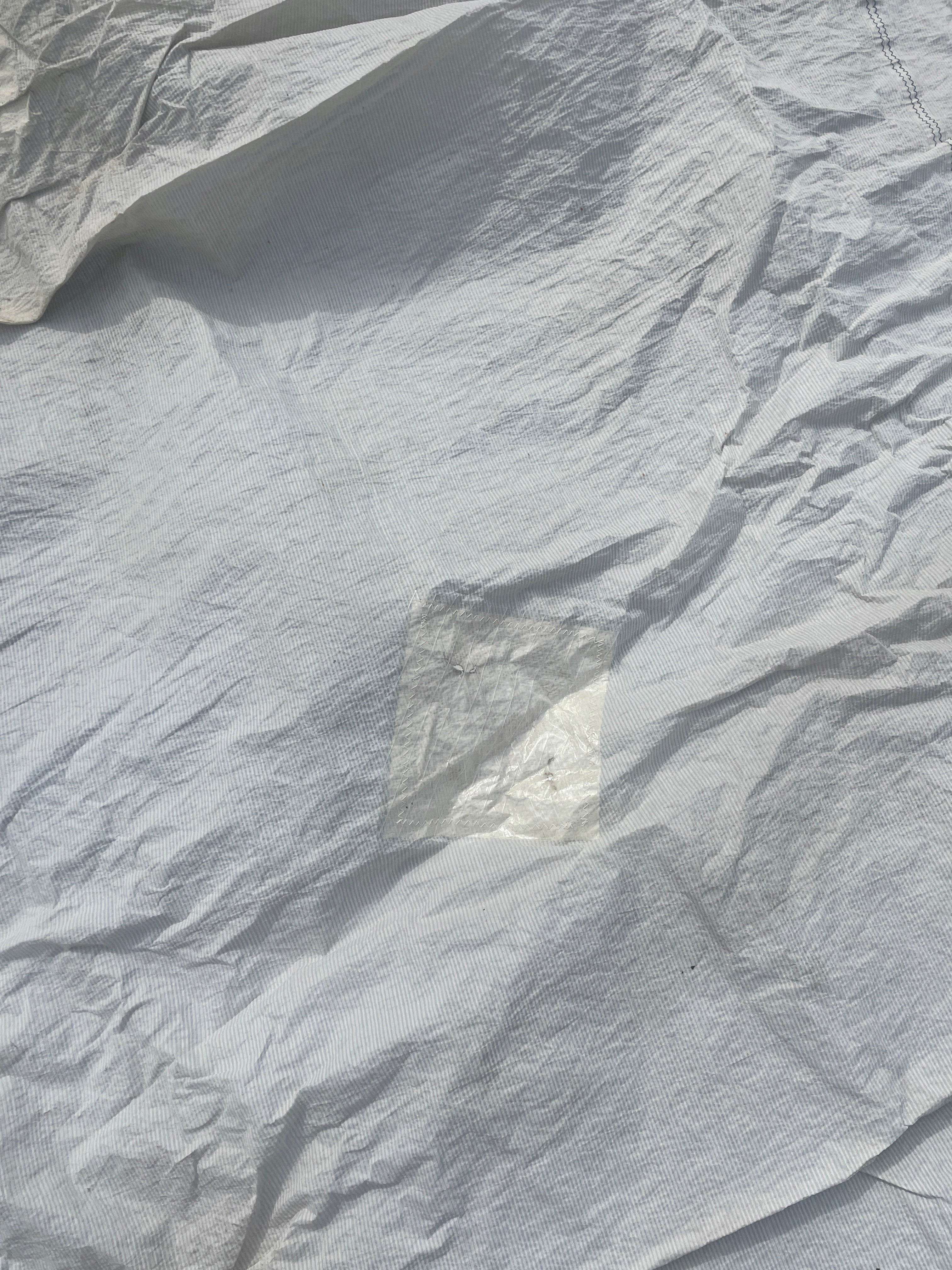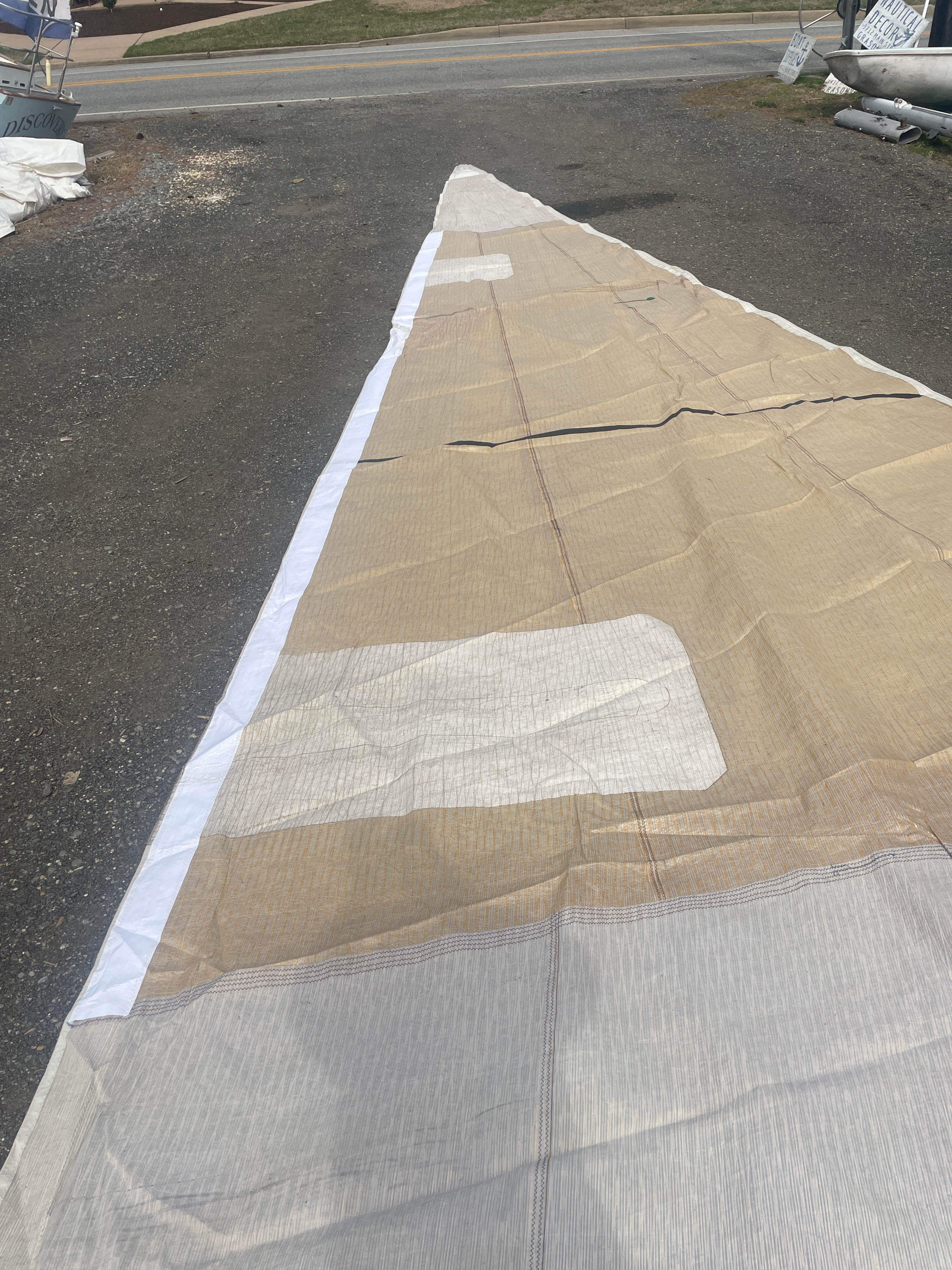 This C&C 44 customs sailboat sail is in well loved condition. It does have a fair amount of patch repairs to it. They do look professionally done but the sail has been well used and loved! This sail measures 53’ on one side. 55’ in length on the other side and the foot is 25’. We are selling this sail AS IS because of its condition. It is huge and would make a great sunshade OR a template for a future sail! There is a 3/16” slide. Does not have a bag. This sail is a mix of a few materials. Unknown if this is because of repair work or the type of sail.