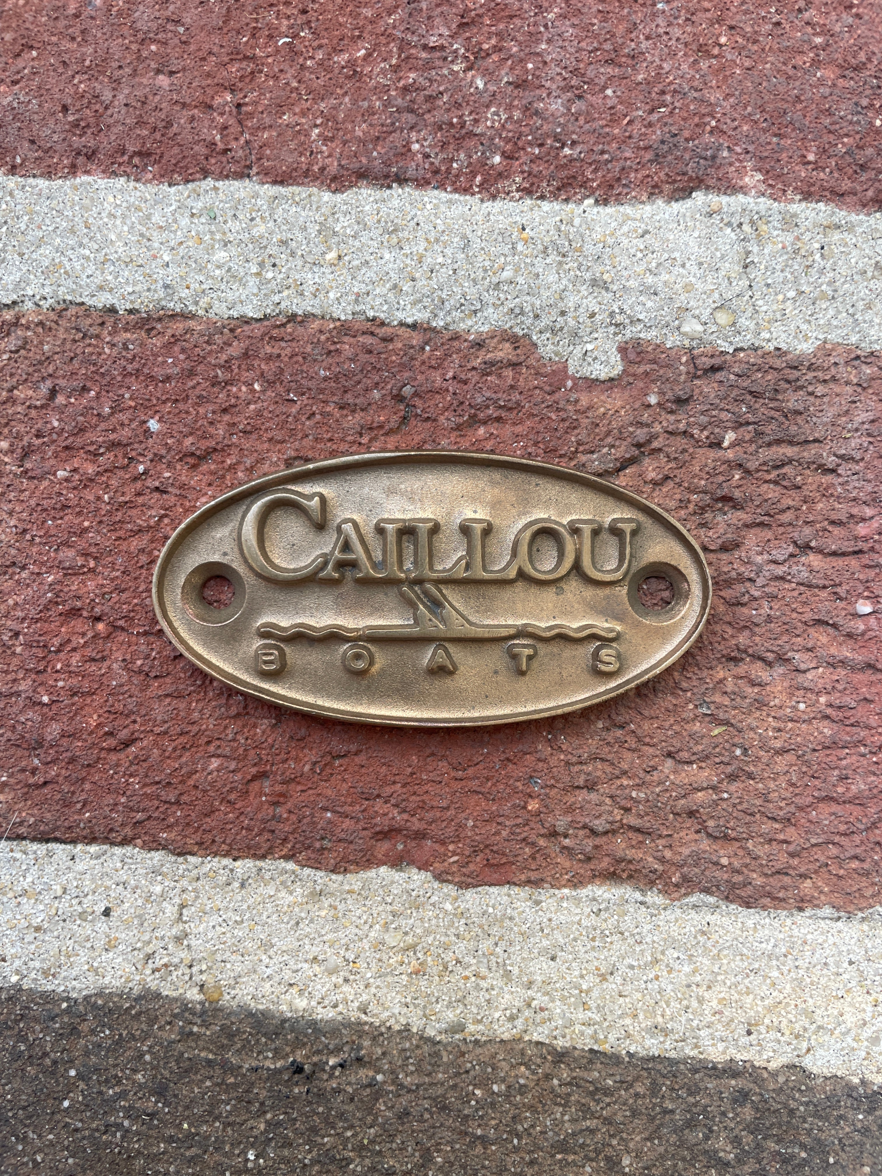 Caillou boats plate. Bronze. Made in the USA. 2 1/2" x 1 1/4".
