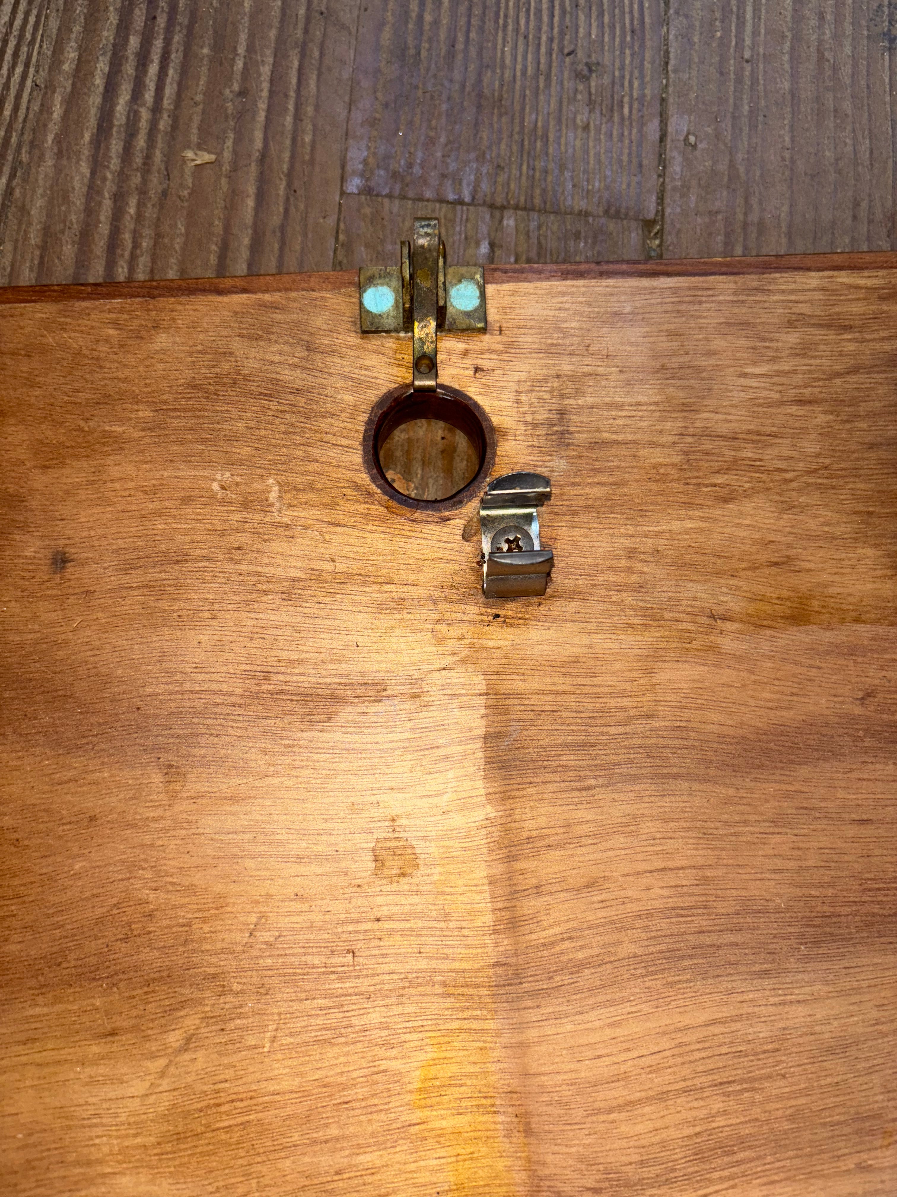 This interior cabinet door was removed off a camper Nicholson boat. The door is overall good condition, usual scratching. Hinges and latch in good condition. The door measures 19 3/4" long x 12" wide.