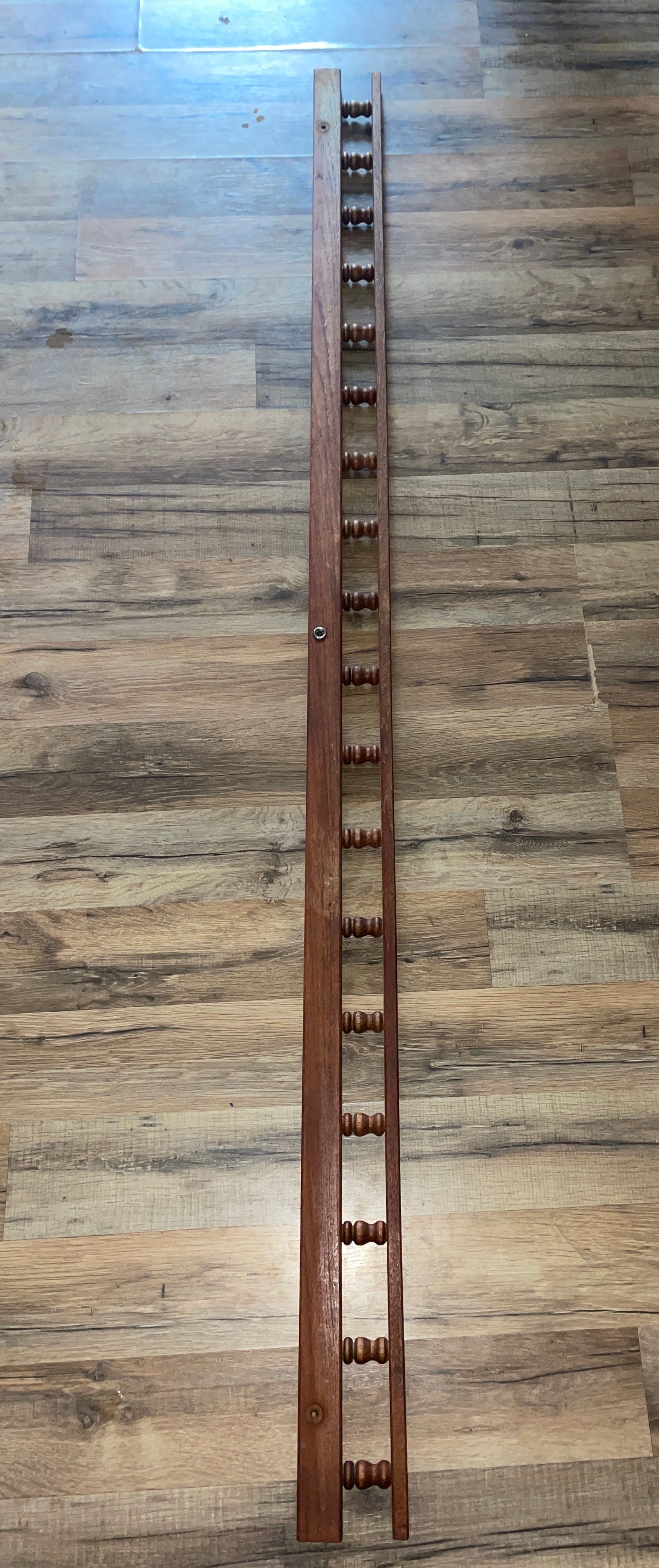 This piece of teak pin rail is in great condition. Does have some surface scratching but would clean up well. It measures 63 1/2” total length.