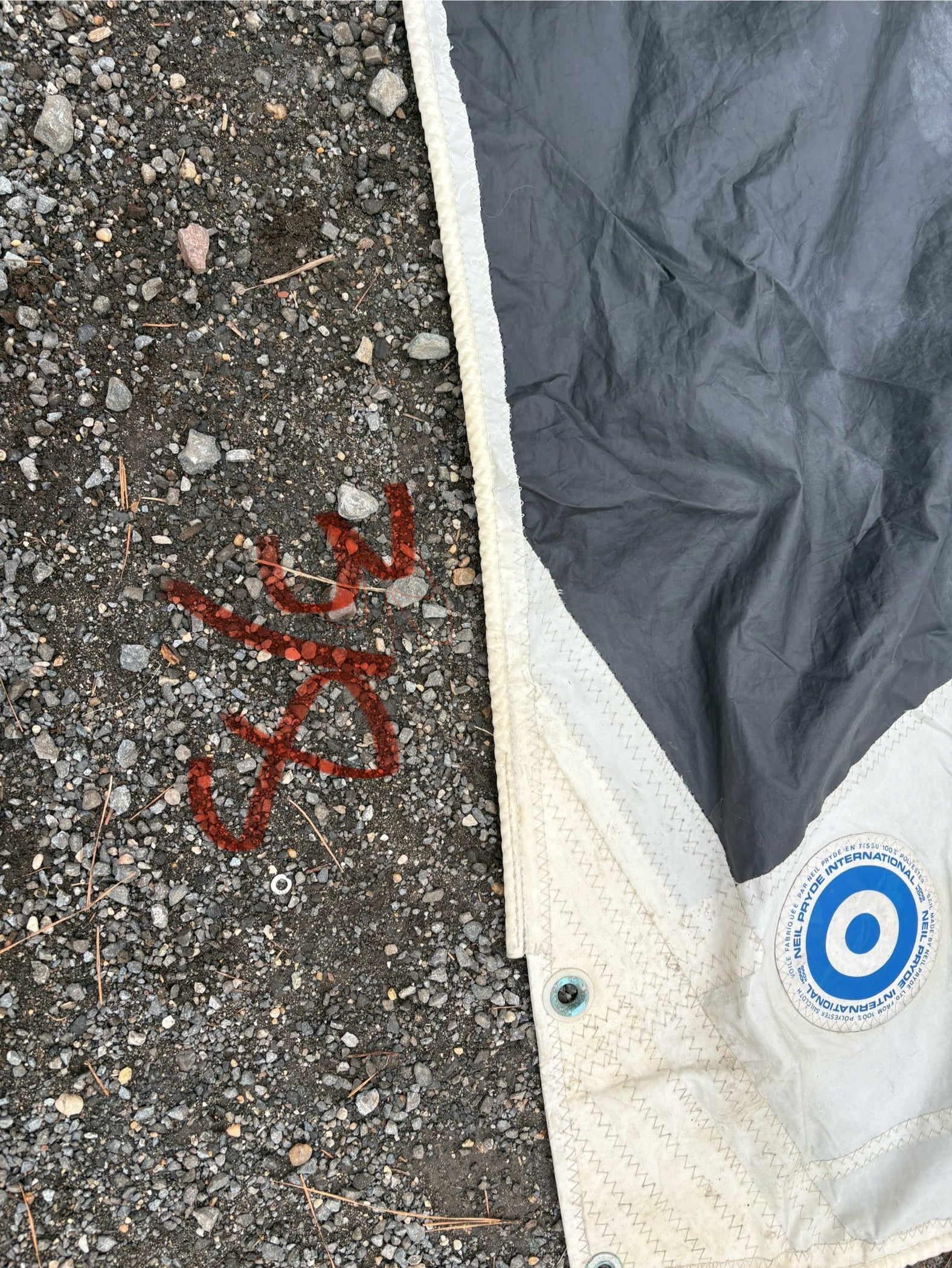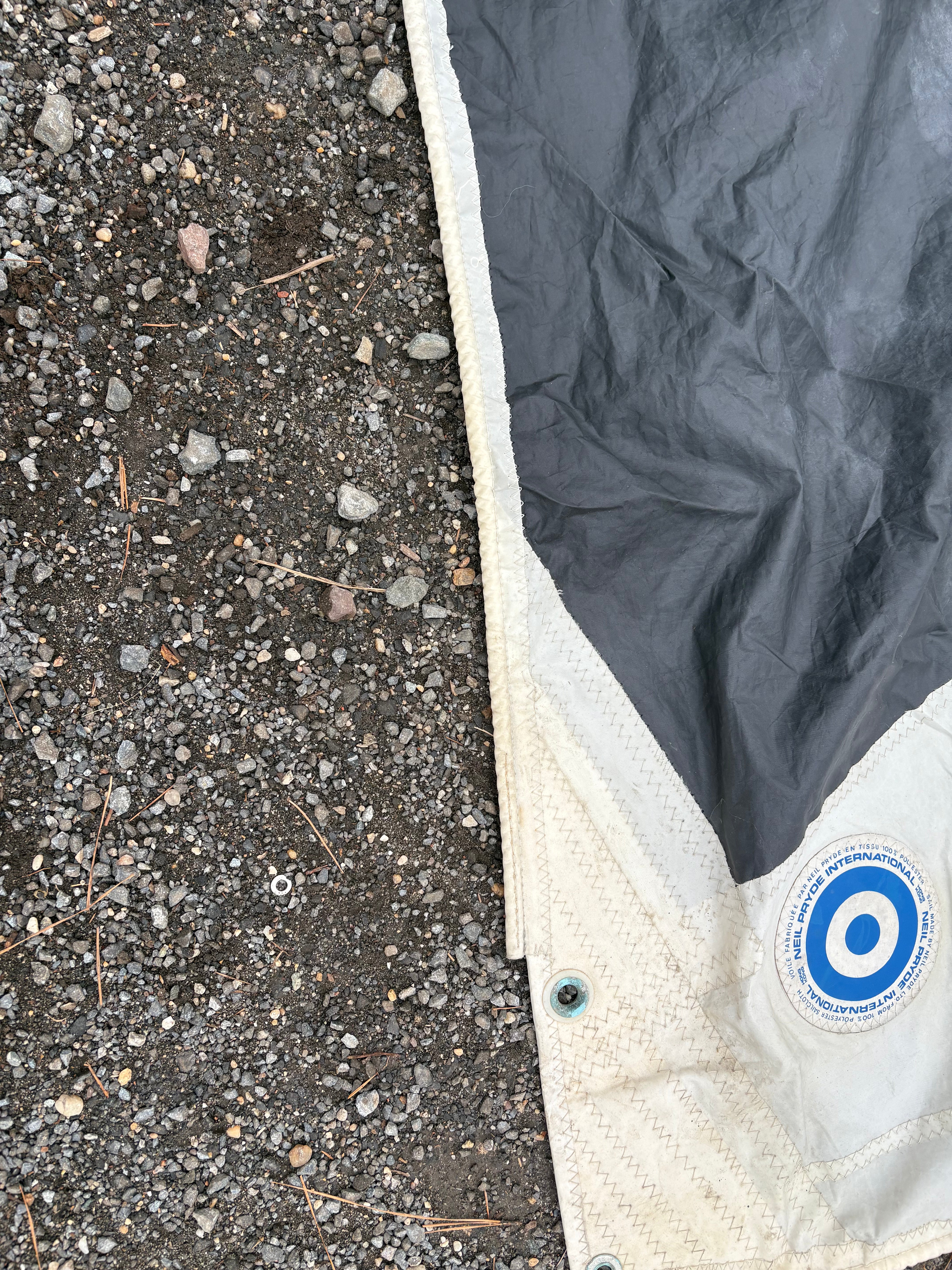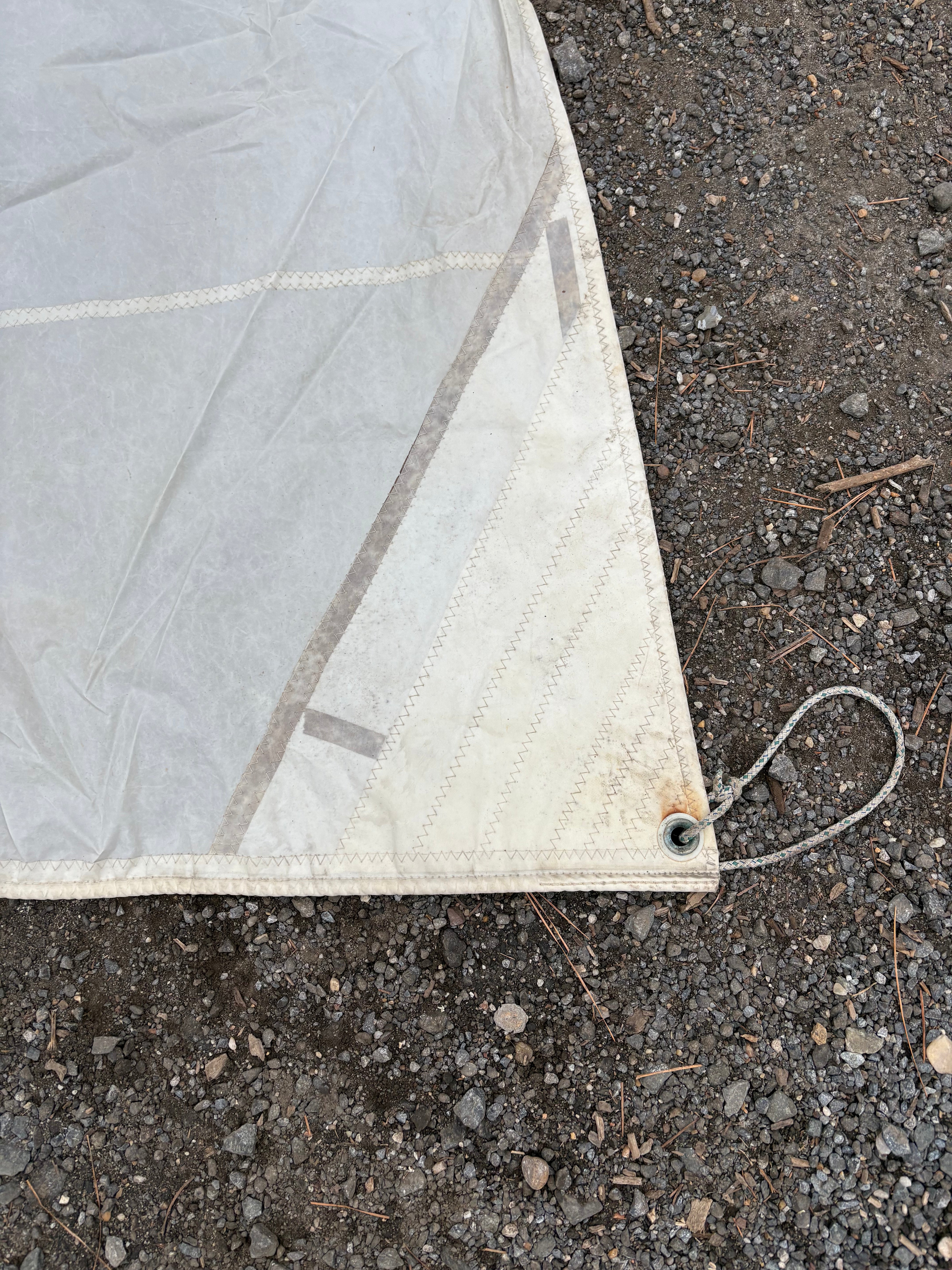 This sail is in great condition. Removed off a Catalina 34 sailboat. The sail I believe is a main sail but could be wrong. The slide is 3/8" diameter. The side with the slide is the luff measuring 19'8". The leech is 21'6" and the foot is 9'2". Comes with a bag.