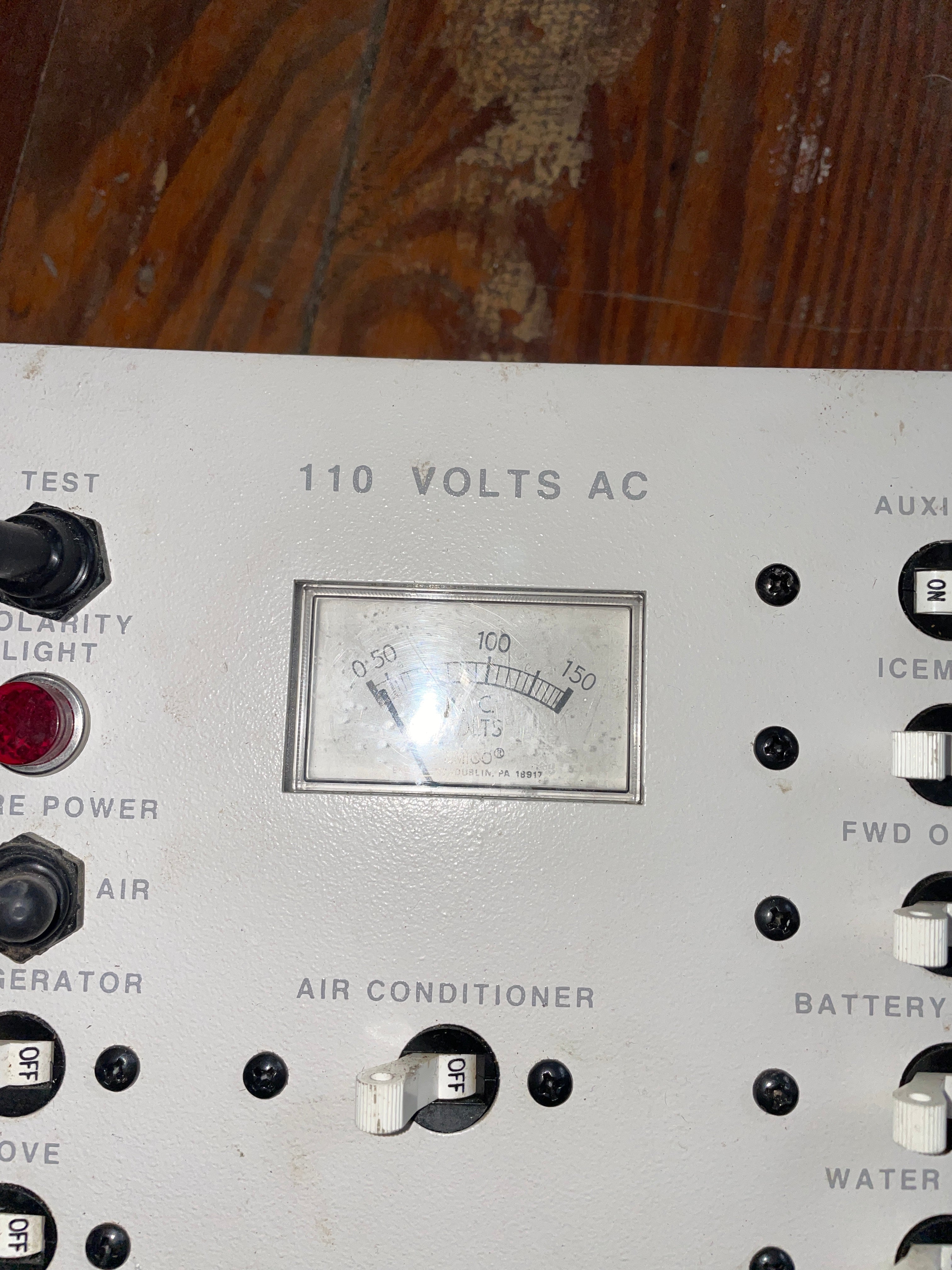 This Chris craft electrical panel is in excellent condition. It has 11 switches on the 110 volt AC with the test and main air switch and volts meter. The 12 volt DC has 6 switches. This panel is in excellent condition and works as should. Very clean. 10” long x 9” wide x 3” deep.