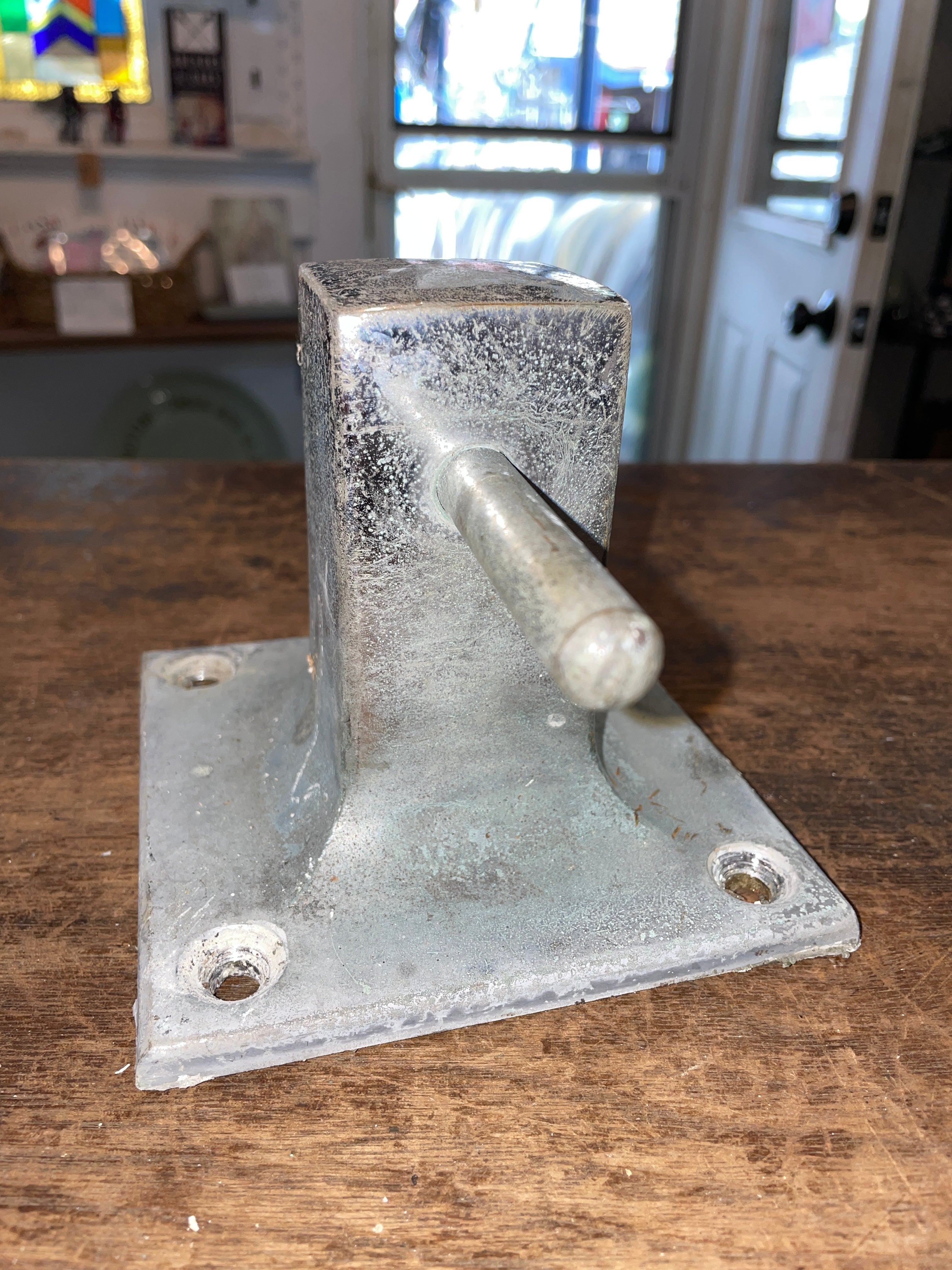 This chromed bronze bollard cleat is in good condition. The base is 5” x 5”. The cleat is 7” long. 4 bolt installation. Stands 4 1/2” tall.
