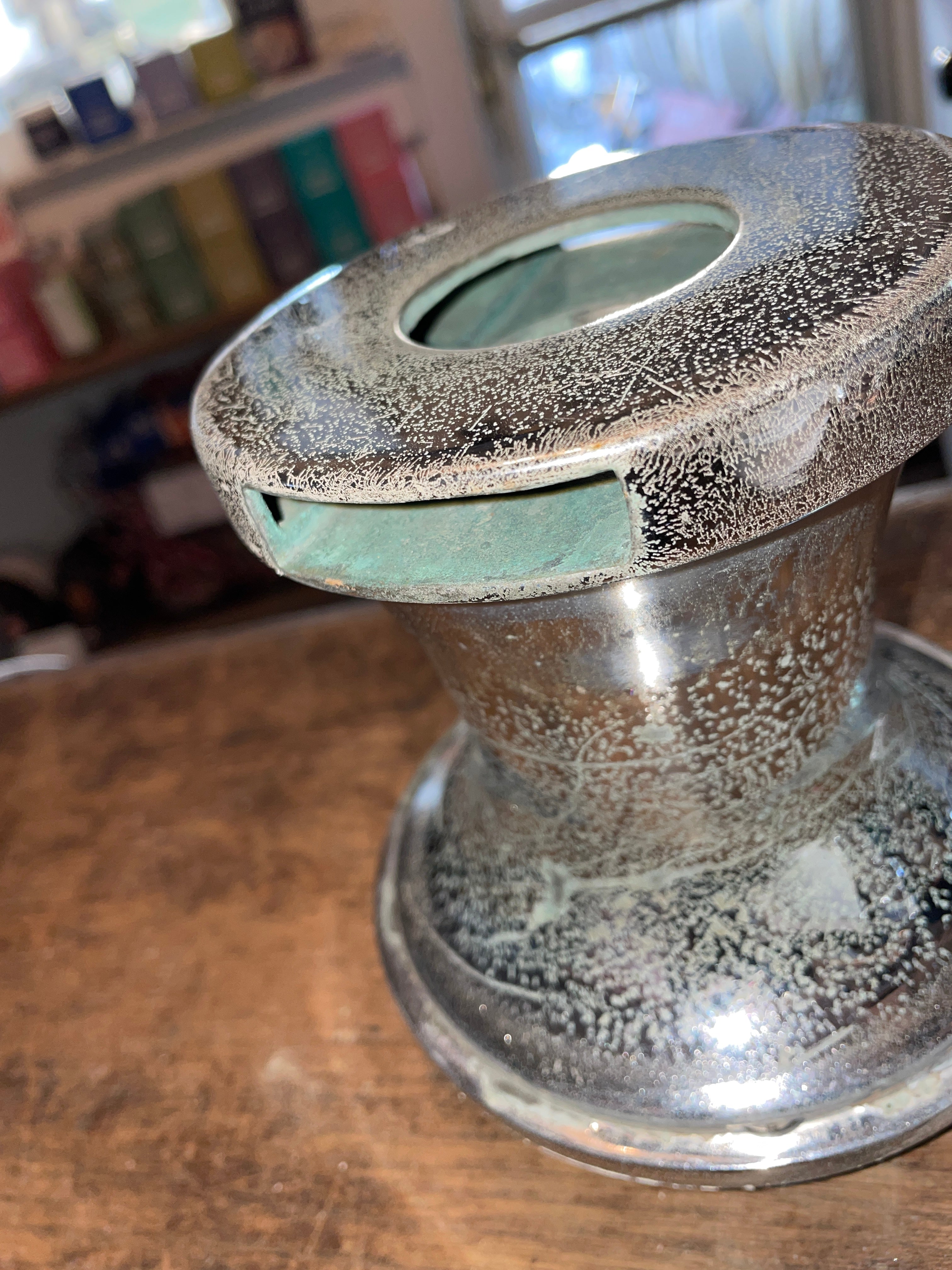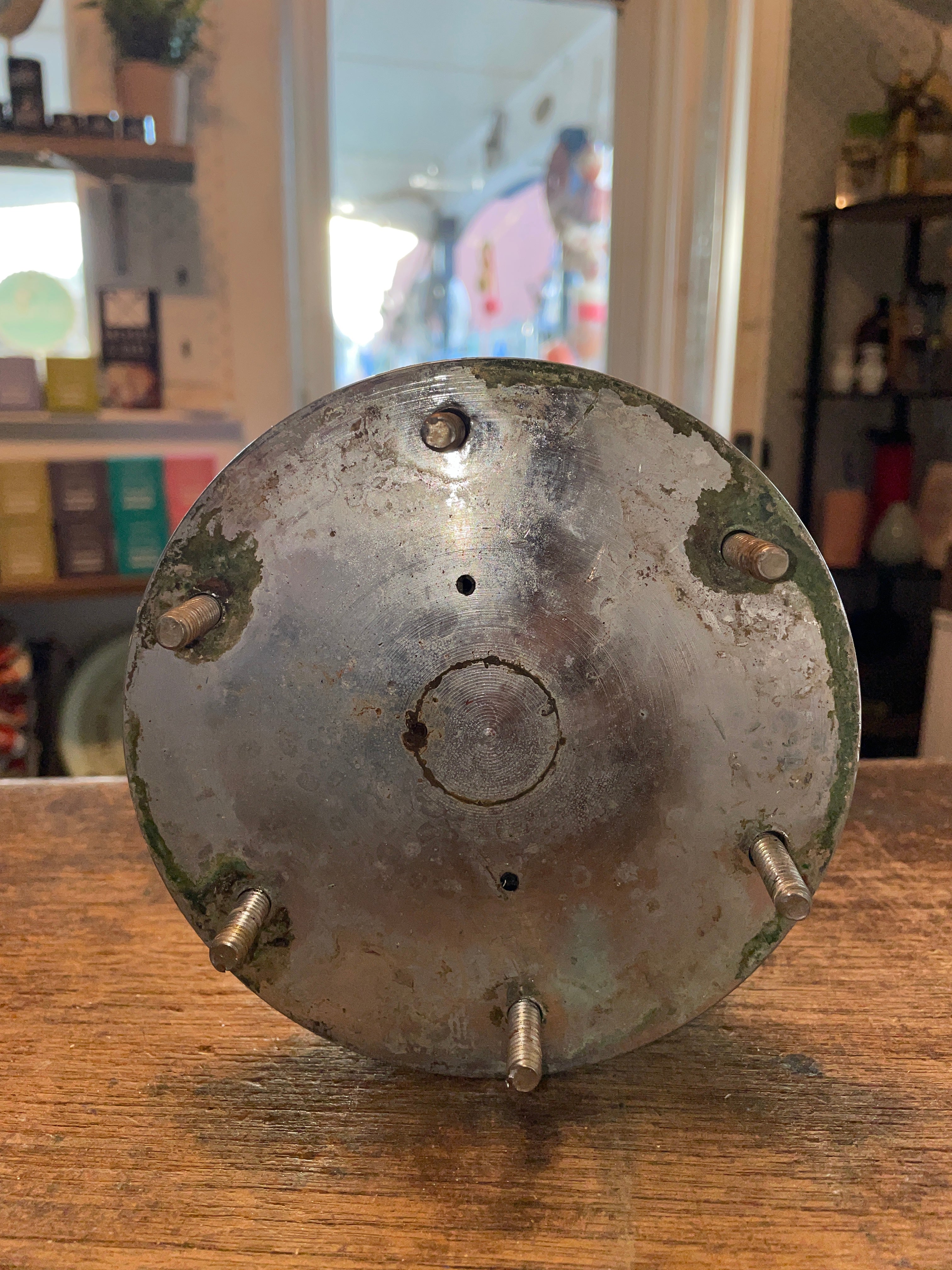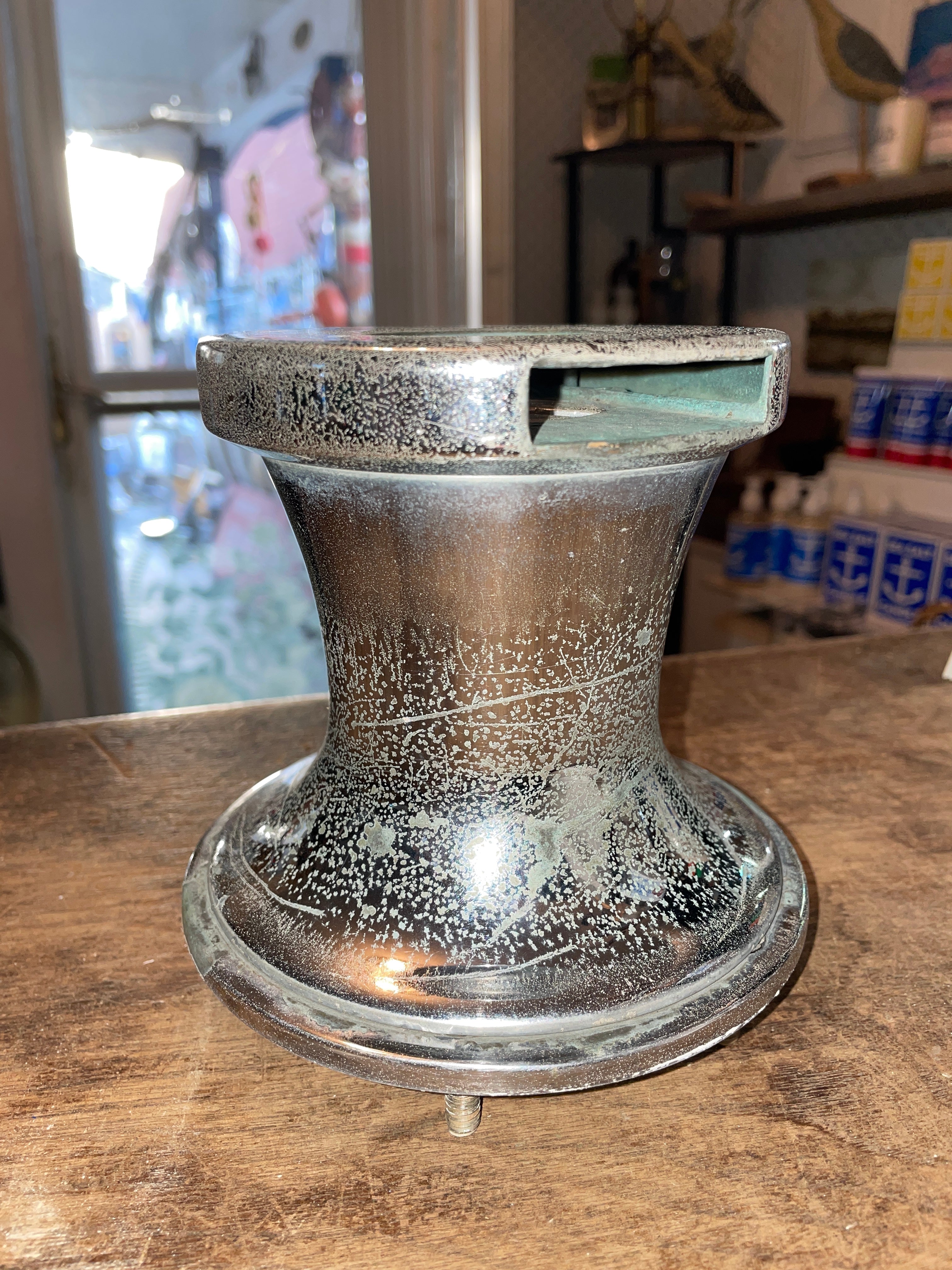 This chromed bronze single speed winch is in great working condition. The chroming has started to come off. The winch is 4 5/8” tall. The base is 5 1/4” diameter with 6 bolt install. The bolt pattern is 2 1/4” apart. Fits a 1 3/4” winch handle. Will need new bolts.