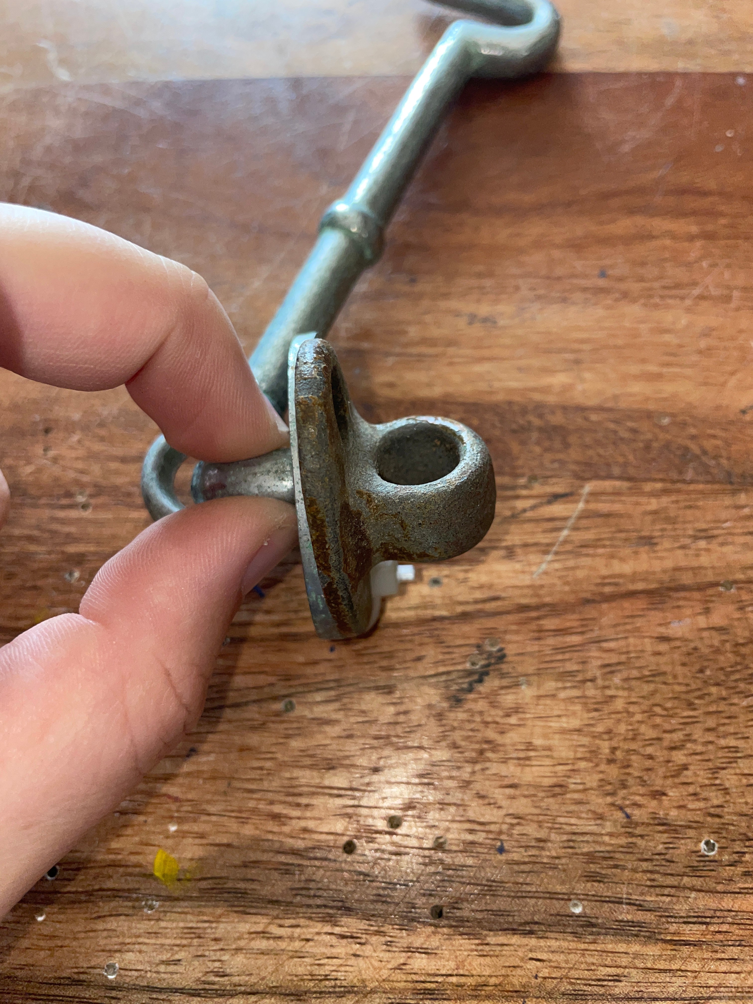 This chromed door hook is in good condition. It measures 5 1/4” total length. Comes with the mounting hardware.