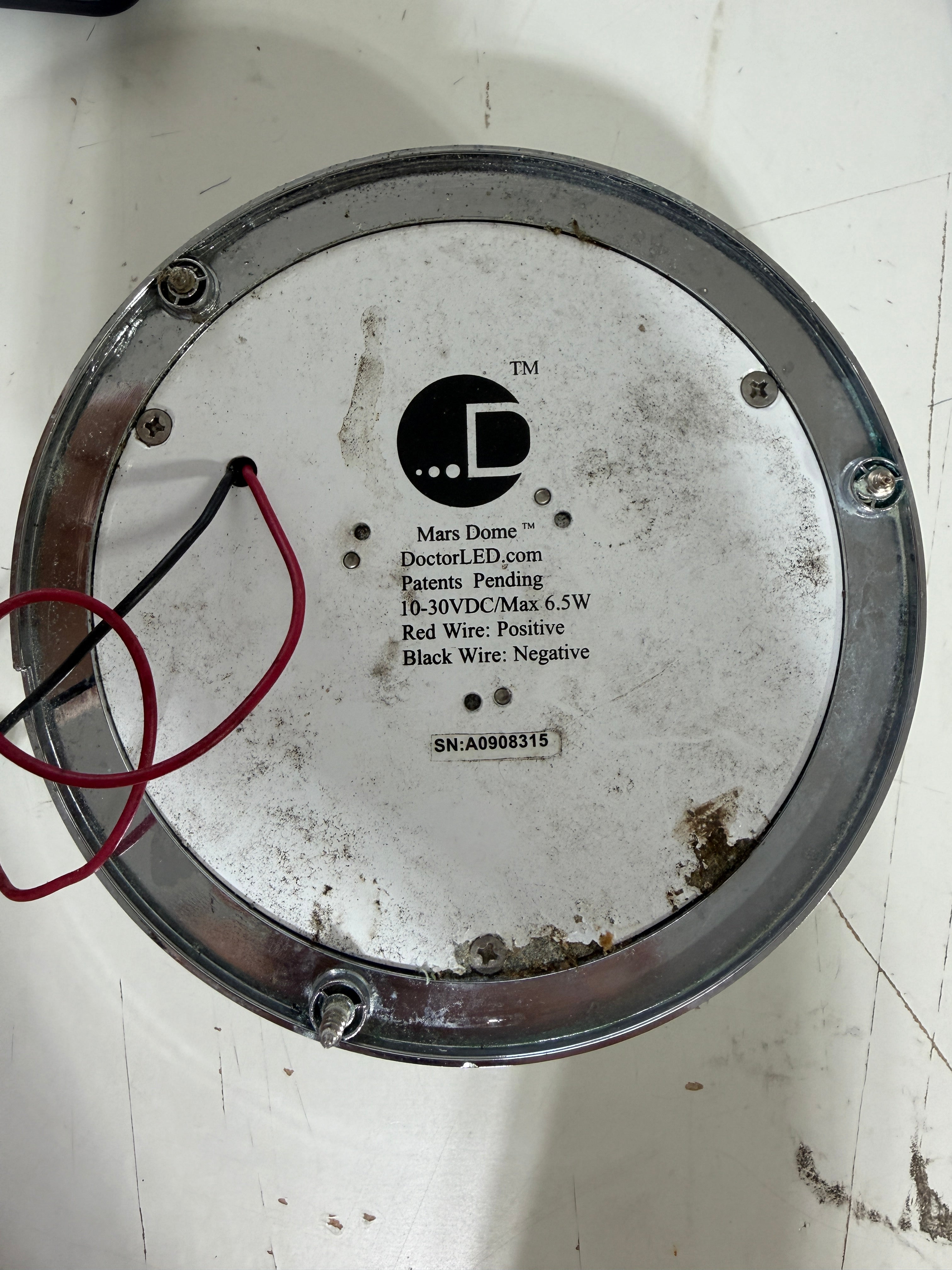 This plastic interior light is in good condition. The exterior of the light has started to pit a little. Plastic lense in perfect condition no cracks. The switch works as should. Made by Mars Dome. 10-30 VDC.