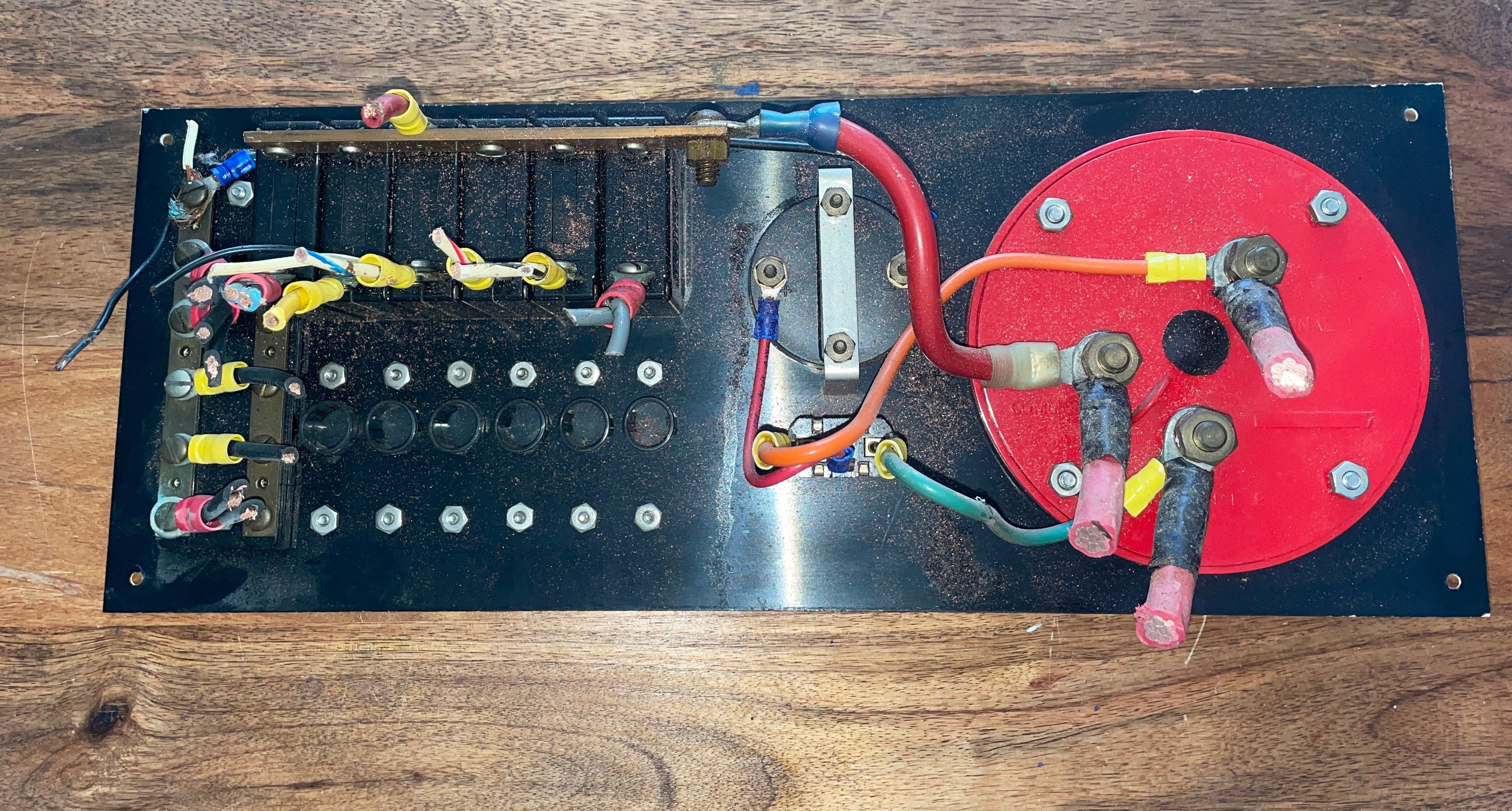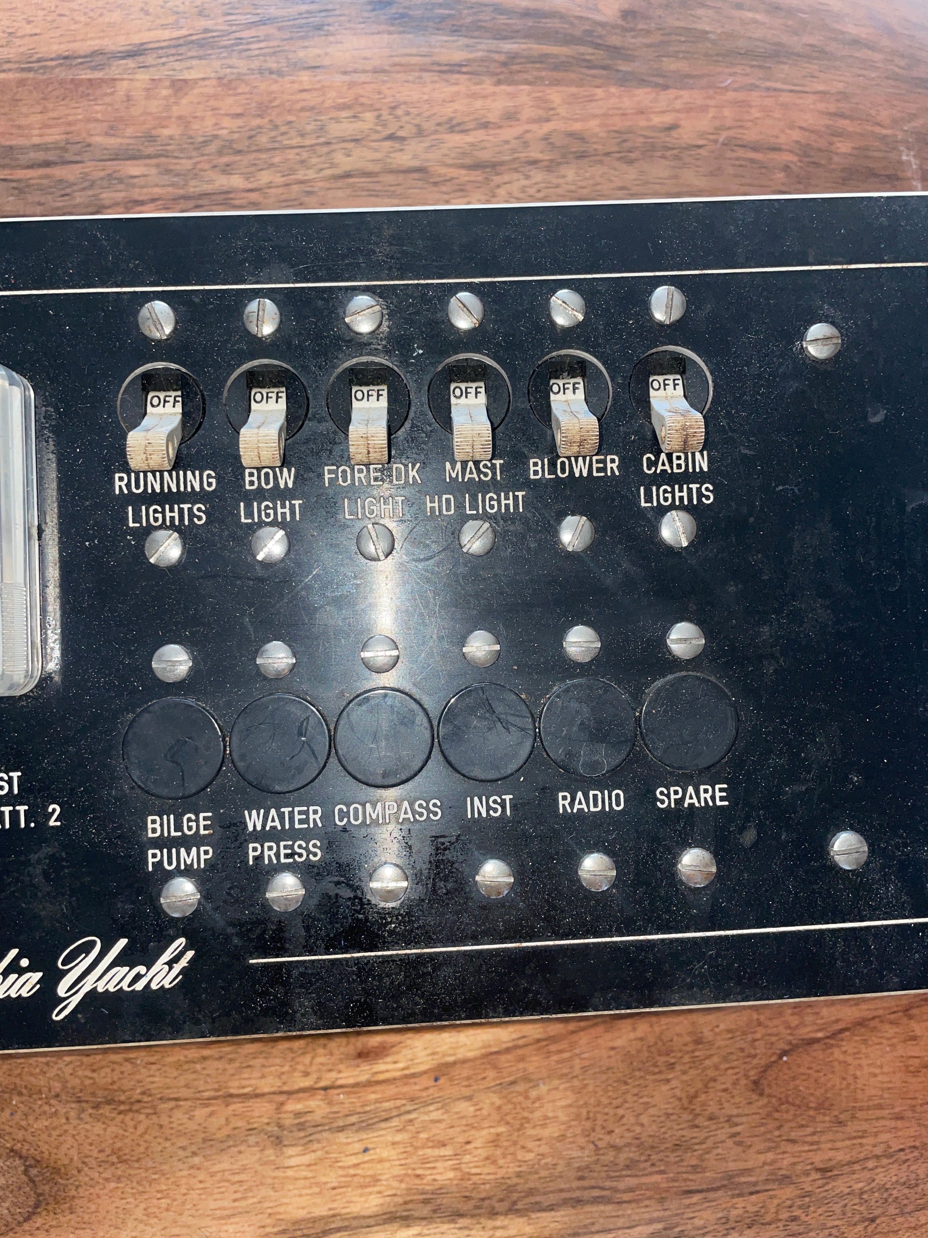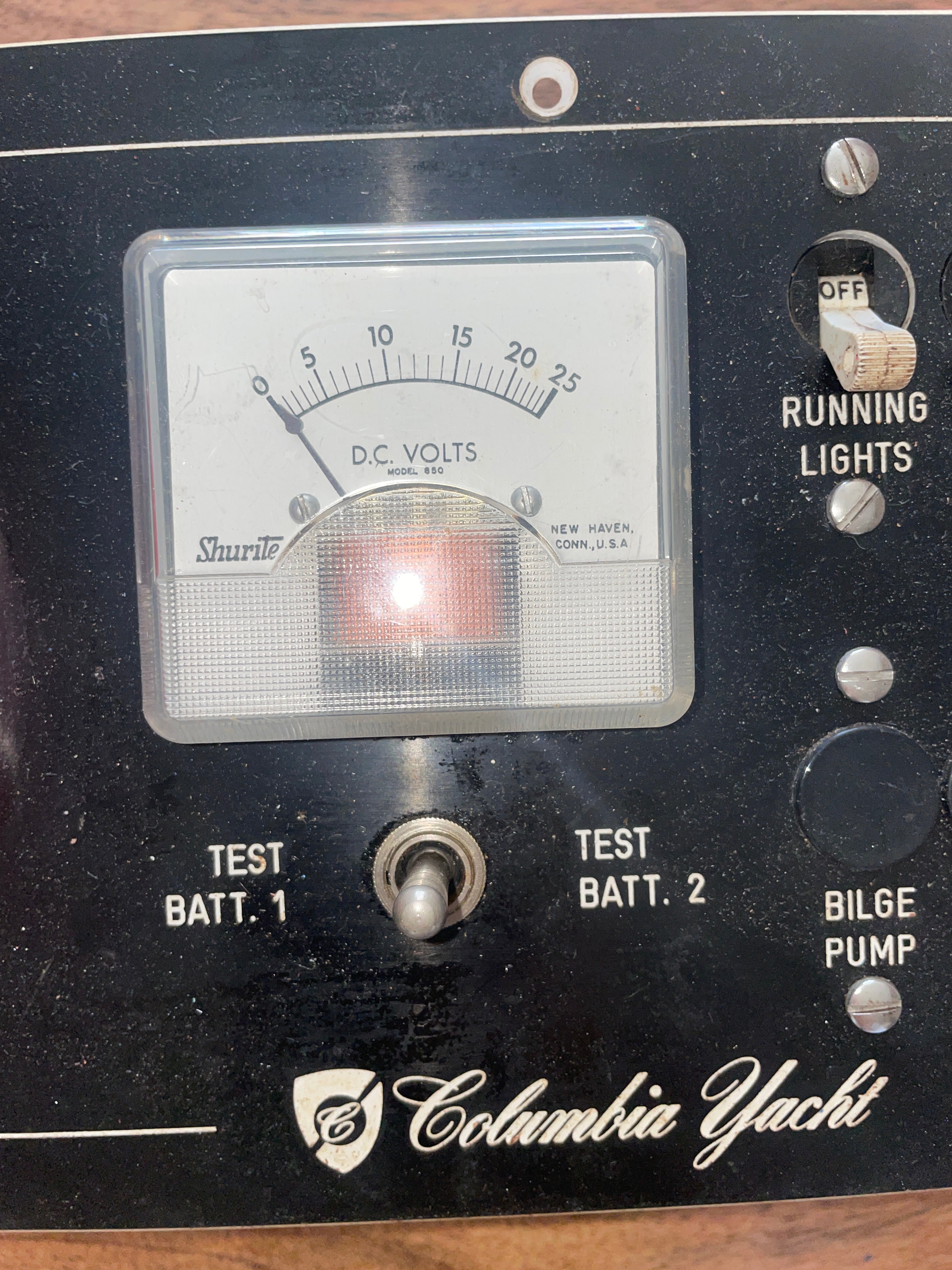 This Columbia yachts electrical panel is in excellent condition. It has 6 switches already on it but there is space for 6 more to be added. Comes with the safety battery switch. Has the DC volts gauge. Very minimal scratching to it and no chips or cracking anywhere. This panel measures 15 1/2” long x 6” wide x 2 1/2” deep.