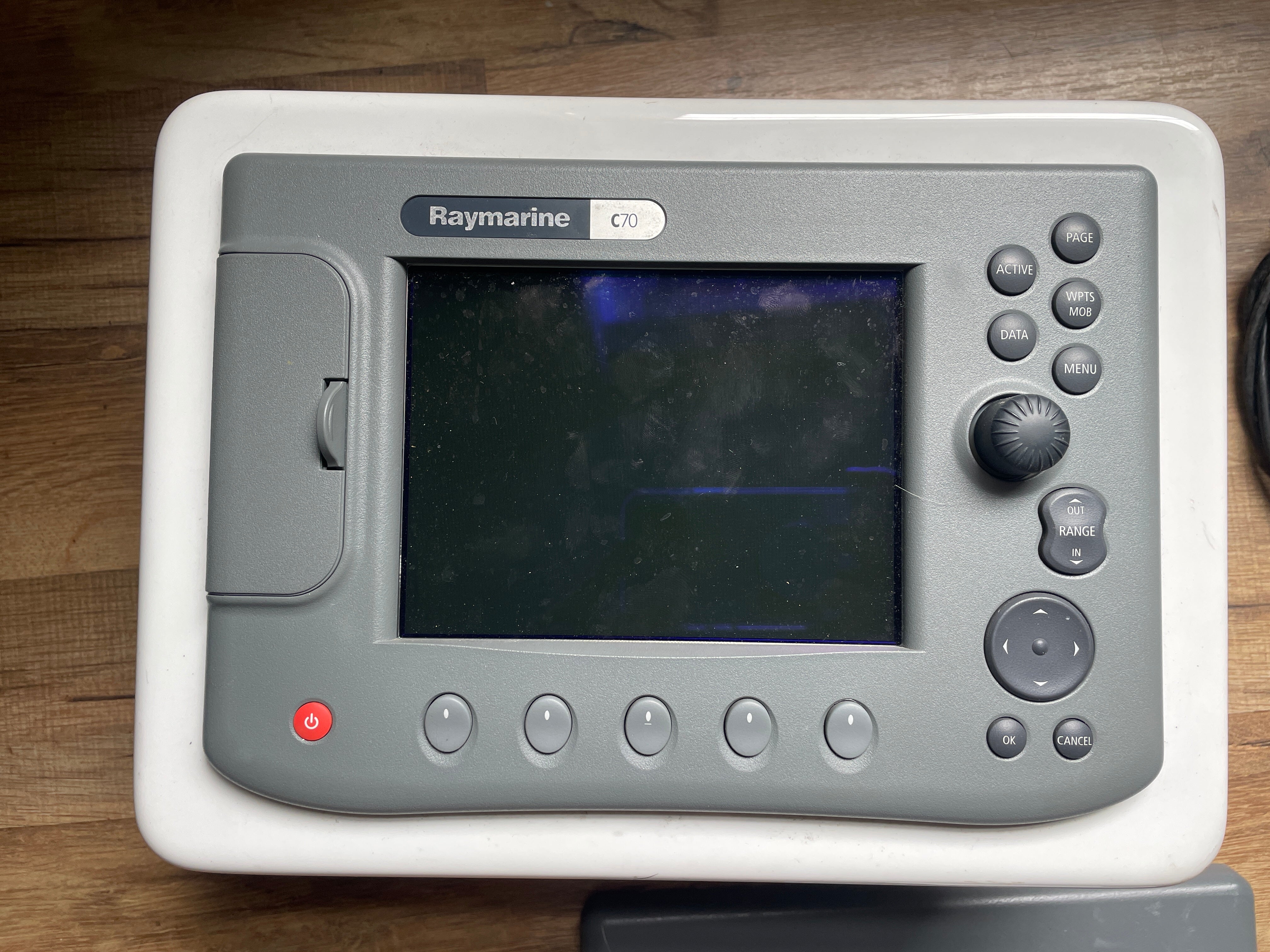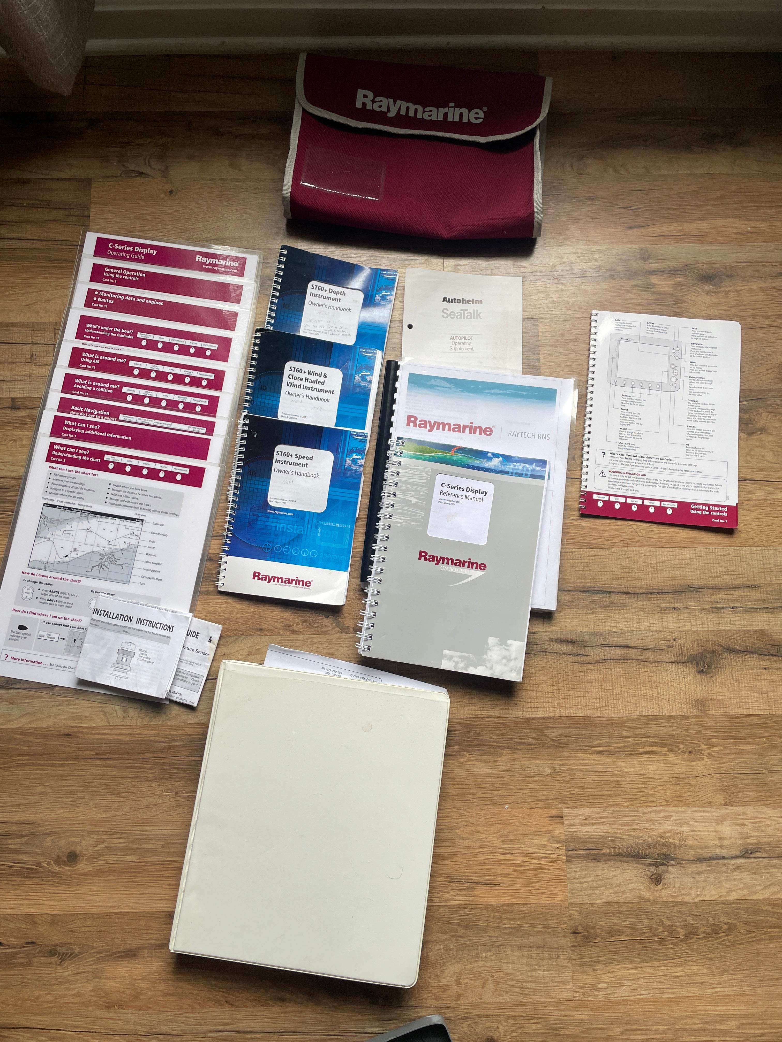 This raymarine autopilot set is in great working condition. Includes everything you see in the photos. That is a bunch of wiring for each instrument. Also comes with all instruction manuals. Included in this bundle you will also get the Raymarine C70 panel, ST400 autopilot wheel and panel. Windvane. ST60+ Wind, Depth and Speed instruments. TS-30 Transfer 30 AMP switch. Air max transducers. Navionics electrical charts (this is already plugged into the C70 unit).Autohelm puck and a few other items! Complete bundle is $2000.