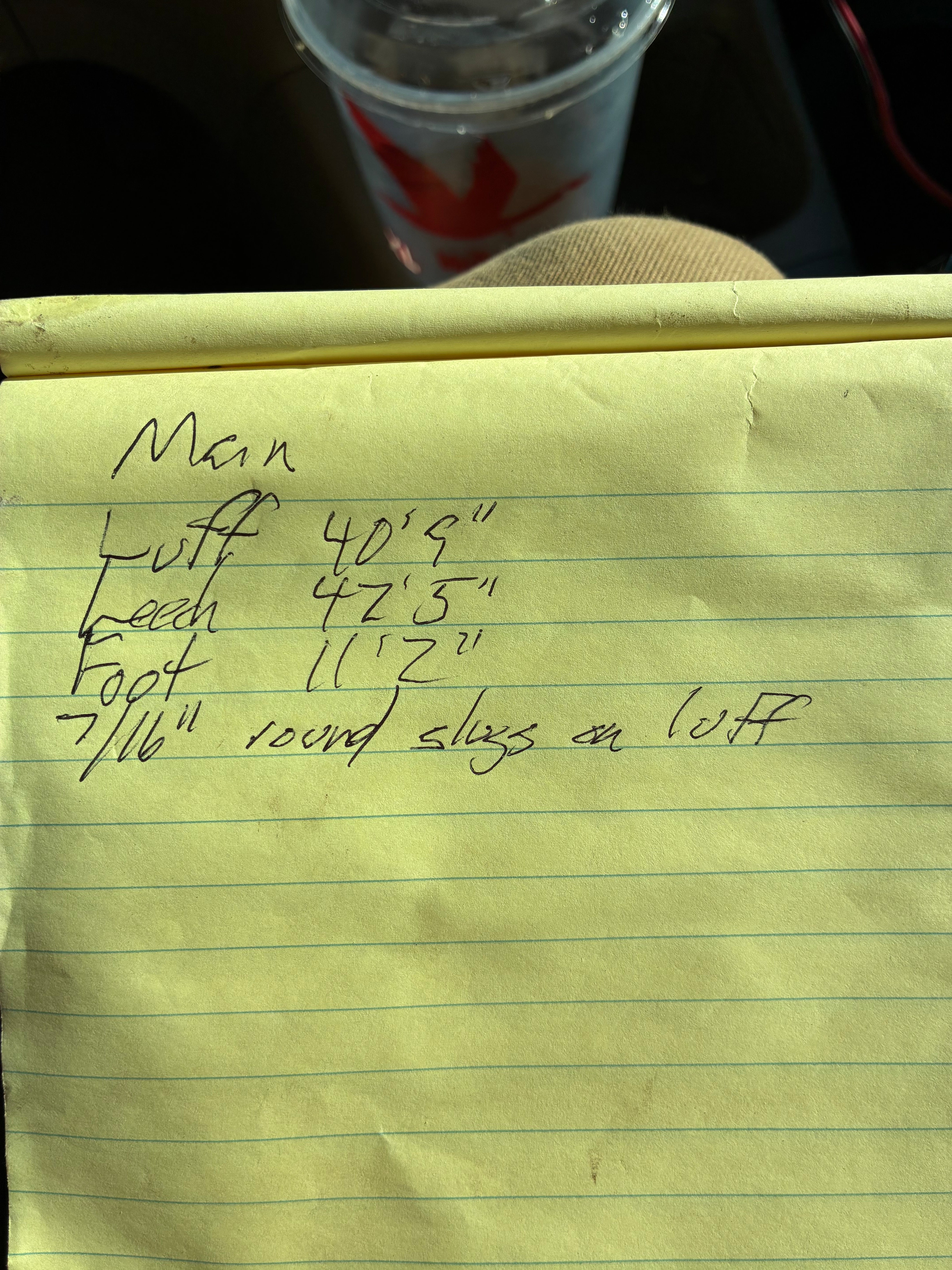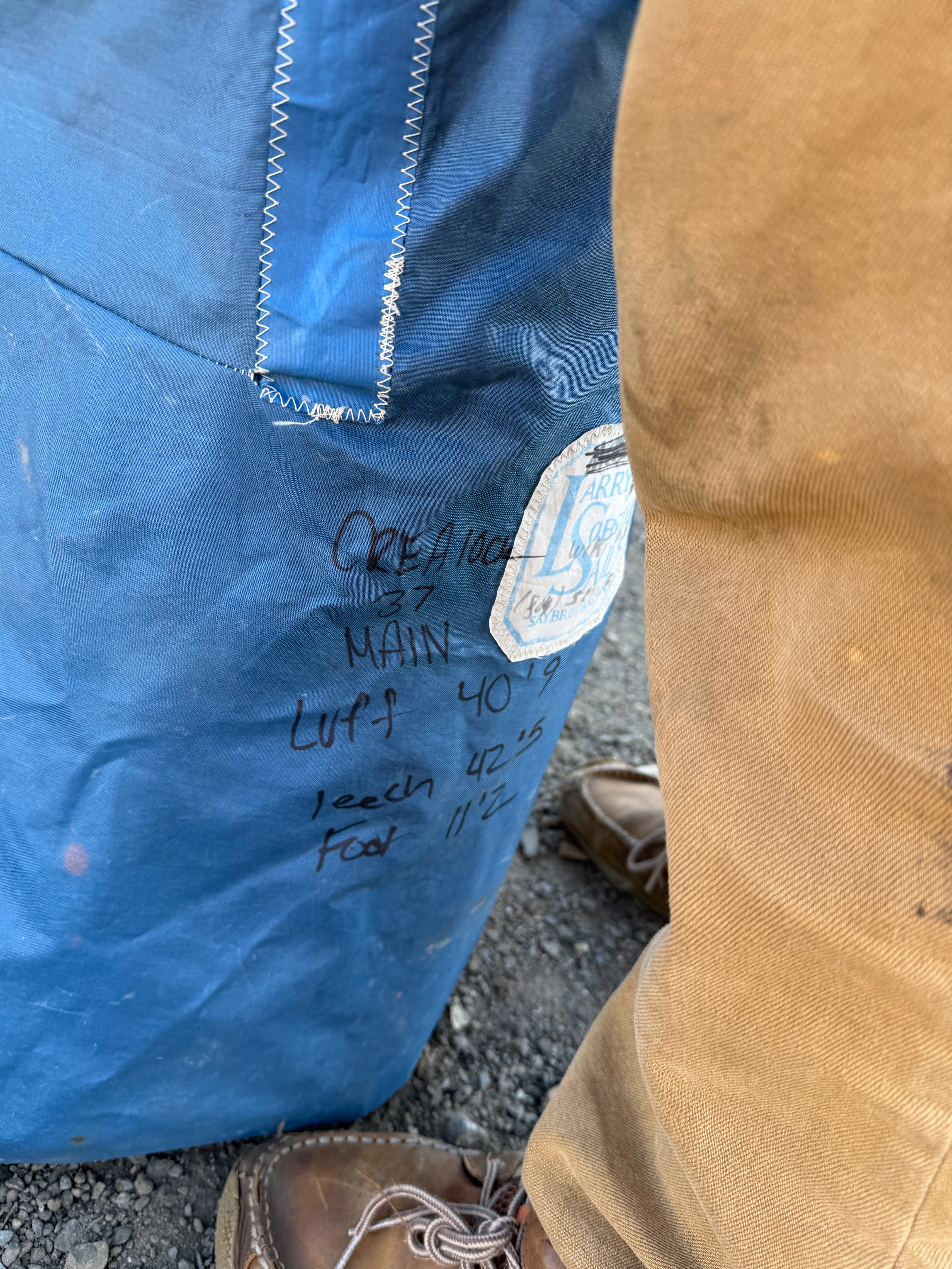 Crealock 37 Main Sail - Luff 40'9" x Leech 42'5" x Foot 11'2". Good condition just slightly dirty. There are no rips or tears. Will come with a bag. It has 7/16" rounded slugs on the luff.